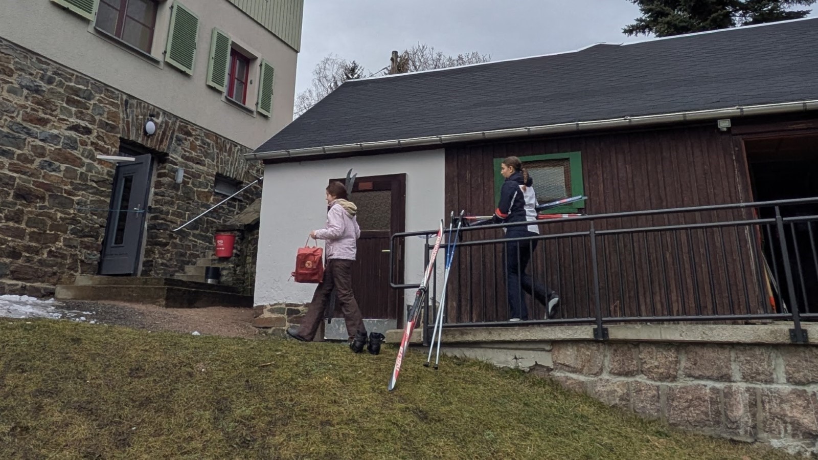 Am Freitag den 24.1.2025 sind wir 16 Uhr in Eilenburg gestartet und ca. 18 Uhr in Johanngeorgenstadt angekommen. Nachdem wir die Betten in der Jugendherberge bezogen hatten, gab es erst einmal Essen. Danach haben wir unsere Langlaufschuhe anprobiert und gesehen, wie Langlaufski gewachst werden. Nach einer Runde „SkyJo“ (Kartenspiel) ging es dann auch schon ins Bett, damit wir am Samstag ausgeschlafen in den Tag starten konnten.