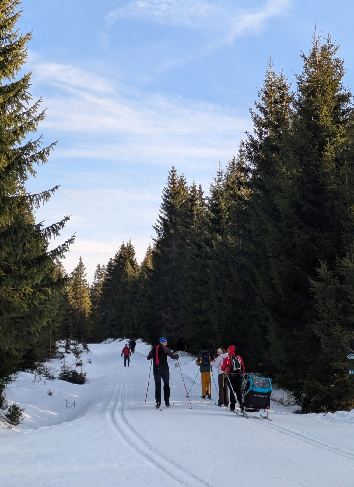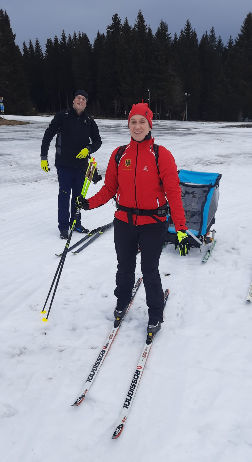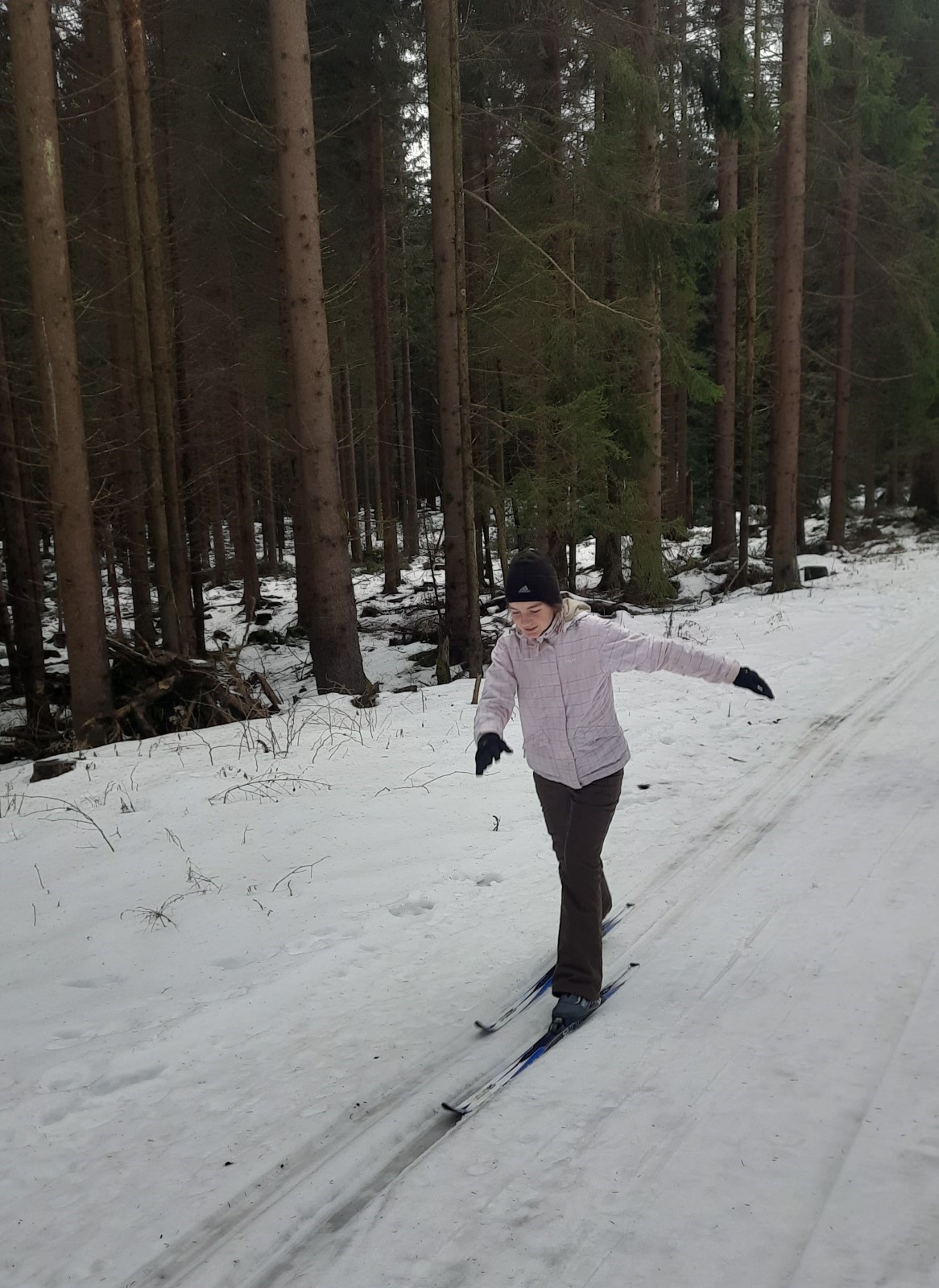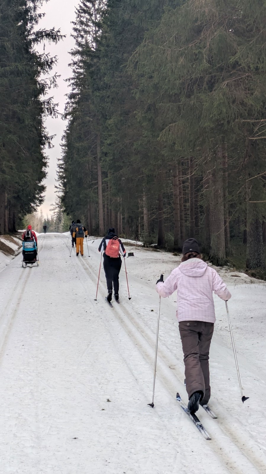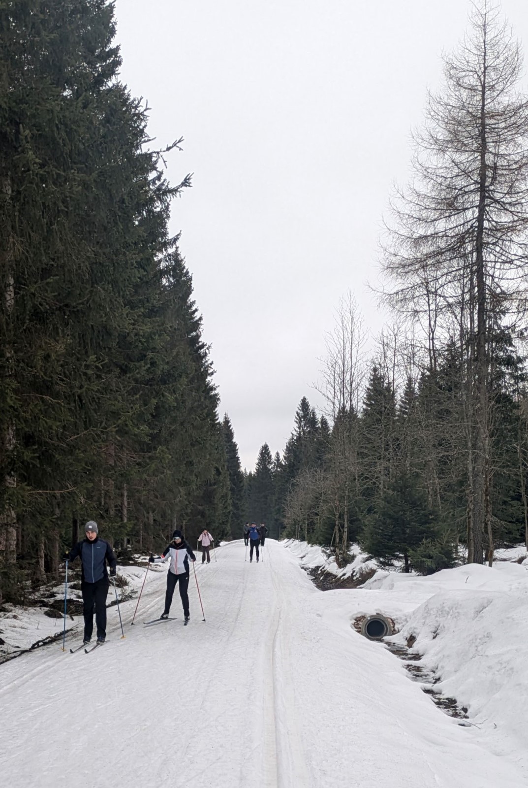 Vorwort: Wettermäßig war ziemliches Glück im Spiel. Bei zweistelligen Temperaturen zu Hause war noch beim Start am Loipenhaus unklar, ob der Schnee zum Skilanglauf reicht. Der Einstieg in die Loipe war jedesmal aufgrund Eisglätte eine Herausforderung, besonders für Ungeübte. Nach amtlicher Bergauf-Rutschpartie lief es besser und besser. Wenn man dann passagenweise den Hochwald hinter sich lassen konnte, kam sogar noch echtes Langlauf-Feeling auf. Die Tour wurde durch Klaus Winter, Riho Berlin, hervorragend angeleitet und ausgerüstet. Es folgt der Bericht teilnehmender Nachwuchsreporter.