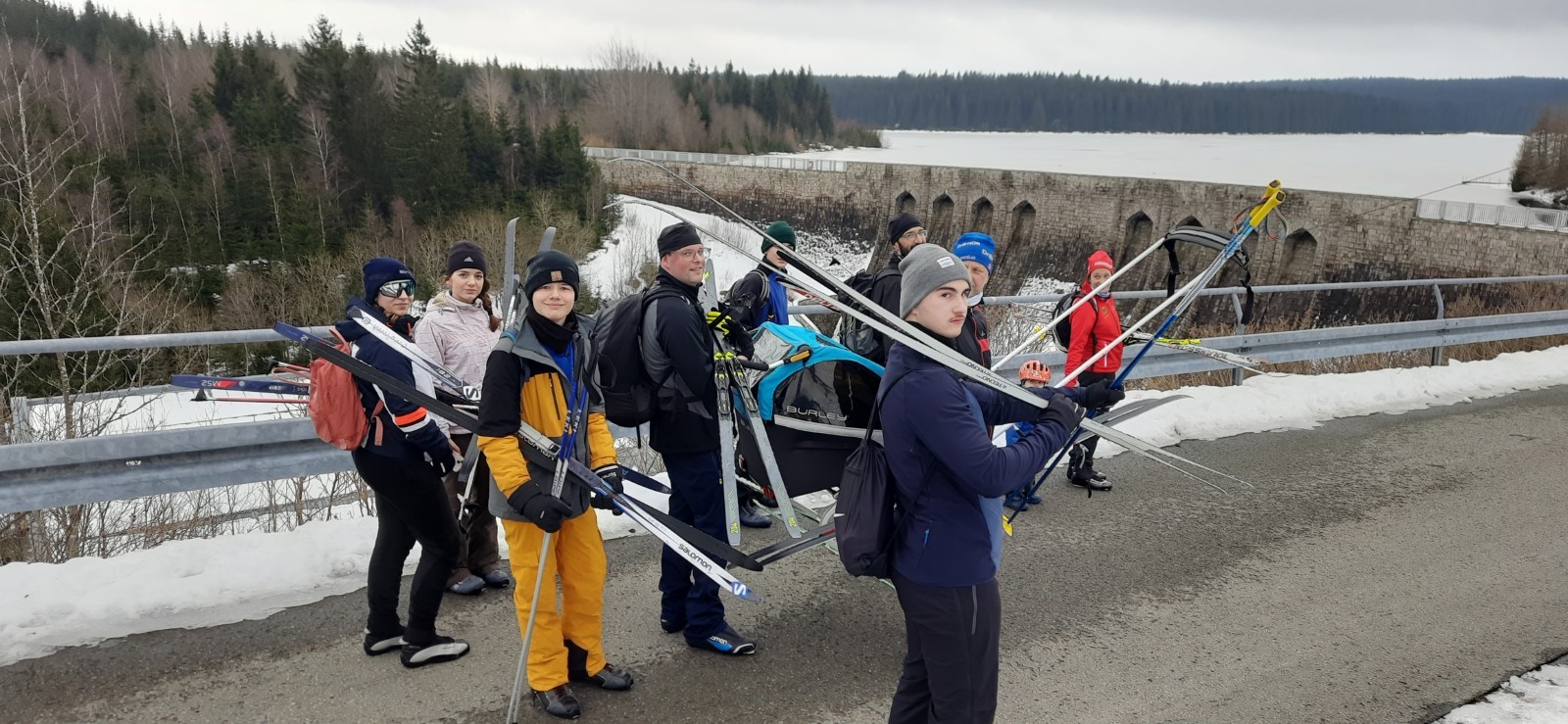 Am Sonntagmorgen haben wir dann unsere Zimmer geräumt. Halb zehn ging es wieder zur Weitersglashütte, die ca. 15 Autominuten von unserer Jugendherberge entfernt war. Von dort liefen wir dann auf den Ski rund um die Carlsfelder Talsperre. Auf der Mauer mussten die Ski getragen werden, da dort kein Schnee lag. Wieder beim Parkplatz in Weitersglashütte angekommen, hatten wir ca.15 Kilometer hinter uns, was man auch am Körper merkte. Anschließend haben wir im Schullandheim Johanngeorgenstadt Mittag gegessen. Kurz nach 14 Uhr ging es dann auch schon wieder Richtung Eilenburg. Wir bedanken uns bei allen, die dazu beigetragen haben, dass wir so ein schönes Wochenende hatten.