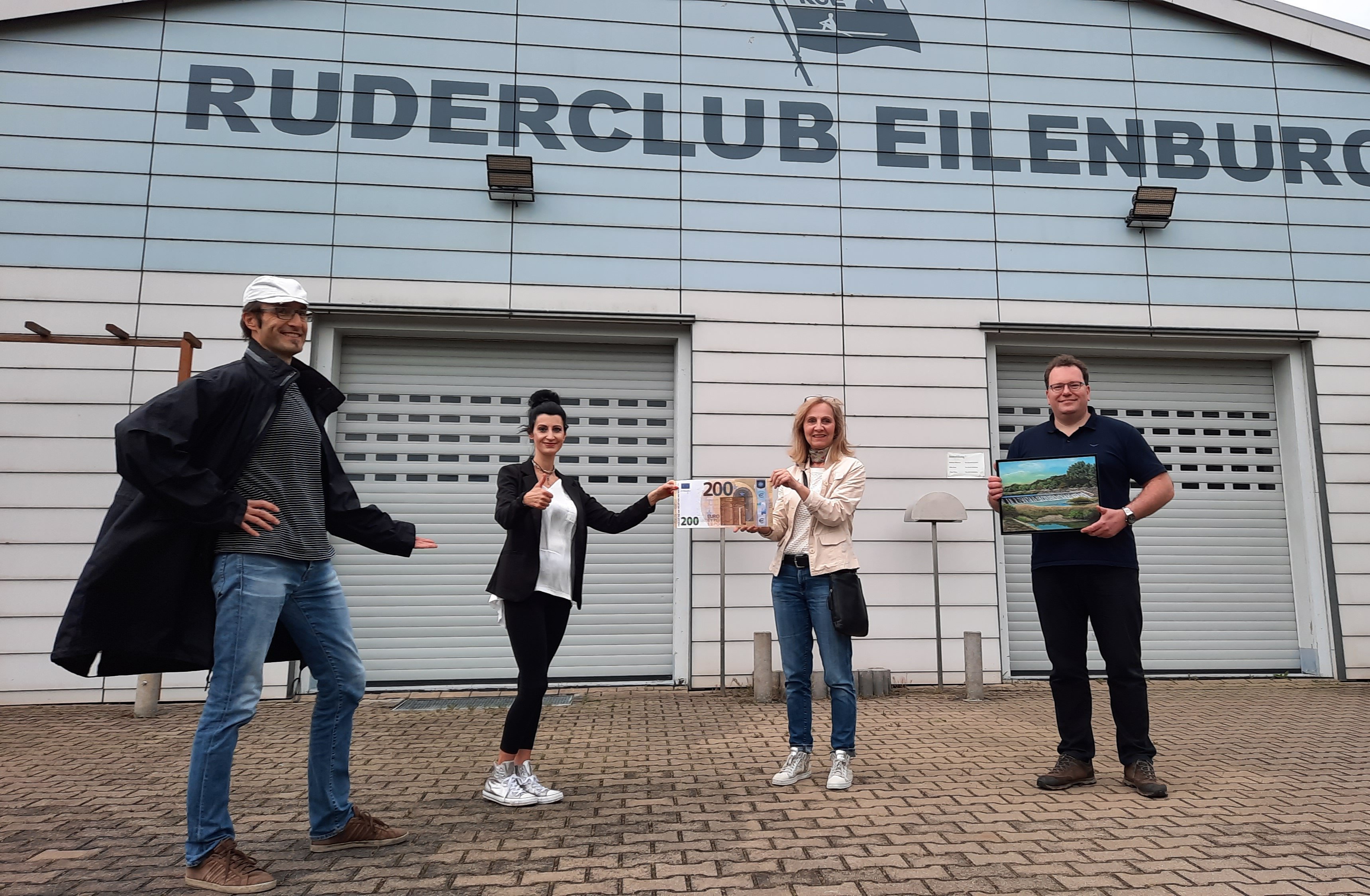 Die fröhliche Übergabe wurde dann zwei Wochen später im Beisein Andrea Baders und Antje Lingners beim Ruderclub selbst vollzogen. Während kurzer Visite der Räumlichkeiten war allgemeine Zufriedenheit mit dem Auktionsergebnis vorherrschend. Das Werk wird ein schönes Plätzchen im Clubsaal finden, um Mitglieder und Gäste zu erfreuen.