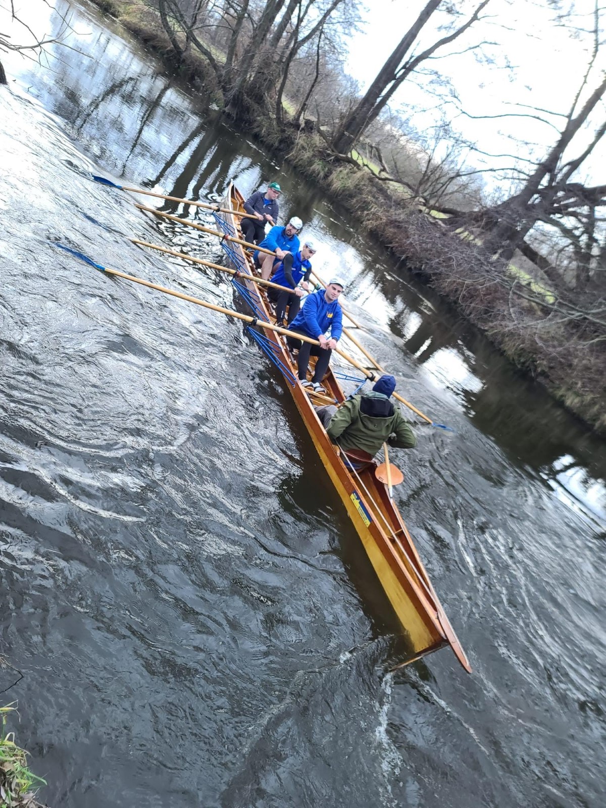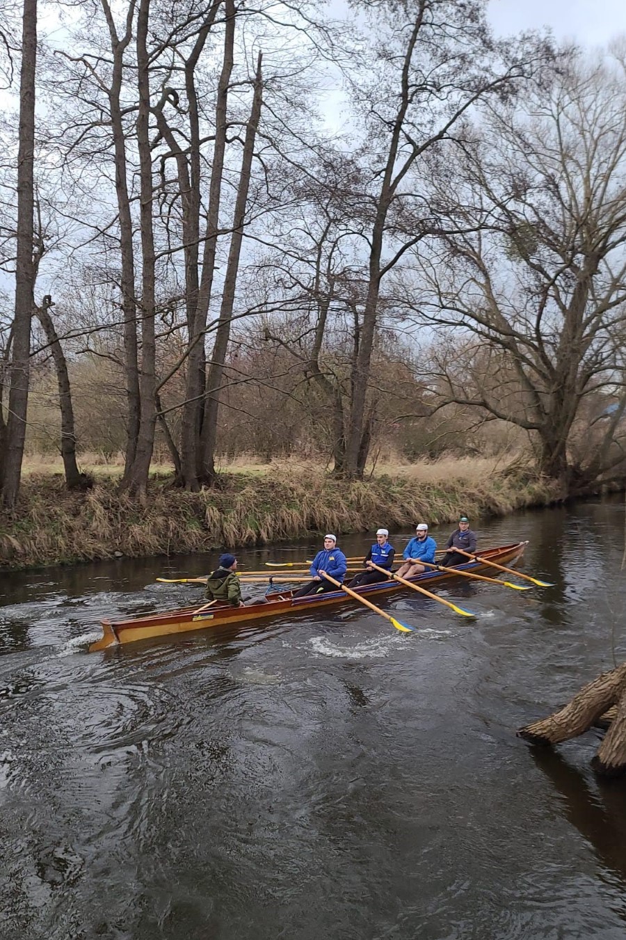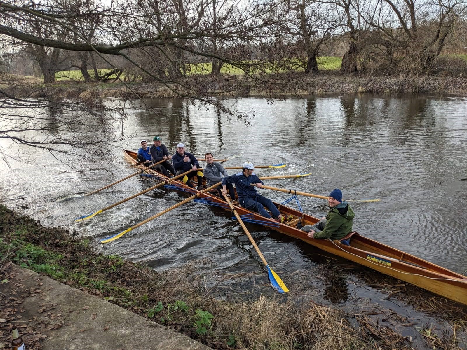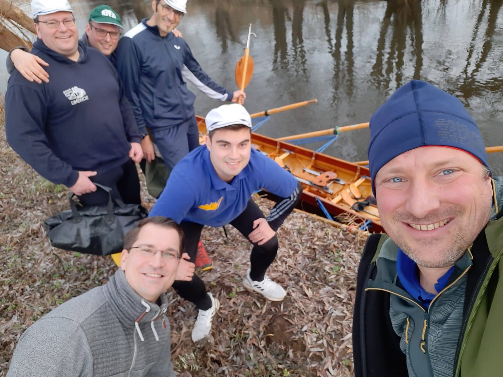 Die Tradition der Eierfahrt wurde in den Nuller Jahren wiederbelebt und hat immer ein spezielles Geschmäckle, das aber nicht nur wegen des Eierlikörs. Nach durchzechter Silvesternacht um 10 Uhr schon wieder auf der Matte zu stehen, ein Boot an der steglosen Mühlgrabenböschung ins Wasser zu bringen, geschmeidig über den einzig möglichen Tritt einzusteigen und sich auf die vorhandenen Ruder- und Steuerplätze zu verteilen...