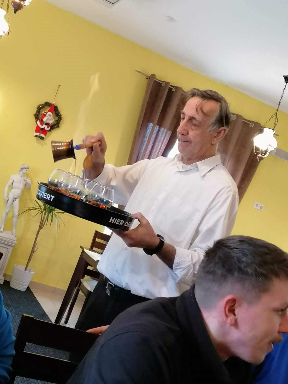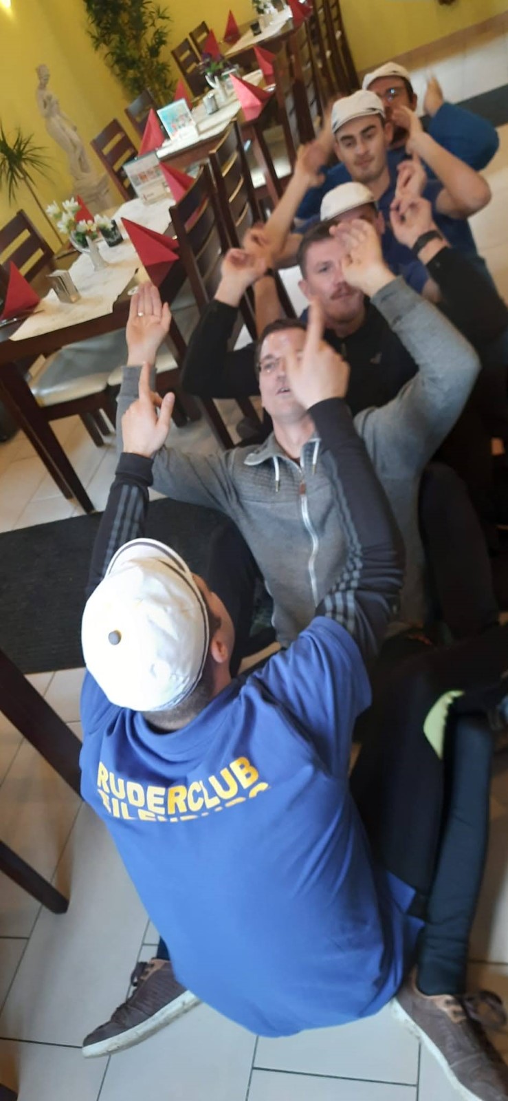 Die ersten Ruderschläge im neuen Jahr wurden selbstverständlich sehr genossen und bis zum Hafen der Drossel durchgezogen. Dieses Lokal hatte leider geschlossen, deshalb ging es nun in Richtung Amsel. Hier konnte dank freier Platzwahl eine hervorragende Tafel zurechtorganisiert werden, bald gebogen unter poseidon-typischen Vor- und Hauptspeisen nebst flüssigem Beiwerk.