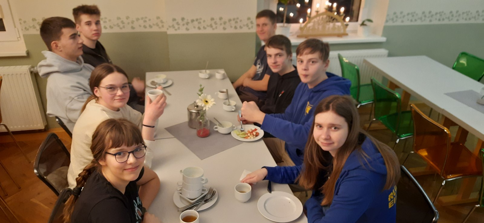 Nach Nudeln mit Tomatensoße verbrachten alle den Nachmittag auf der Heimfahrt vom verschneiten Johanngeorgenstadt nach Eilenburg.