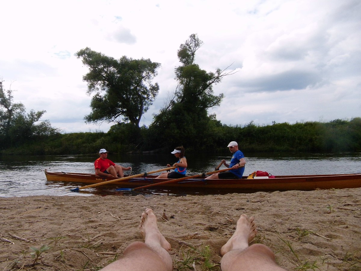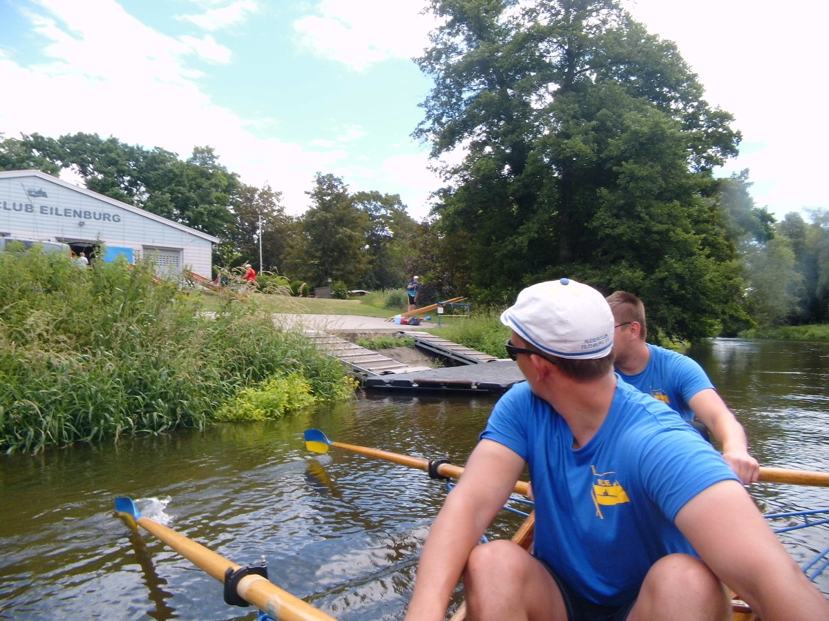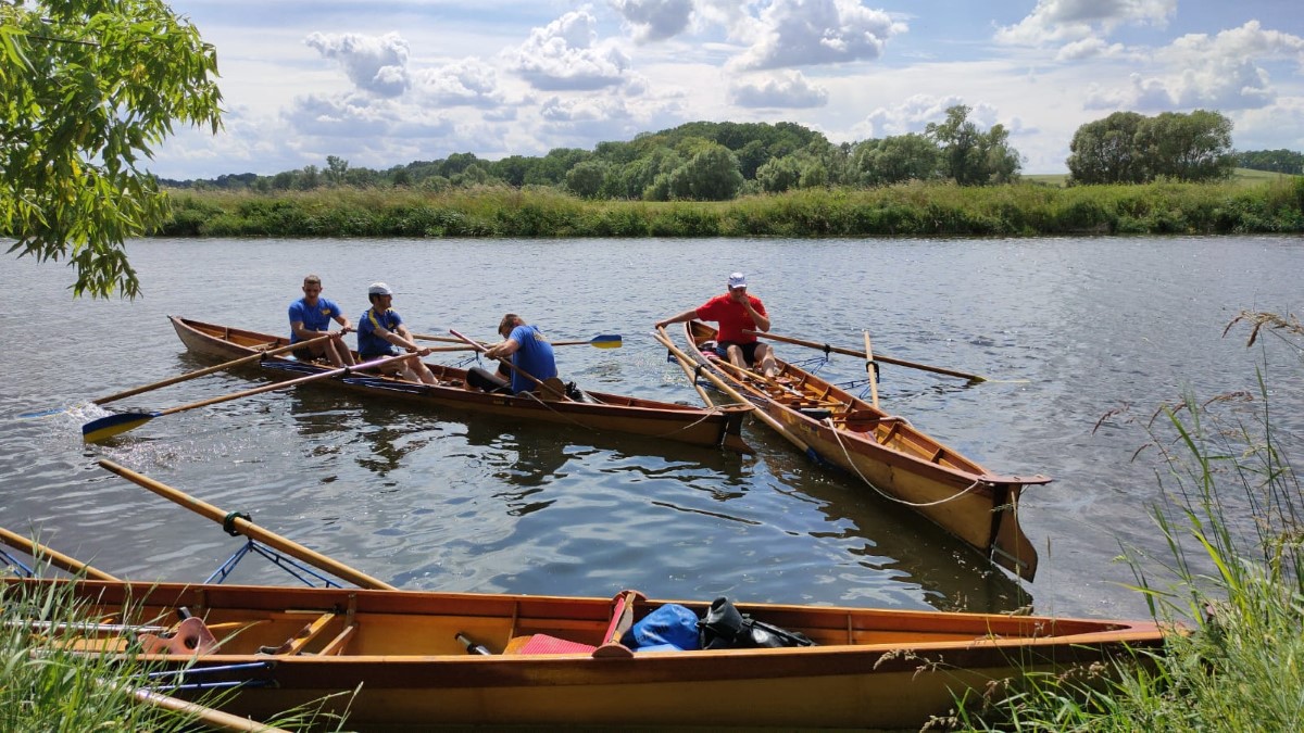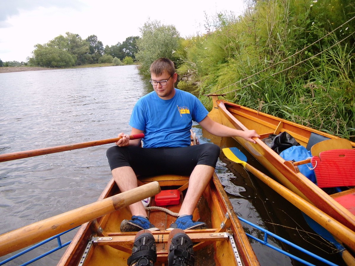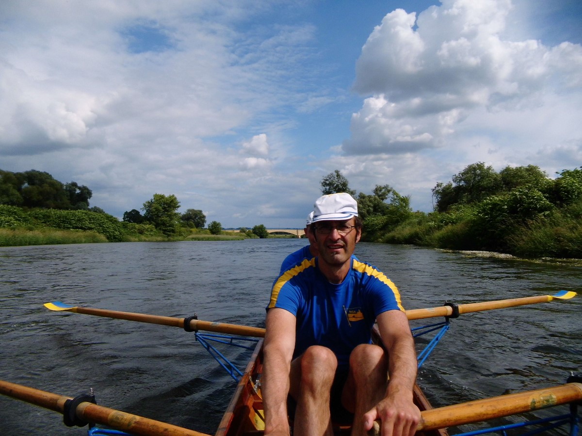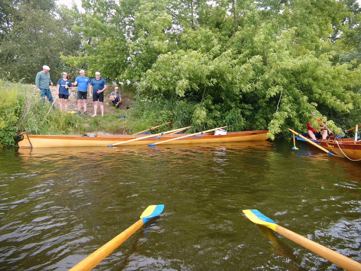 Vier bestens befüllte Gig-Doppelzweier mit Steuermann, ein 2-Mann-Landdienst und ein bisschen Optimismus. - Mehr brauchte es nicht, um anstatt der „Großen" regulären Wanderfahrt eine kleine aber feine Fahrt über den heimischen Mühlgraben auf die Mulde hinaus zu improvisieren. Der Muldepegel gab ebenfalls sein bestes, Dank wohl dosierter Regengaben im Vorfeld. Dennoch war Obacht angesagt. Nach vielfältig platziertem Großgehölz in den ersten 7 Kilometern Fahrrinne warteten standardmäßig die kiesigen Untiefen der Mulde.