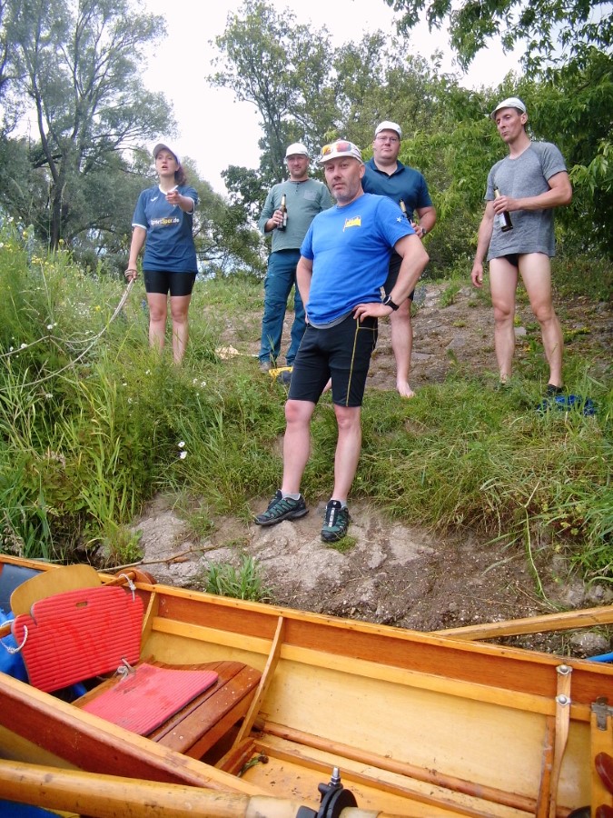 Im Ergebnis dessen kamen am Sonntagmorgen erst nach und nach alle Beteiligten aus den Senken. Wie schon am Vortag wurde die Mulde vereinzelt zu Bade- und Reaktivierungszwecken genutzt. Eigentlich ein essentieller Bestandteil einer jeden Wanderfahrt. Entspannt und ohne Zwischenfälle konnten die etwa 10 Kilometer stromabwärts noch mal ausgiebig genossen werden. Es zählte hier vor allem die Achtsamkeit der Steuerleute. Am frühen Nachmittag waren die Boote wieder im Kasten. Zum Ausklang bekamen vorhandene leckere Reste noch eine Vertilgungschance, die gemütliche Schlussrunde wurde der Witterung entsprechend an ein schattiges Plätzchen am Wasser verlegt. Vielen Dank allen, die sich für das Gelingen der Fahrt verdient gemacht haben. (RBJ)