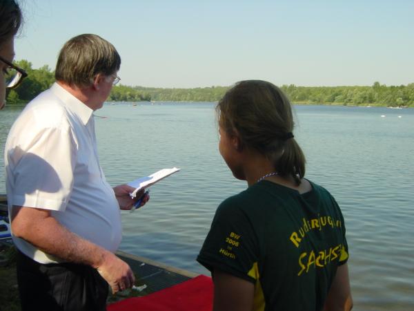 Zur sächsischen „Nationalmannschaft“ gehörten 72 Aktive aus acht Vereinen. Wie schon im vergangenen Jahr war die Delegation vom Ruderclub Eilenburg recht klein – allerdings insgesamt eine wichtige Stütze für die Ruderjugend Sachsen, denn Florian Bellrich und Anne Dietrich kamen reich mit Medaillen dekoriert wieder nach Eilenburg.