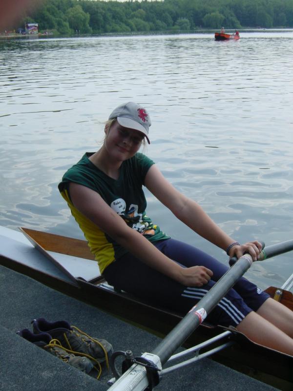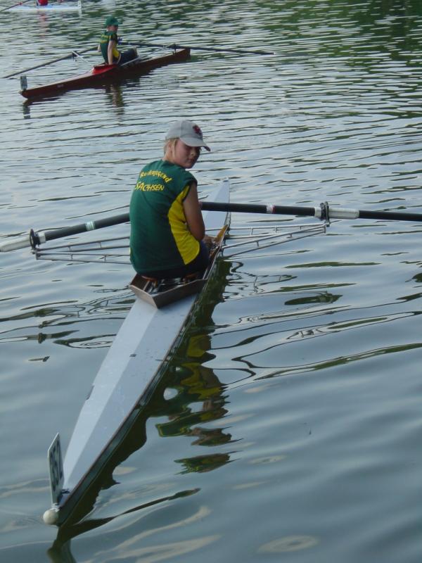 Anne Dietrich, die erst im vergangenen Jahr mit dem Rudern begonnen hat, fuhr in der ihr eigenen Ruhe mit kräftigem Schlag über die 3.000-m-Distanz. Der Platz unter den zehn besten 13-jährigen deutschen Skullerinnen sicherte ihr den Start im sonntäglichen B-Finale-Hauptlauf. Dort steigerte sie sich nach einem verpatzten Start: Nur eine knappe Bootslänge trennte sie von der Siegerin aus Baden-Württemberg.