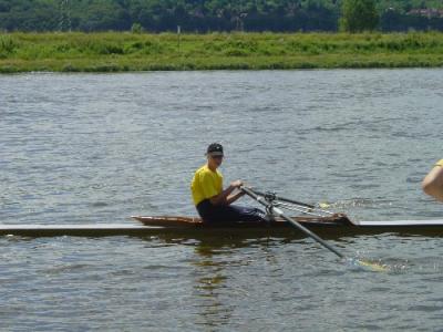 "Es gab drei Siege: Anne Dietrich bei den 13-jährigen Mädchen, Florian Bellrich bei den 14-jährigen Jungen und Mario Winter bei den B-Junioren (alles im Einer). Gute Rennen auch durch den Doppelzweier Gollasch/Dietrich sowie Christoph Krüger und Kevin Ehser. Jennifer Gollasch hat sich bei ihrem ersten Elbestart wacker geschlagen. Und noch etwas: Als das letzte Eilenburger Rennen lief, war der Hänger bis auf das letzte Boot bereits komplett beladen, wir waren die Ersten, die vom Sattelplatz rollten und der Hänger ist auch schon abgeladen. Besonderer Dank an den Kleinbusfahrer, Herrn Müller, und Herrn Ehser, der den rettenden Anhängersteckeradapter am frühen Sonnabendmorgen besorgte.[...]