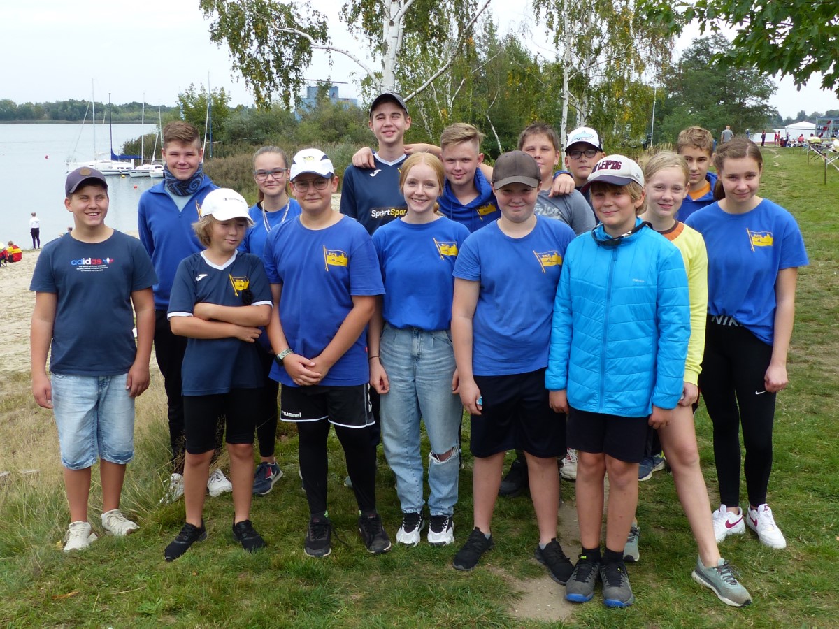 Im Einer hingegen musste Hannes wegen des Seitenwindes einen Start aus der Bojenkette heraus fahren. Er gab das Rennen nicht verloren und kämpfte sich in einem starken Teilnehmerfeld auf Platz 4 ins Ziel. Ebenso Colin Zemke (13 Jahre), der dafür alle Reserven im Endspurt mobilisierte und zwei Mitstreiter auf die hinteren Plätze verwies.