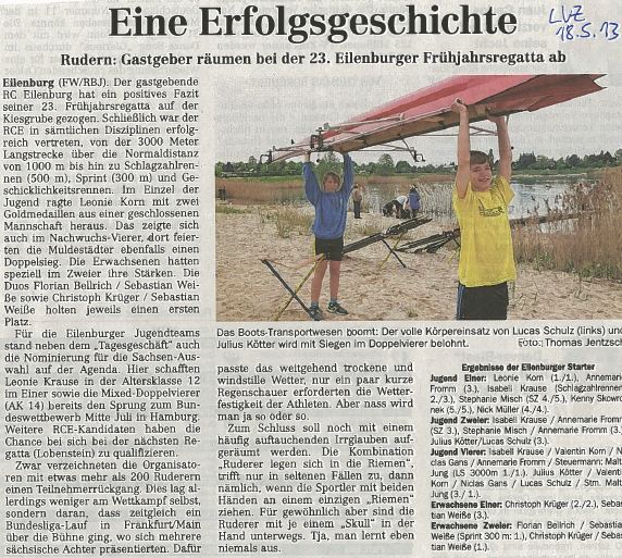 2013 Eilenburger Frühjahresregatta - Bericht und Fotos