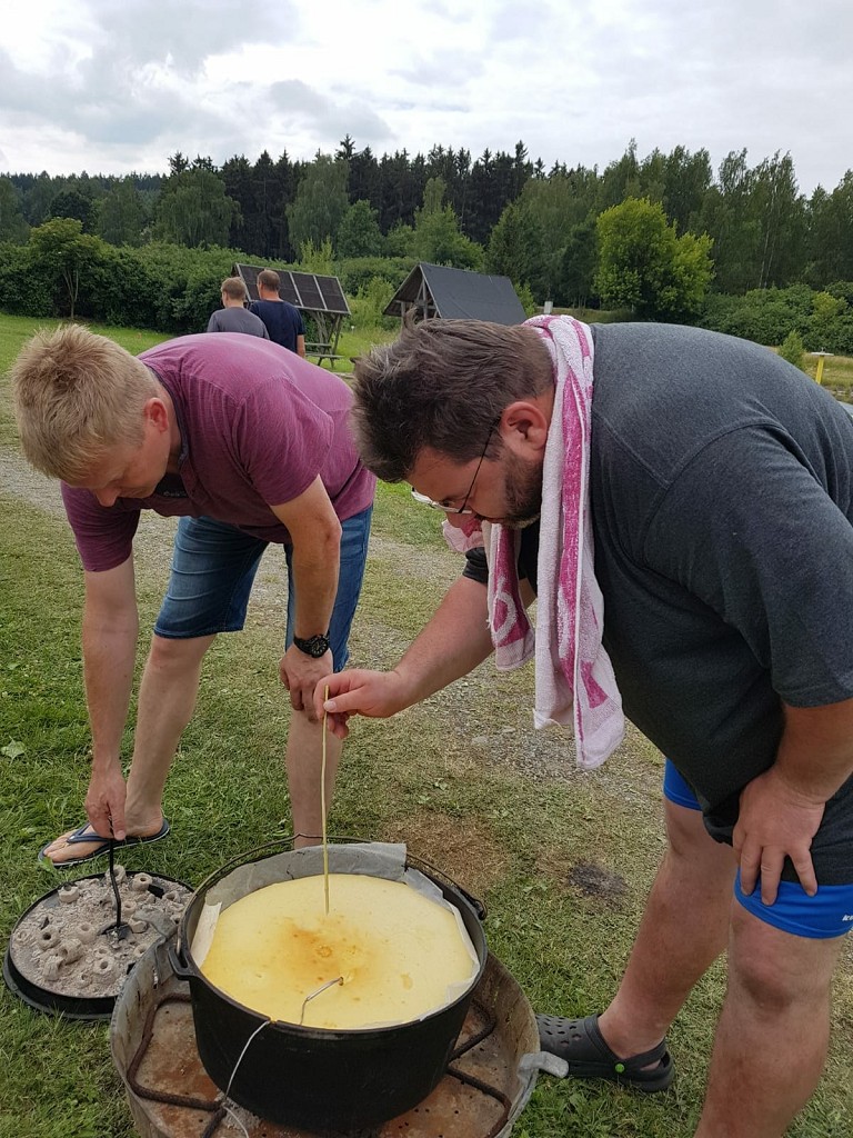 Pünktlich um 12 Uhr traf Andre Parchwitz mit der Essenlieferung ein und nachdem die Servicestraße errichtet war, verteilten Felix und Thomas die von von der Fleischerei Krause gekochten Nudeln und den Wurstgulasch an die hungrige Meute. Die Zeit bis zum Beginn der traditionellen Ansprache des Vorsitzenden vertrieb man sich auf unterschiedliche Art und Weise. Während die einen das benutzte Geschirr abwuschen, andere die beendeten Wettkämpfe auswerteten, bereiteten wiederum ganz andere schon die Ausfahrt vor.