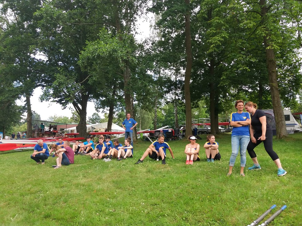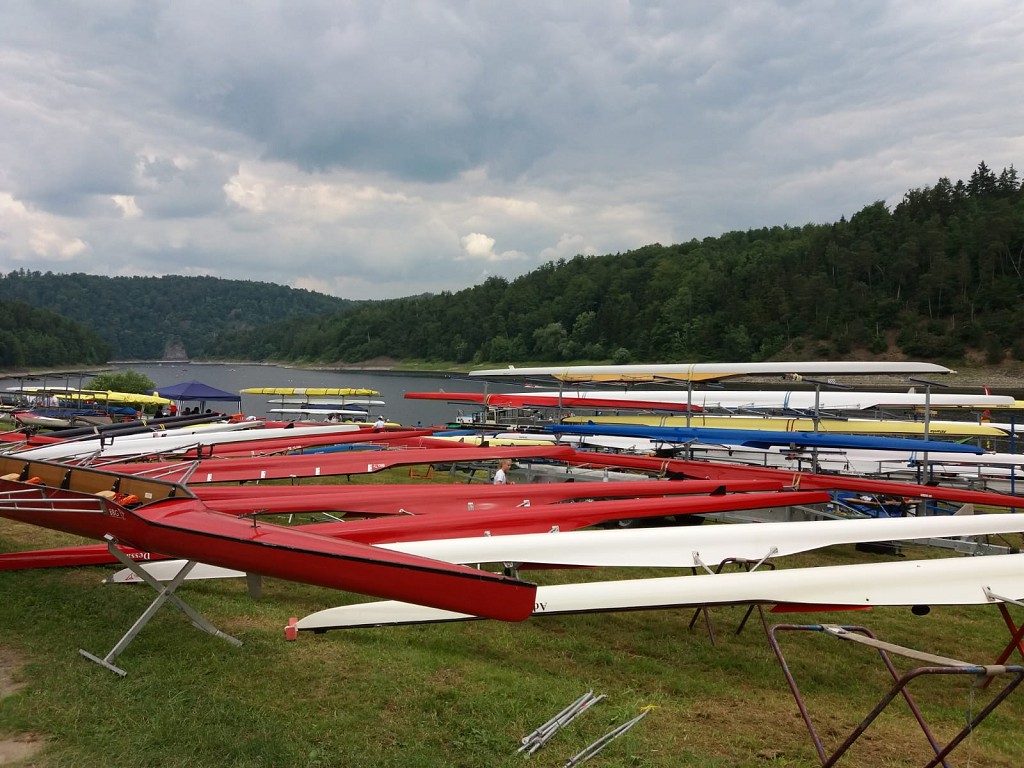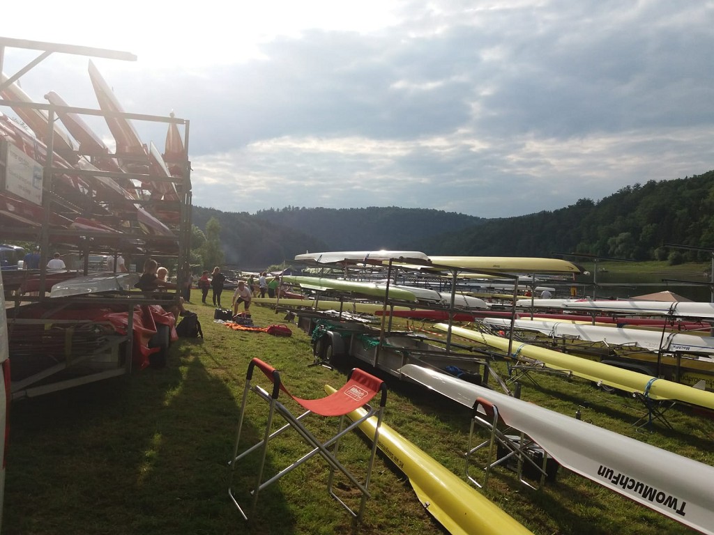 Dank der großartigen Vorbereitung unseres Regattateams und den Erfahrungen unseres Betreuerstabes hatten wir nicht nur einen perfekt gelegenen und sicheren Sattelplatz direkt am Siegersteg. Darüber hinaus konnte unser Zeltlager mit Stromanschluss und 50 m zu den Örtlichkeiten incl. Trinkwasser errichtet werden. So waren die Möglichkeiten für unsere Köchin und unseren Koch hervorragend (eigens angereist: Mandy und Veikko).