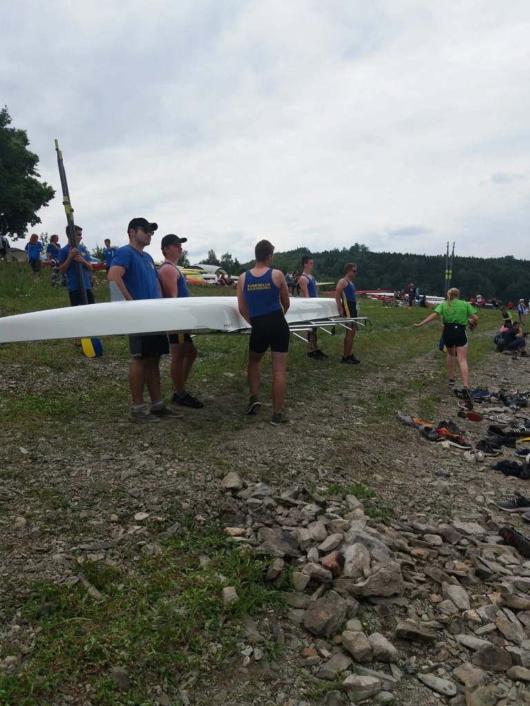 Dass Ruderkameradschaft nicht nur innerhalb unseres Vereins groß geschrieben wird, durften wir an diesem Wochenende in Bad Lobenstein erfahren. Da die Rennanstände so gering waren, konnte sich unser Männer- Doppelvierer eines Lobensteiner Bootes bedienen. So gelangten unsere Männer und Frauen pünktlich an den Start.
