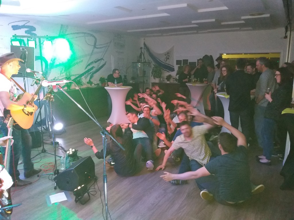Selbstverständlich kam das Feiern in Koblenz nicht zu kurz. Das opulente Abendmahl fand am Samstag incl. Moselblick in großer geselliger Runde auf der Freiterrasse des Bootshausgriechen statt. Danach spielte sich die Band „Whitsuntide“ die Finger wund. Sohlen glühten auf dem Parkett, mehrfach auch Hinterteile zum „Aloha He“. Nach Mitternacht erhielt der Wirt anlässlich seines Geburtstags ein Liedchen „gesungen“ und bedankte sich mit reichlich Ouzo-Runden.