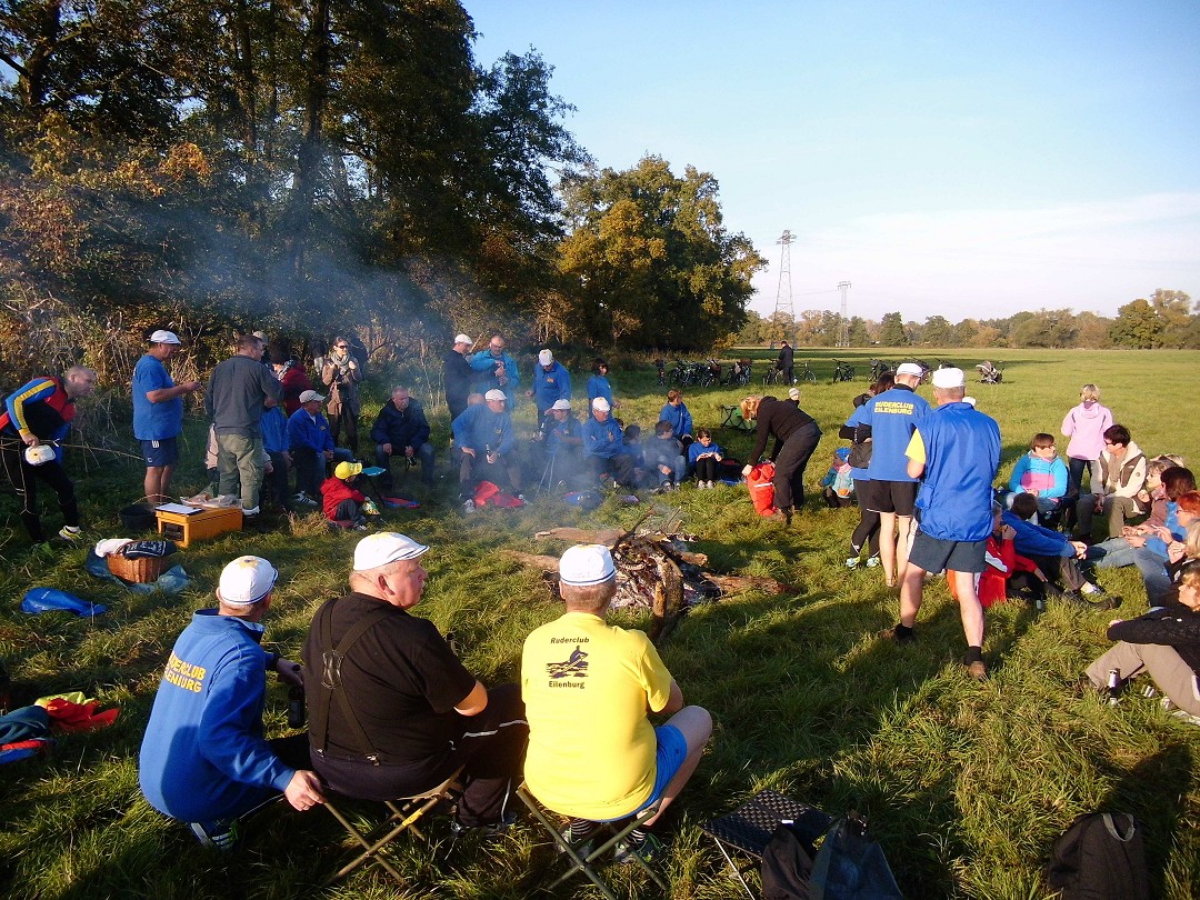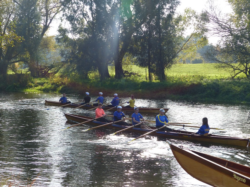 Während sich nun die einen noch bei Kaffee, Kuchen und Klärchen entspannten, ging es für die anderen in die Boote auf Ausfahrt in Richtung Mühlgrabenwiesen. Nicht nur Speis' und Trank – auch das ein oder andere junge „Kielschwein“ musste ordnungsgemäß verstaut werden.
