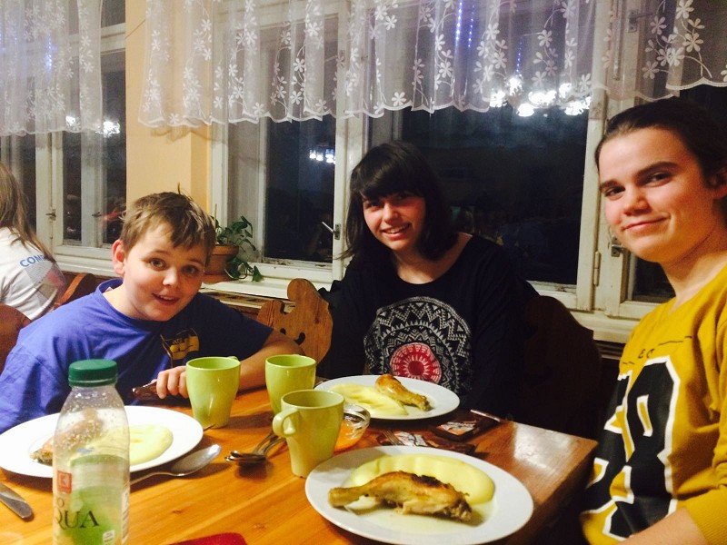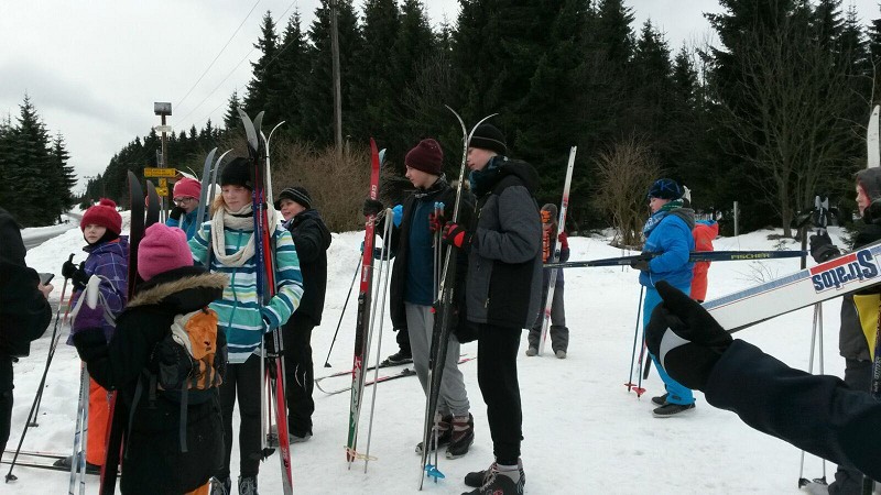 Kaum angekommen, konnten wir bereits die Zimmer beziehen und die erste Mahlzeit zu uns nehmen. Um es kurz zu fassen: Die Zimmer waren ausreichend und das Essen, welches von der von uns liebevoll genannten Köchin Baba Jaga zubereitet wurde, war speziell. Am Nachmittag wurden die Langlaufski verliehen und nach kurzen Materialunstimmigkeiten konnten wir die ersten Meter bestreiten. Dazu wurden wir in 4 verschiedene Gruppen ( je nach Leistung ) eingeteilt. Annemarie, Marc und Isabell standen mehr oder weniger zum ersten Mal auf dem Langlaufski und übten fleißig bei den Anfängern unter der Leitung von Herrn Löffler.