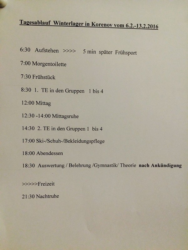 Am 3. Tag setzte jedoch Regen ein und der Schnee begann zu verschwinden. Zum Glück waren drei Kleinbusse aus Dresden da, die im Pendelbetrieb die 64 Sportler zu einem anderen Skigebiet fahren konnten. Bei diesen Trainingseinheiten wurde vorwiegend die Ausdauer geschult und so ging es in den entsprechenden Gruppen in den Loipen bergauf und bergab.