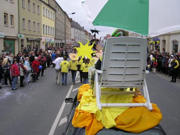 Dem Thema entsprechend wurde diesmal auch auf dem Zug-PKW ein Liegestuhl nebst Sonnenbader platziert. Der Sand wurde durch den goldig-gelben Stoff simuliert. Der Anhänger selbst war eine typische Mallorca Strandbar, mit Ausschank, Musik und natürlich Partypublikum.