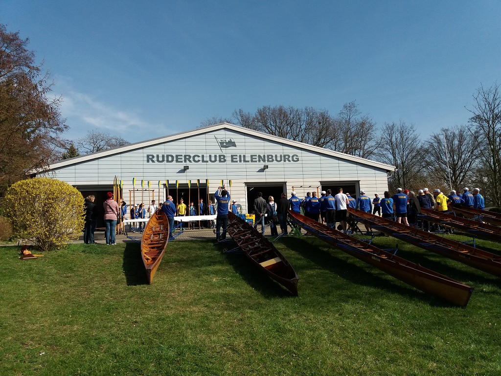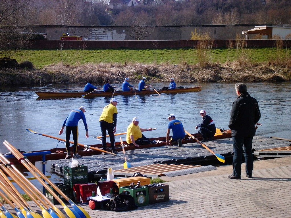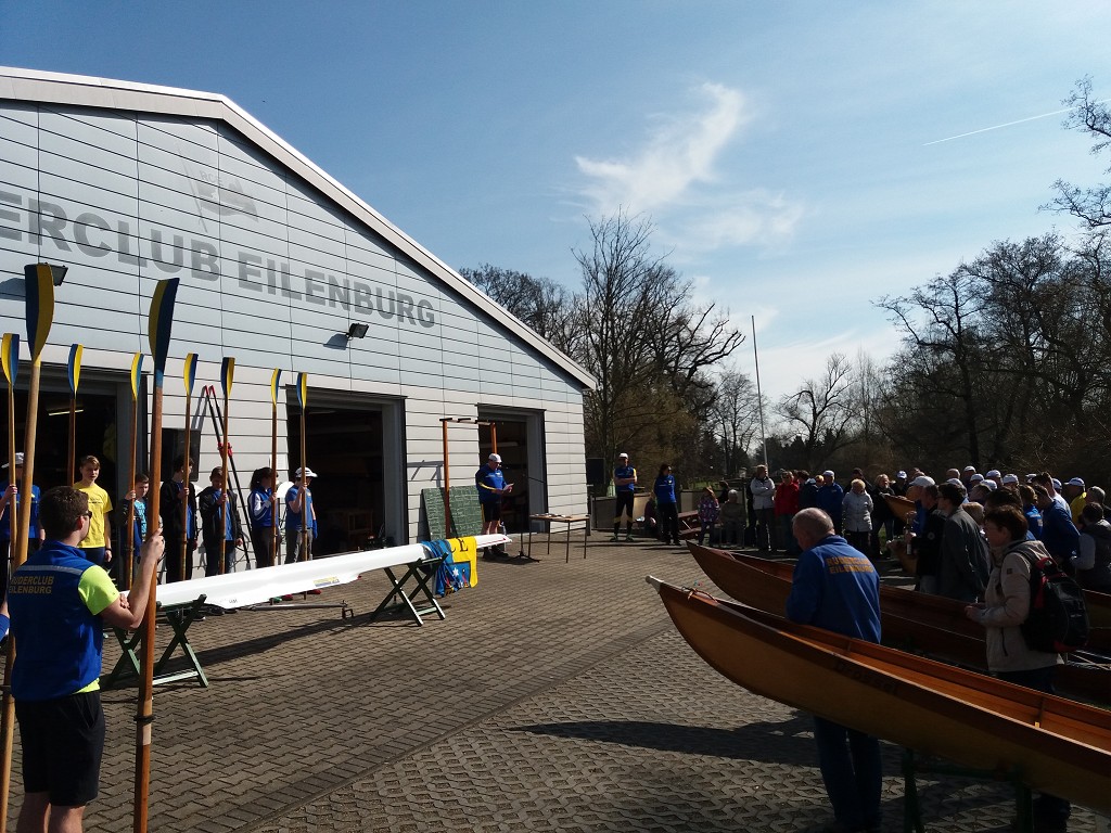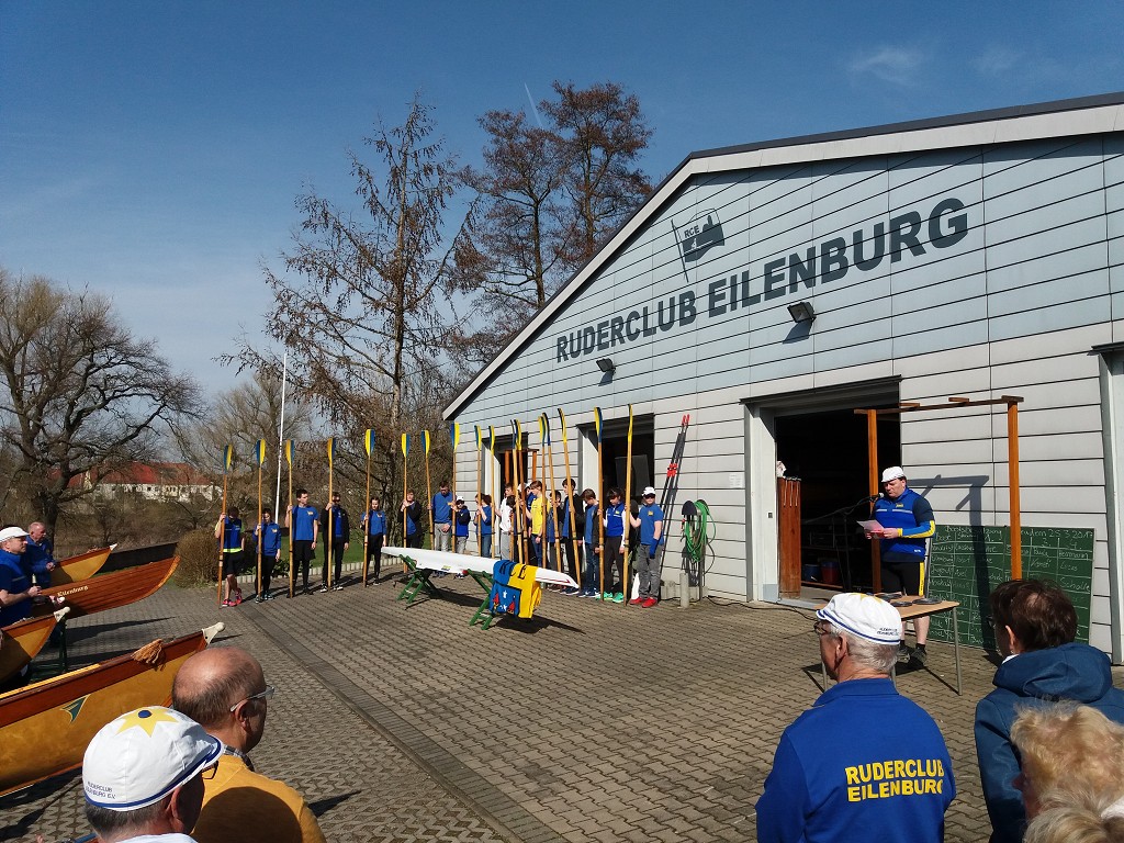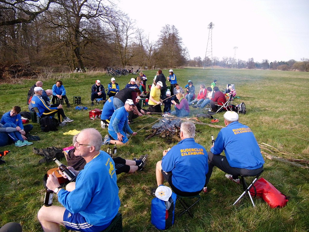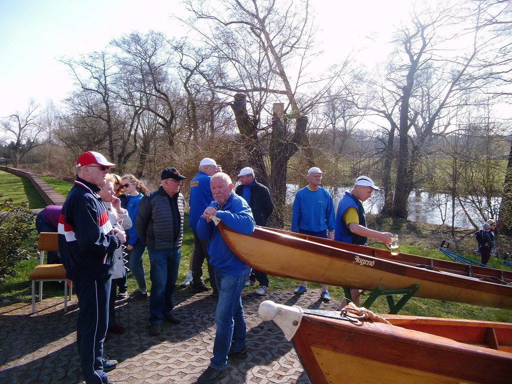 Ein vorbildlicher Frühlingstag führte zahlreiche Mitglieder und Gäste heraus aus dem "Winterflaus" und hinein in die neue Wassersaison. Nach hochoffiziellen Hinweisen zur Sicherheit und diversen Siegerehrungen konnte der Vorsitzende Felix Weiske den ersten Höhepunkt des Tages ankündigen: Eine der leider viel zu seltenen Taufen eines niegelnagelneuen Bootes. Taufpatin Leonie Korn durfte dem Renneiner namens "Condor" "immer eine Handbreit Wasser unterm Kiel" wünschen und die ersten Schläge auf dem Mühlgraben vollziehen. Dank der guten Vorbereitung waren die Bootsbesatzungen bald am Start und flußaufwärts unterwegs. Nach Kaffee und Kuchen am Bootshaus spazierten viele zum altbekannten Rastplatz auf der Mühlgrabenwiese und fanden sich dort mit den Rudernden vereint wieder. An der Feuerstelle verging die Zeit bei Speis, Trank, Schwatz und Liedgut wie im Fluge. Mit Einbruch der Dämmerung wurde zum Aufbruch in Richtung Heimathafen geblasen. Schließlich mußte ein schöner Tag in ein gemütliches Finale überführt werden. Vielen lieben Dank an alle Mitwirkenden!