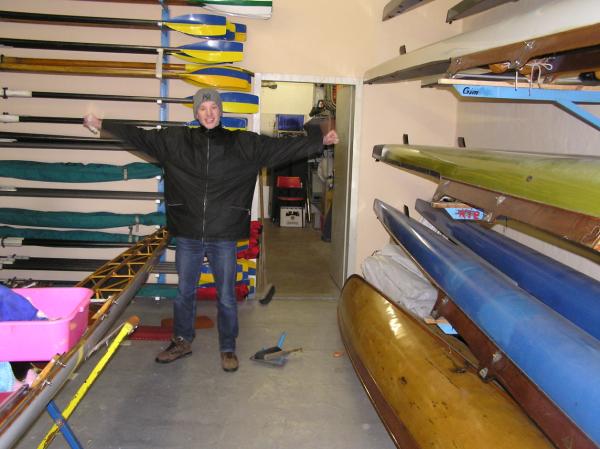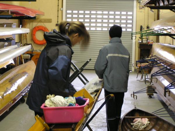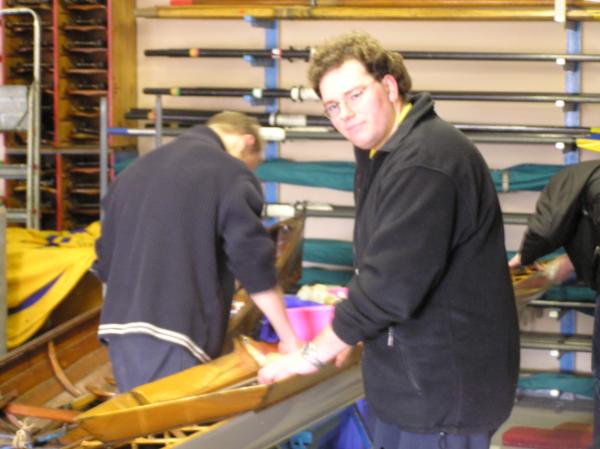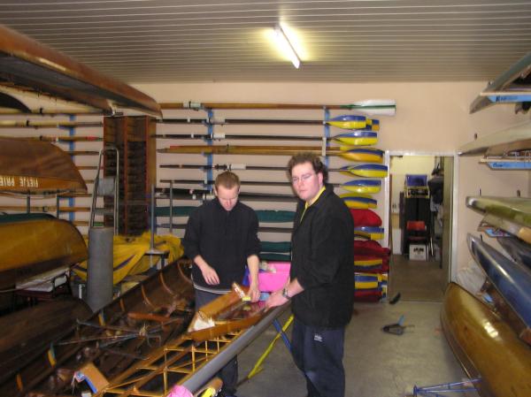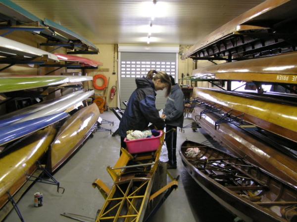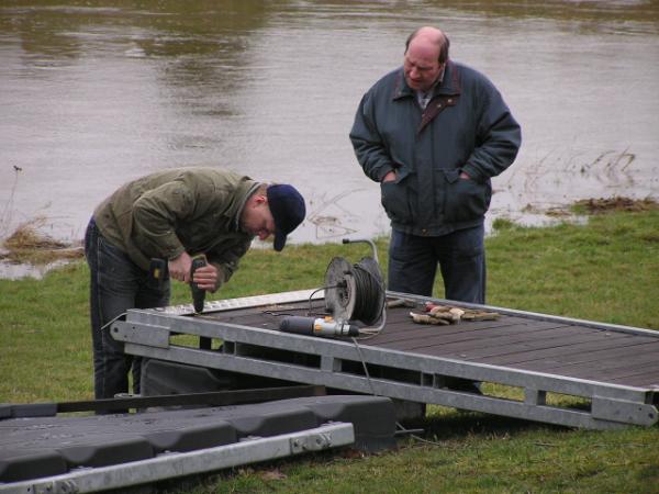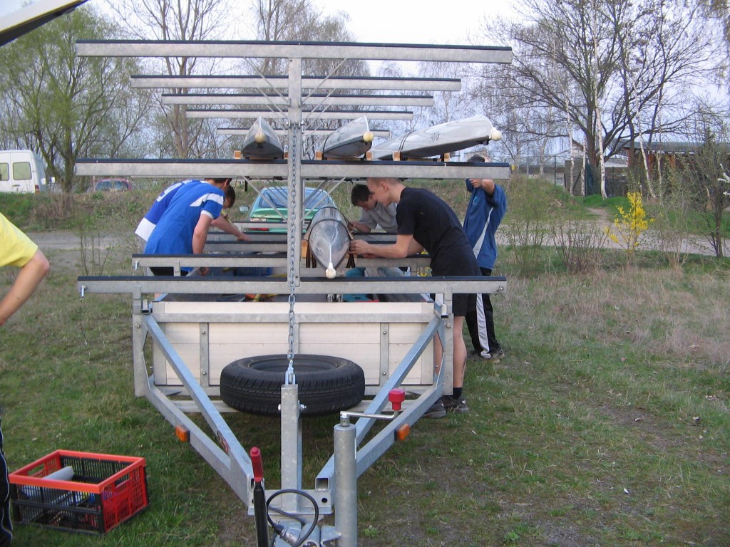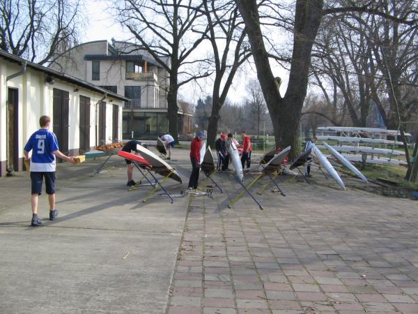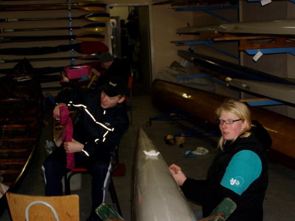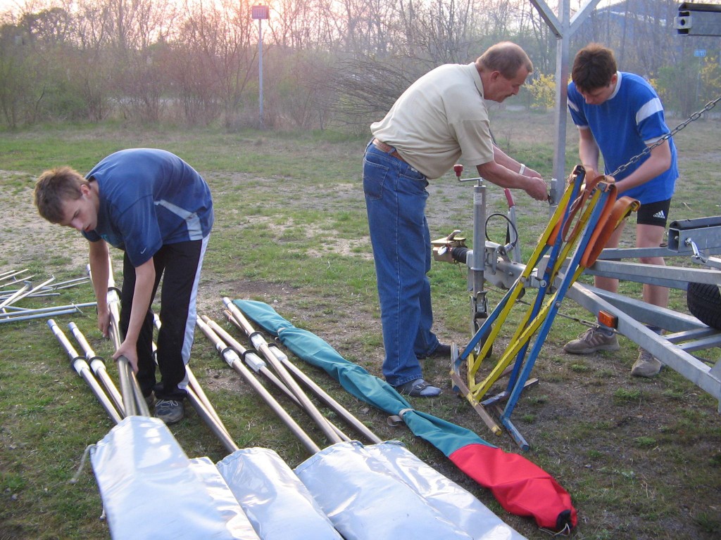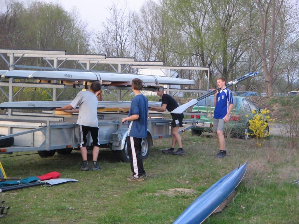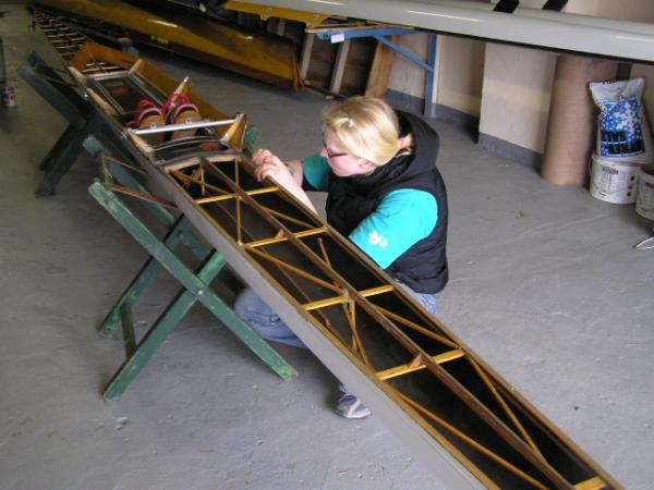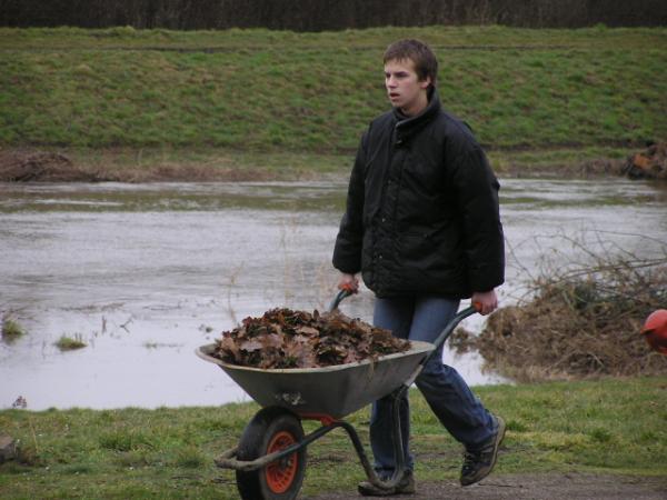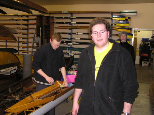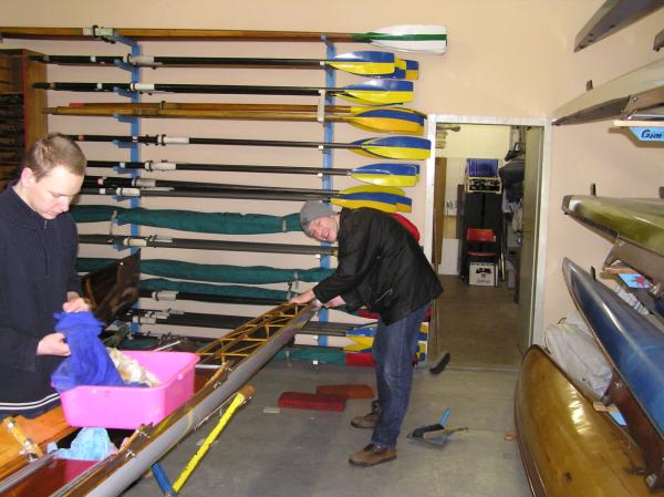Alljährlich stand der große Arbeitseinsatz im Frühjahr an. Wieder fanden sich einige Vereinsmitglieder im Bootshaus ein um gemeinsam das Material in Ordnung zu bringen, das Gelände in Schuss zu halten und im Gebäude für Ornung zu sorgen. Hier seien einige der Tätigkeiten beschrieben: Andrea hat im Saal gewischt und überhaupt alles sauber gemacht, die Kitzings kümmerten sich mit Rainer in bewährter Weise um die Ruderboote. Carsten und Knut haben das Motorboot in Ordnung gebracht. Klaus, Scholle und Hartmut haben im Eingangsbereich die Bäume verschnitten. Frank, Herr Bellrich, Mario und Florian hakten Laub zusammen. Marie und Florian sowie Mario und Christian habe an den Rennbooten gearbeitet, wozu sich auch später noch Andrea gesellte. Der Steg wurde von Thomas in Ordnung gebracht. Gemeinsam wurde dieser dann zum Schutz vor dem hohen Wasser in höhere Hanglagen verbracht. Auch hinter dem Bootshaus wurde Laub gefegt und gekehrt, die Zeltkammer wurde aufgeräumt und der provisorische Bauzaun am einen Ende des Grundstücks wurde vorerst wieder abgebaut. Miachael hat "seine Spielwiese" ebenfalls von Laub und Naturresten befreit. Alles in allem war es ein ergiebiger Einsatz mit normaler Beteiligung.
