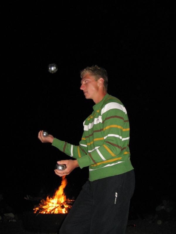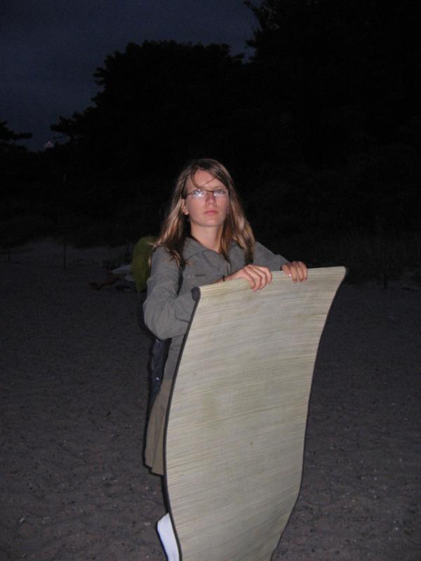 Freitag war erst einmal das Errichten der Unterkünfte wichtig, da das Wetter doch etwas wechselhaft war. Als nächstes gab es leckeres Abendbrot, welches liebevoll von Robert angerichtet wurde. Danach wurden wir in zwei Gruppen eingeteilt und versuchten aus Ästen, einer Folie und Heu ein schwimmendes Boot zu bauen. Doch nur eine Gruppe war erfolgreich und man kann es kaum glauben – das Boot schwamm sogar, wenn jemand drin saß. Glücklicherweise waren danach noch alle trocken und so konnten wir uns dann zum Abschluss des Tages ein Lagerfeuer anzünden, wo wir in gemütlicher Runde bei Feuerschein und Marshmellows denn Tag ausklingen lassen haben.
