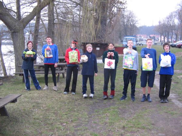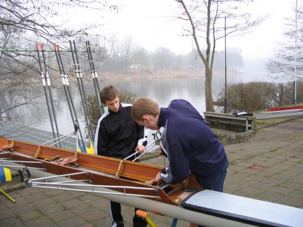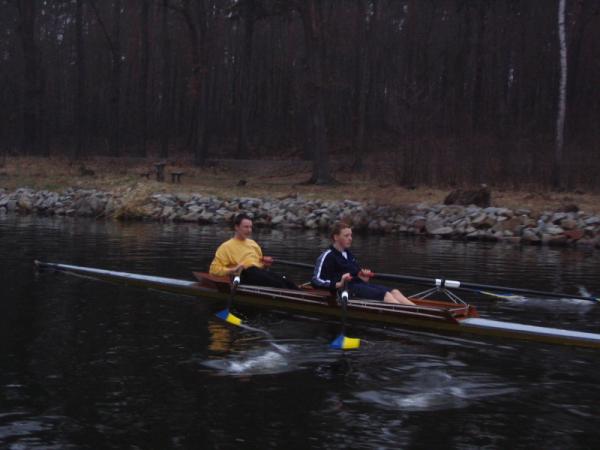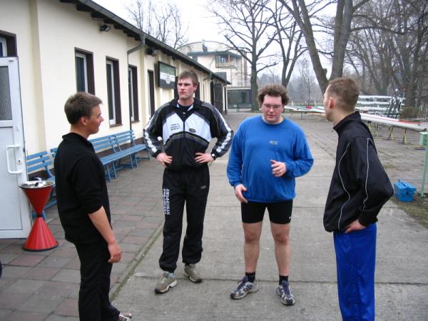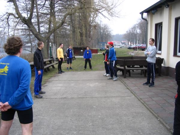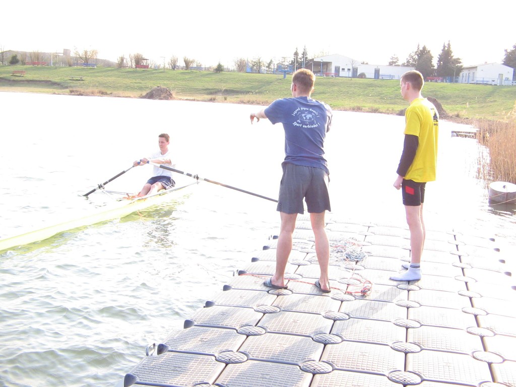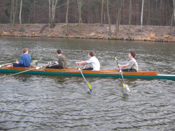 Die zehn Sportler des Ruderclubs Eilenburg e.V. kehrten am Donnerstagabend in nach Hause. Sie befanden sich eine Woche lang im Trainingslager nahe Berlin. Gleich nach Ankunft wurden die Boote angebaut und sich für die erste Trainingseinheit vorbereitet. Danach die Zimmer eingeräumt und dann mit der ersten Trainingseinheit begonnen. Mittlerweile war nun der Abend eingebrochen und die Sportler ließen sich erschöpft zum Abendbrot nieder. Die folgenden Tage liefen alle gleich ab 7.00 Uhr aufstehen. Dann Frühsport, 7.45Uhr Frühstück. 9.00 Uhr erste Wassertrainingseinheit mit Erwärmung und auslaufen. Ca. 13.00 Uhr Mittag. Eineinhalbstunden Pause, welche meist zum ausruhen genutzt wurde. Dann folgte eine Landtrainingseinheit, welche meist laufen beinhaltete. Danach gab es Kaffee worauf nochmals eine kurze Pause zur Verdauung folgte. Im Anschluss folgte die zweite Wassertrainingseinheit des Tages, welche nach ca. 2 Stunden endete. Den Anschluss bildete noch das Abendbrot und dann der erhoffte Schlaf. Mit dabei waren aus der Altersklasse 13: Florian Bellrich (167 km) und Florian Straub (158 km).Der Altersklasse 14 leider nur eine: Elisabeth Butras (161 km). Bei den Junioren B: Maria Grigat (168 km), Marie Hofmeister (169 km), Hannes Köhler (178 km), Mario Winter (174 km) und Christian Puritz (178 km). Bei den Junioren A leider nur einer: Christoph Krüger (194 km). In der jetzigen Wochen, wo ja wieder Schule ist, wird trotzdem fleißig weitertrainiert, damit wir fit für die ersten Regatten sind. Die erste Regatta für die Sportler ist die Langstreckenregatta am Sonntag, den 17.April 2005. Auf ein reges erscheinen freut sich auch der Ruderclub Eilenburg e.V. am 7. + 8. Mai 2005, wo die Eilenburger Frühjahrsregatta auf der Kiesgrube stattfindet. Diese Regatta ist gleichzeitig eine Qualifikationsregatta für den Bundeswettbewerb. Informationen rund um die Eilenburger Ruderjugend unter www.ruderjugend-eilenburg.de