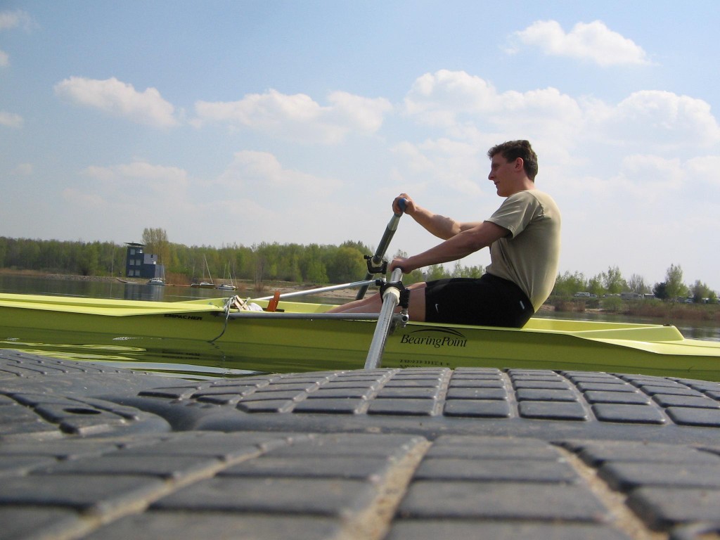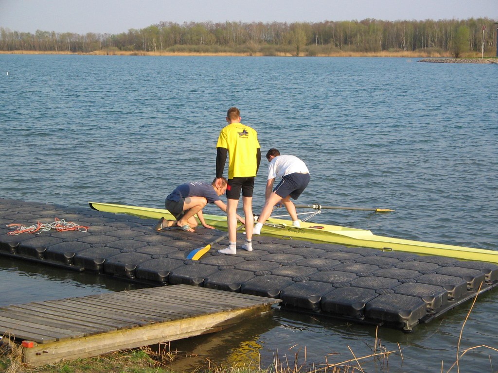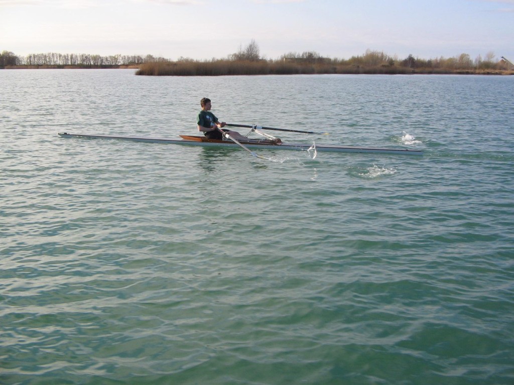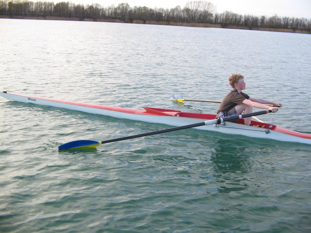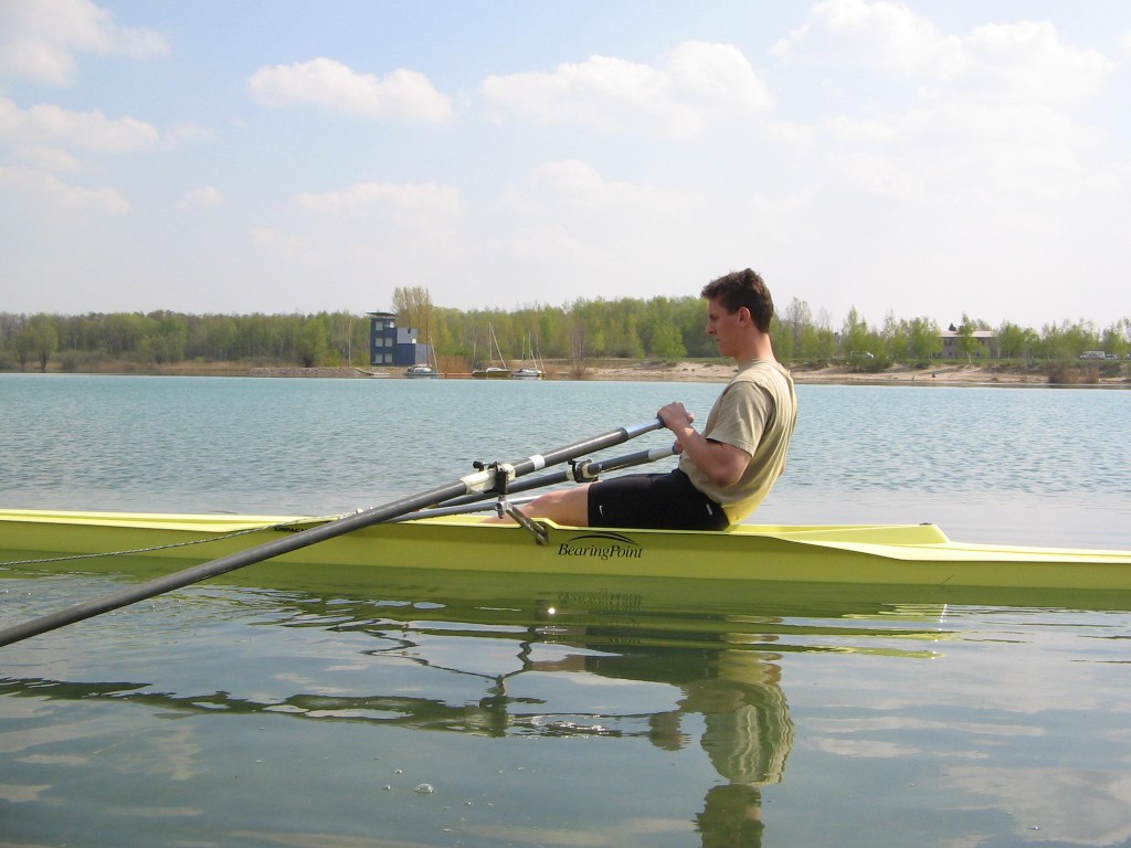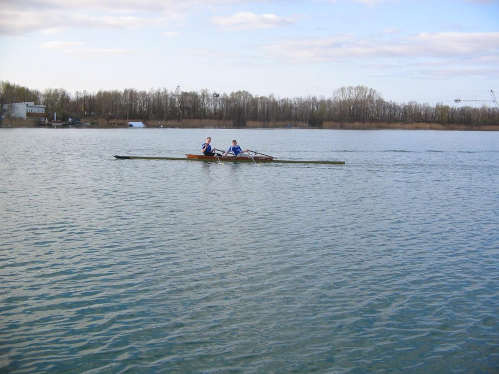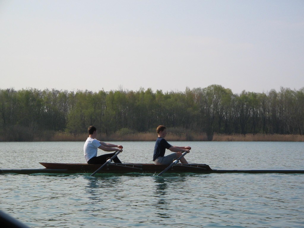 Der zweite Rudertermin an diesem Wochenende war der Montagnachmittag. Auch hier sollte wieder der Doppelvierer gefahren werden, dieser fiel jedoch wegen eines Stemmbrettschadens aus. So wurde umgesattelt auf Zweier und Einer. Thomas und Torsten ruderten im Panther, Felix, Bastian und Andrea genossen das tolle Wetter und die guten Wasserbedingungen im Einer. Zum Abschluss wurde beim Kiesgrubenschenkenwirt eine kleine Mahlzeit geordert und am Strand verzehrt.