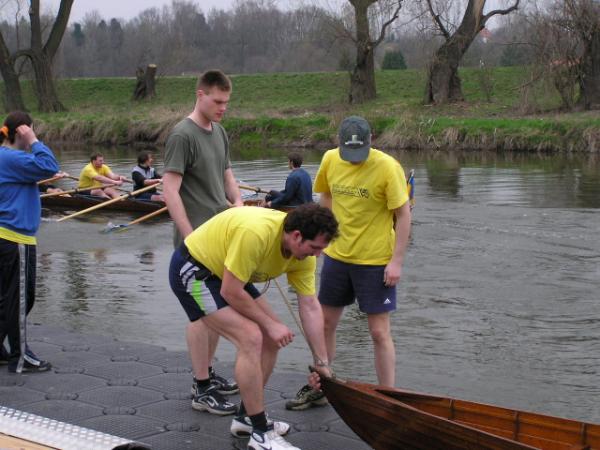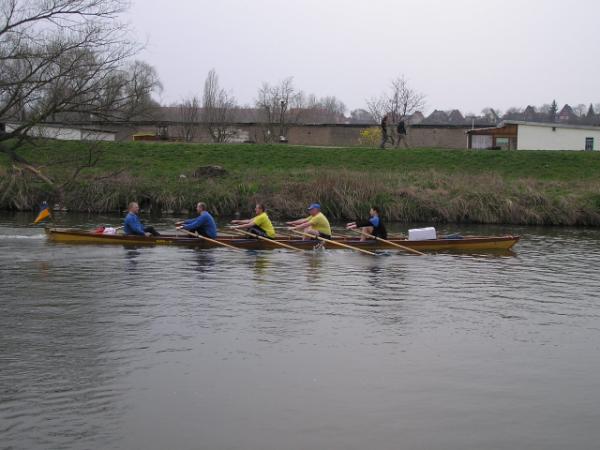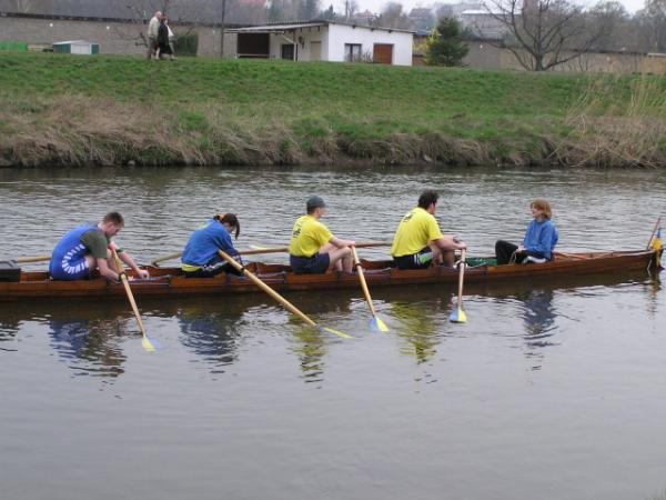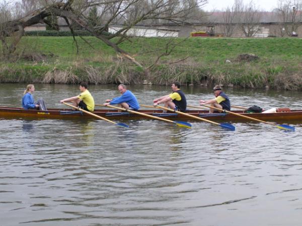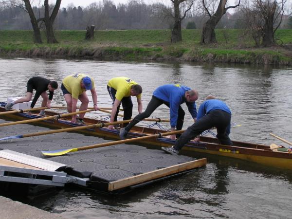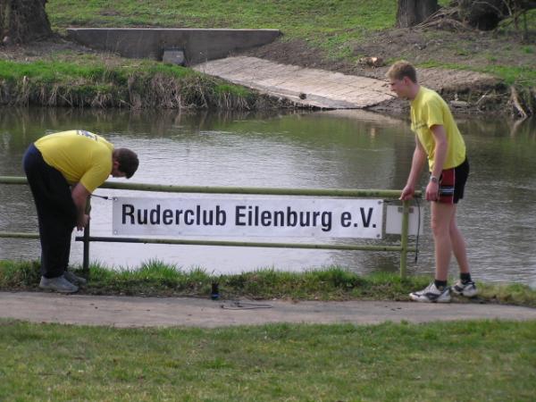 so die traditionellen Worte vom Vereinsvorsitzenden des Ruderclub Eilenburg Wilfrid Dippmann zum Start in die neue Wassersaison. Am zurückliegenden Sonnabend eröffneten die Eilenburger Ruderer bei mildem Frühlingswetter offiziell ihre Rudersaison 2004. Den Auftakt am Nachmittag gab der Vorsitzende mit einer kurzen Ansprache, bei der auch die Pokale für die Sieger des Ergometerwettkampfes sowie Sportabzeichen verliehen wurden. Aber auch außerhalb des Bootshauses hat sich einiges getan. Einigen Spaziergängern wird es schon aufge-fallen sein. Auf dem Freigelände am Bootshaus haben die Ruderer eine neue Spielfläche angelegt, auf der auch schon fleißig Volleyball, Tennis und Basketball gespielt werden. Somit verbessern sich auch die Bedin-gungen für den Freizeitsport. Andere Herausforderungen liegen jetzt an.
