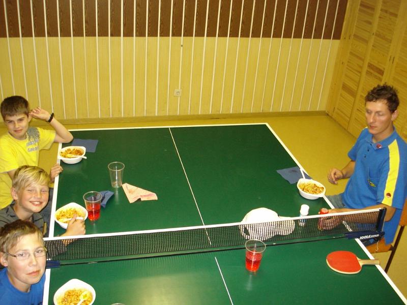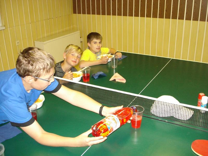Dort wurde bis zum Abendbrot noch Tischtennis gespielt, da das Experiment, riesige Seifenblasen zu erzeugen, fehlschlug. Zu einer recht frühen Abendbrotzeit gab es leckere Nudeln mit Wurstgulasch und roter Brause, zum Nachtisch für jeden einen Riesen-Schaumkuss. Ein gelungener Abschluss für einen schönen Tag.