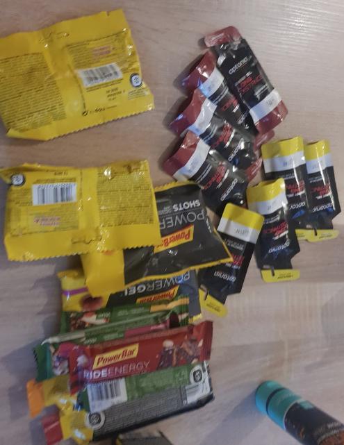 Zur Vorbereitung gehört natürlich auch ein ordentliches Strecken-Versorgungskonzept. Oben im Bild sieht man rund 12.000 kcal auf dem Tisch liegen – entspricht der ungefähren Menge, die man an so einem Tag verbrennt.