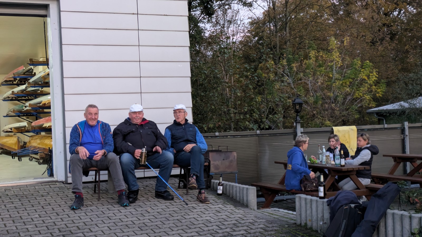 Danach gingen ein letztes Mal in diesem Jahr fünf Vierer und und ein Zweier zu Wasser und entsprechend viele Ruder zur Hand. Auf der Mühlgrabenwiese wurden sie durch zahlreiche Ankömmlinge über Land verstärkt. Bei schönstem Wetter, Lagerfeuer, Speis, Trank, Gitare und Gesängen ergab sich wie immer ein fröhliches Beisammensein. Dieses wurde nach Einbruch der Dämmerung noch am und im Bootshaus in gepflegter Atmosphäre angemessen fortgeführt. Vielen Dank Allen, die für das Gelingen dieses schönen Tages gesorgt haben.