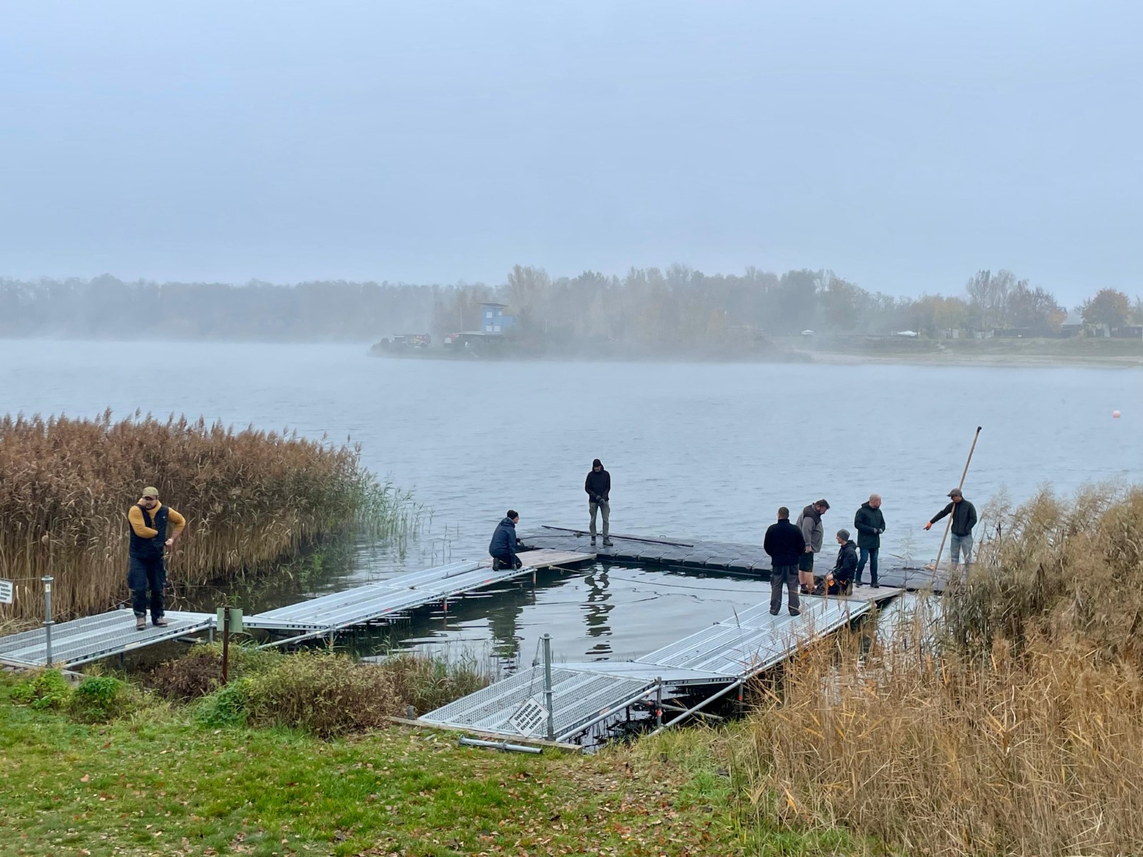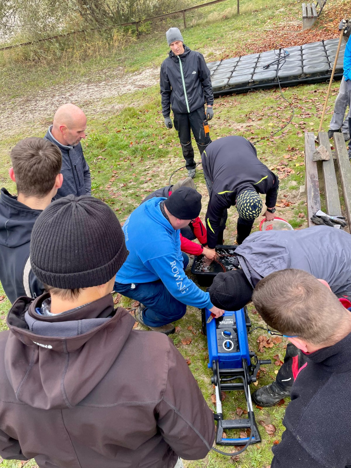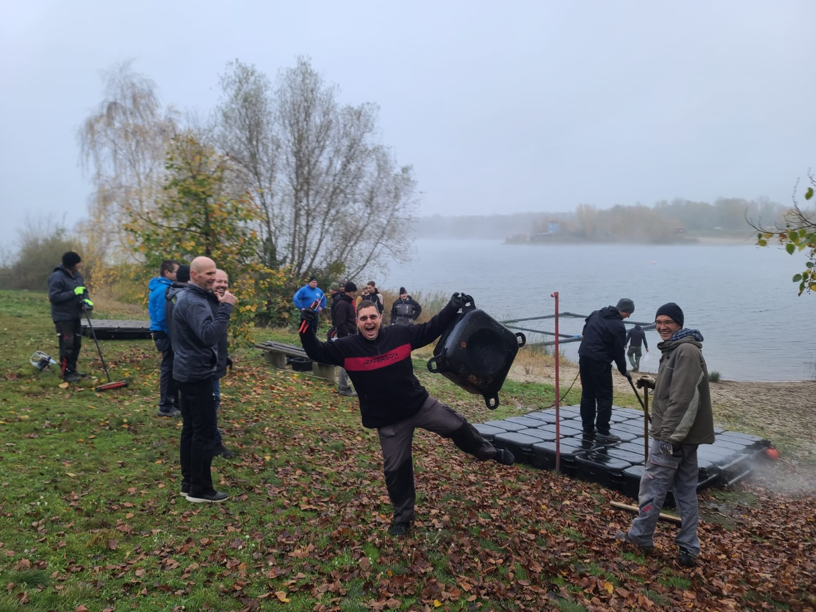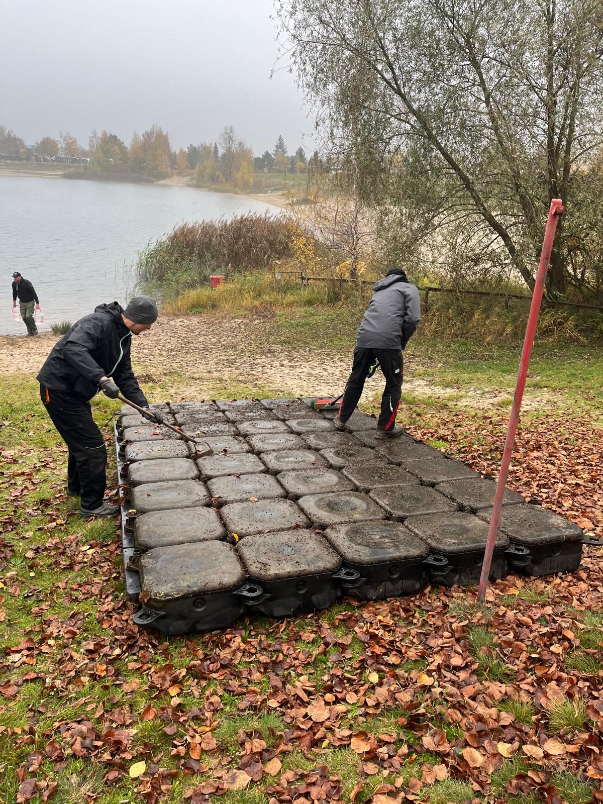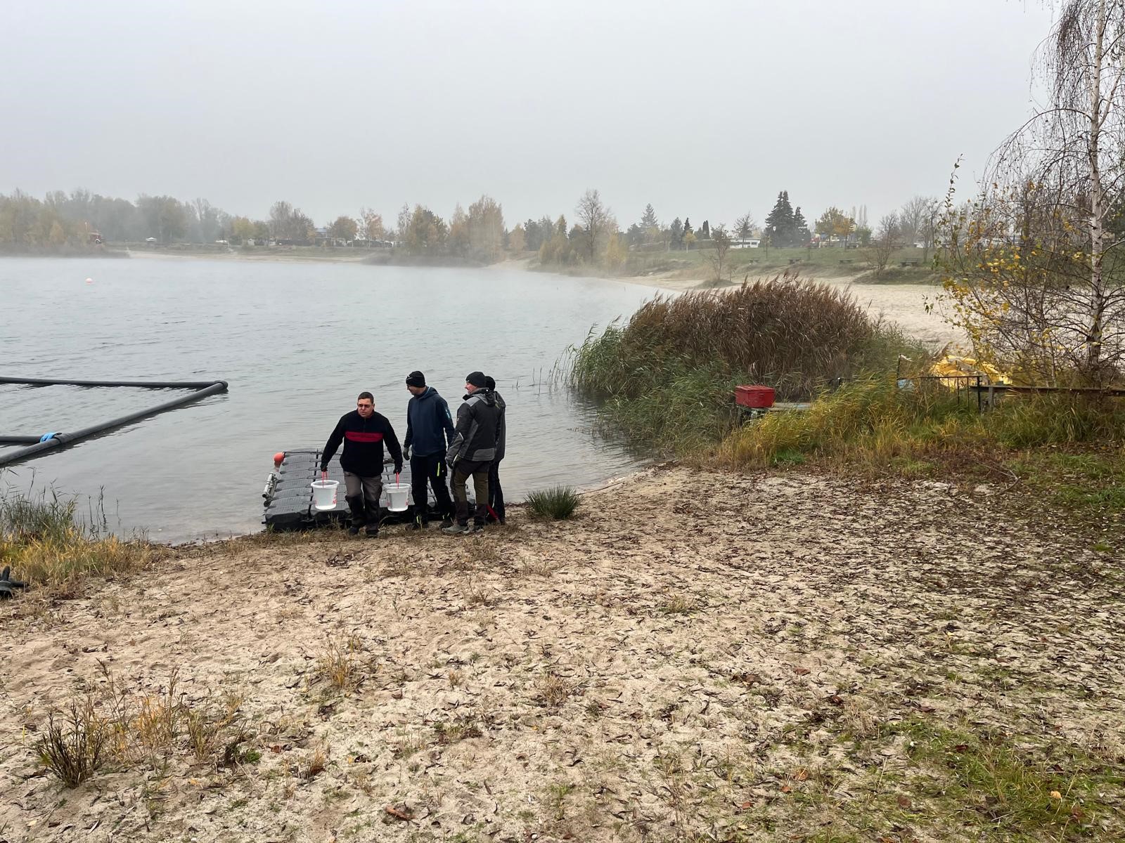 Vor der Winterruhe gab es draußen noch mal ein ordentliches Gewusel an Mühlgraben und Kiesgrube. Wie immer eigentlich. Diesmal jedoch zogen beeindruckende Nebelschwaden über das Wasser, während die Pontons eine Sonderbehandlung mit dem Hochdruckreiniger erhielten. Außerdem kamen noch ein paar Teilnehmer des diesjährigen Entenrennens unter der Anlage am Bootshaus zum Vorschein. Alles Loser! ;-)