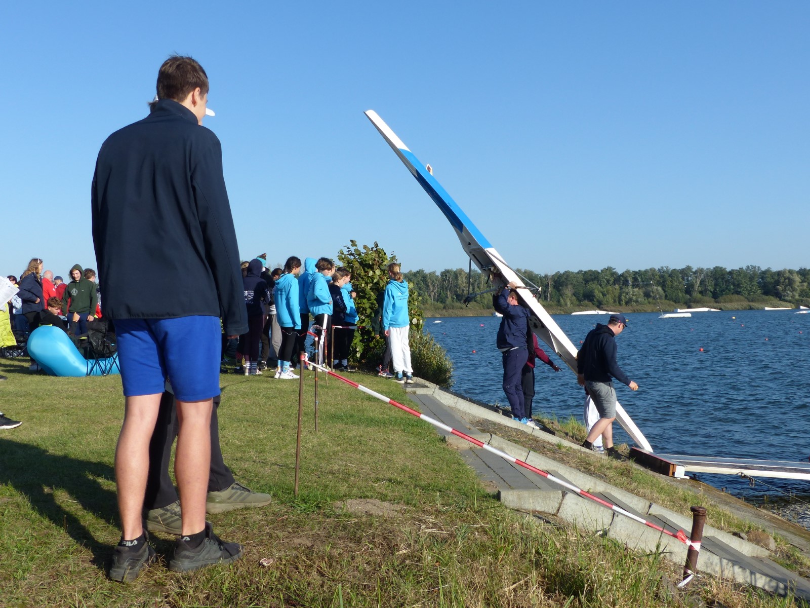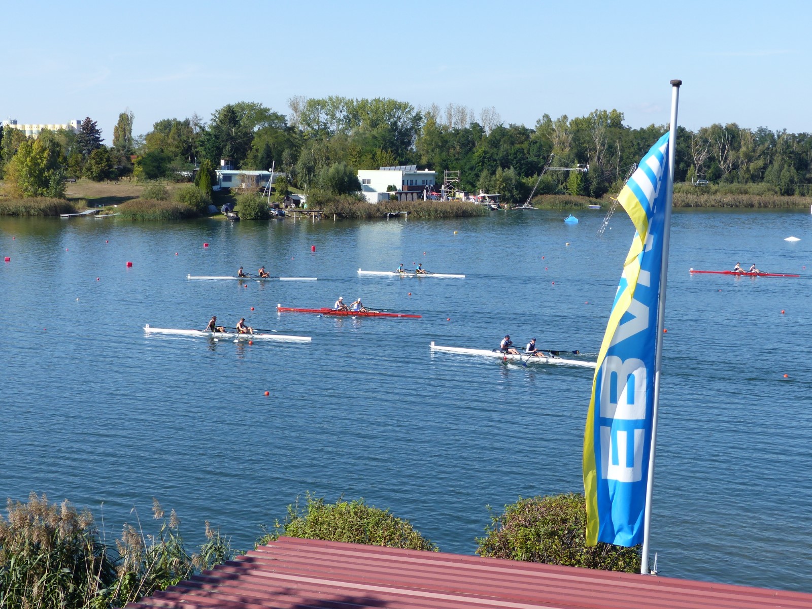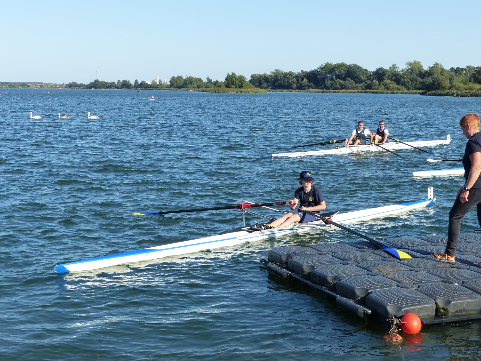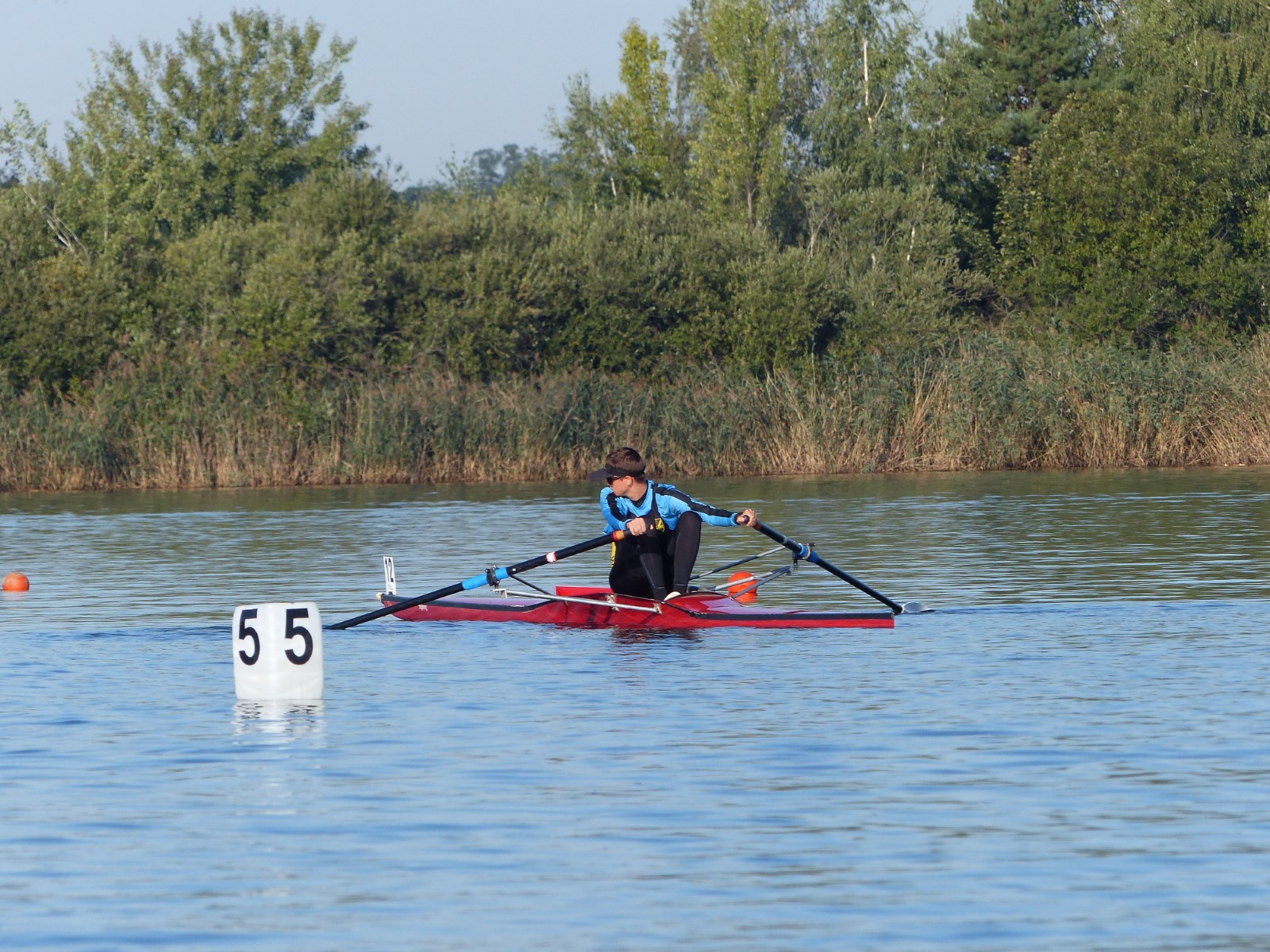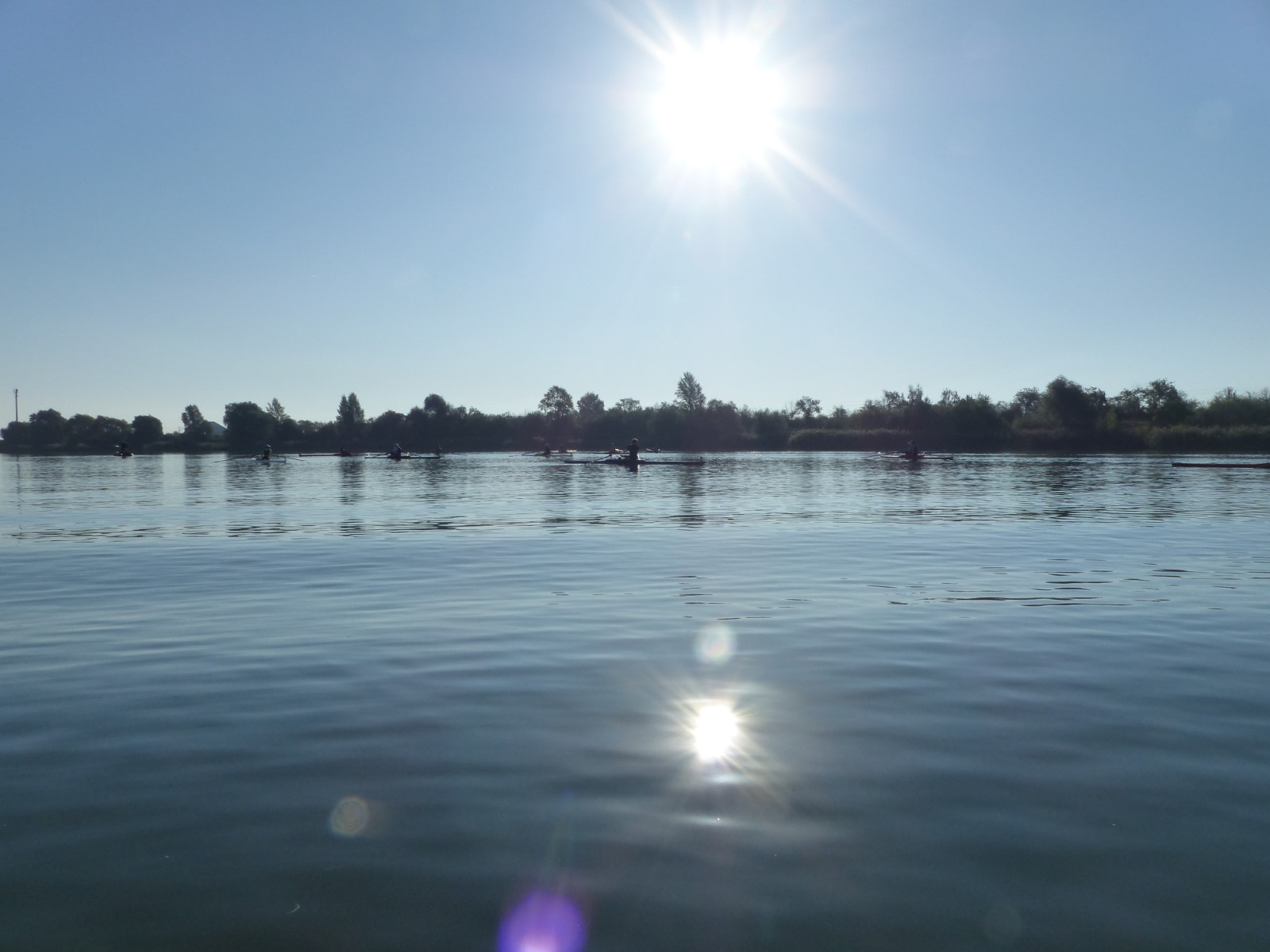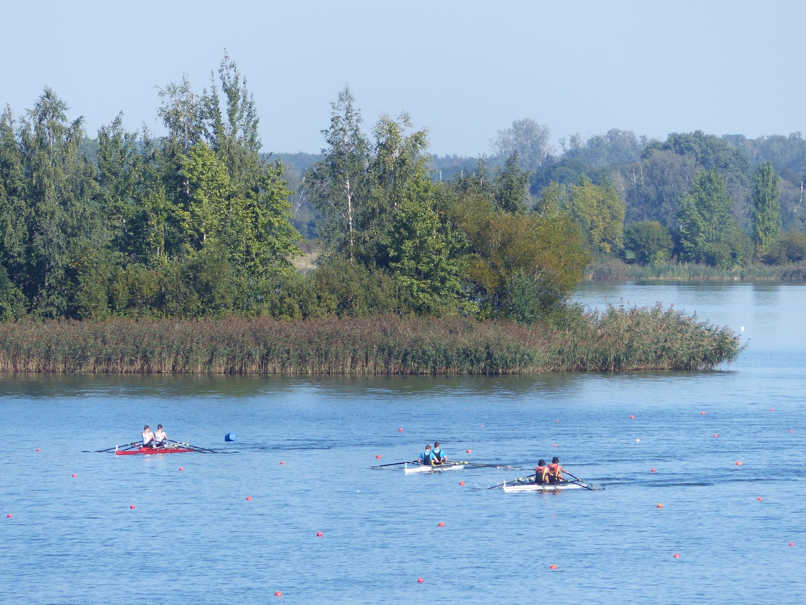 Eine Woche vorher, beim Aufbau der 6-Bahnen-Strecke, sorgte noch heftiger Seitenwind für erschwerte Bedingungen. Am Regatta-Samstag schob eine leichte Ostbrise die Boote schneller über die Distanz und sorgte vor allem im Zielbereich für einige Wellen. Mit etwas Routine waren diese problemlos zu meistern. Nur wenige Rudernde mussten von der Wasserwacht aus dem noch wohltemperierten Kiesgrubenwasser gezogen werden.