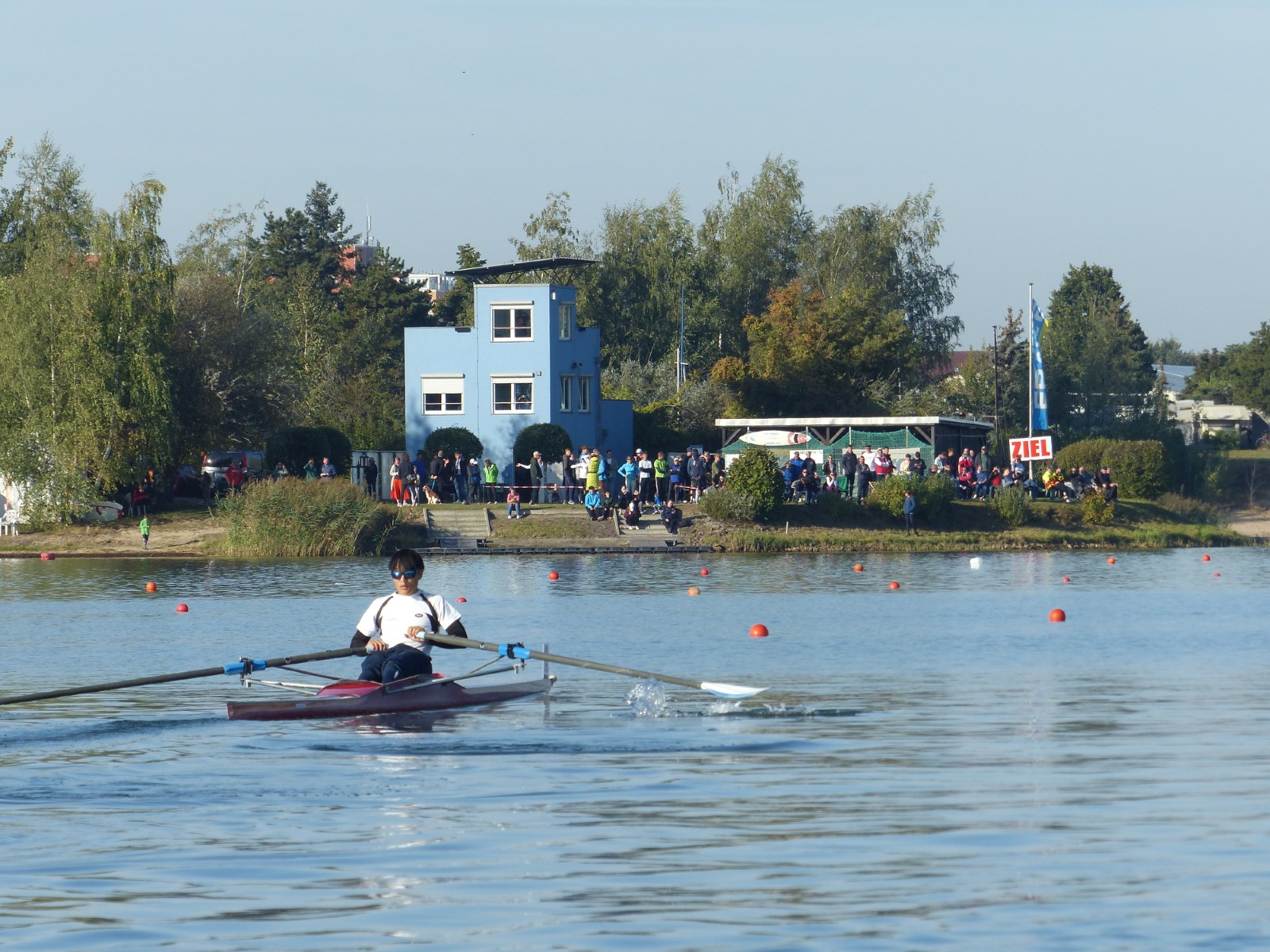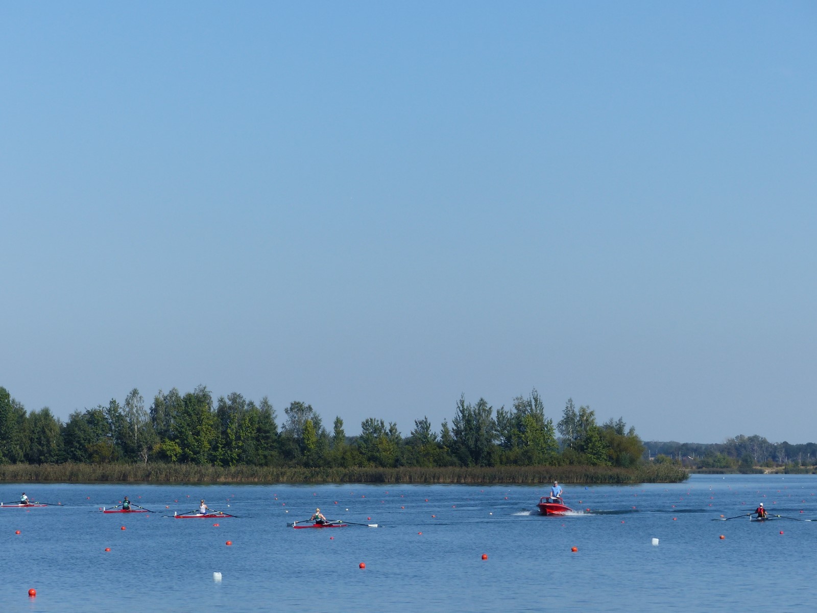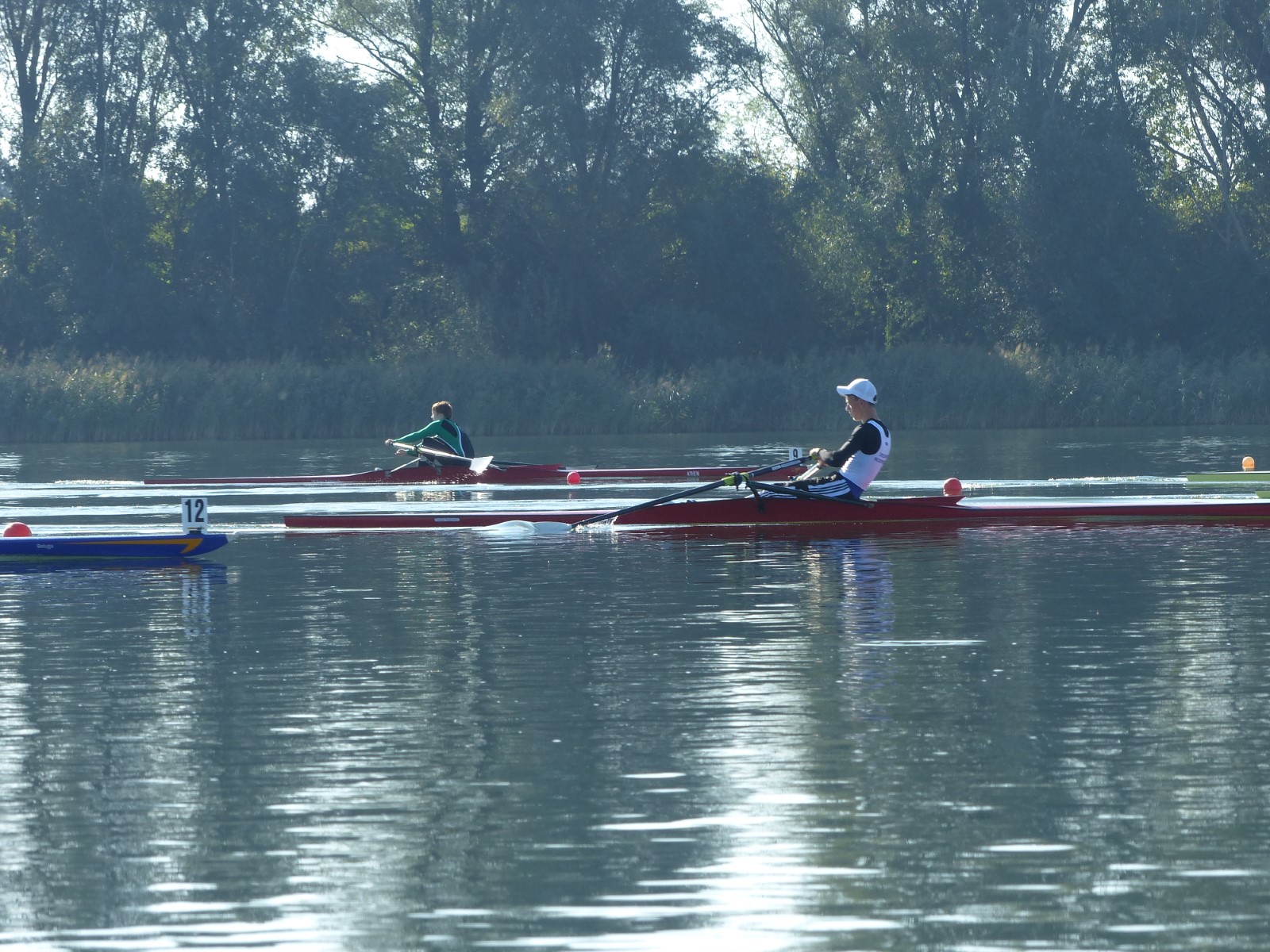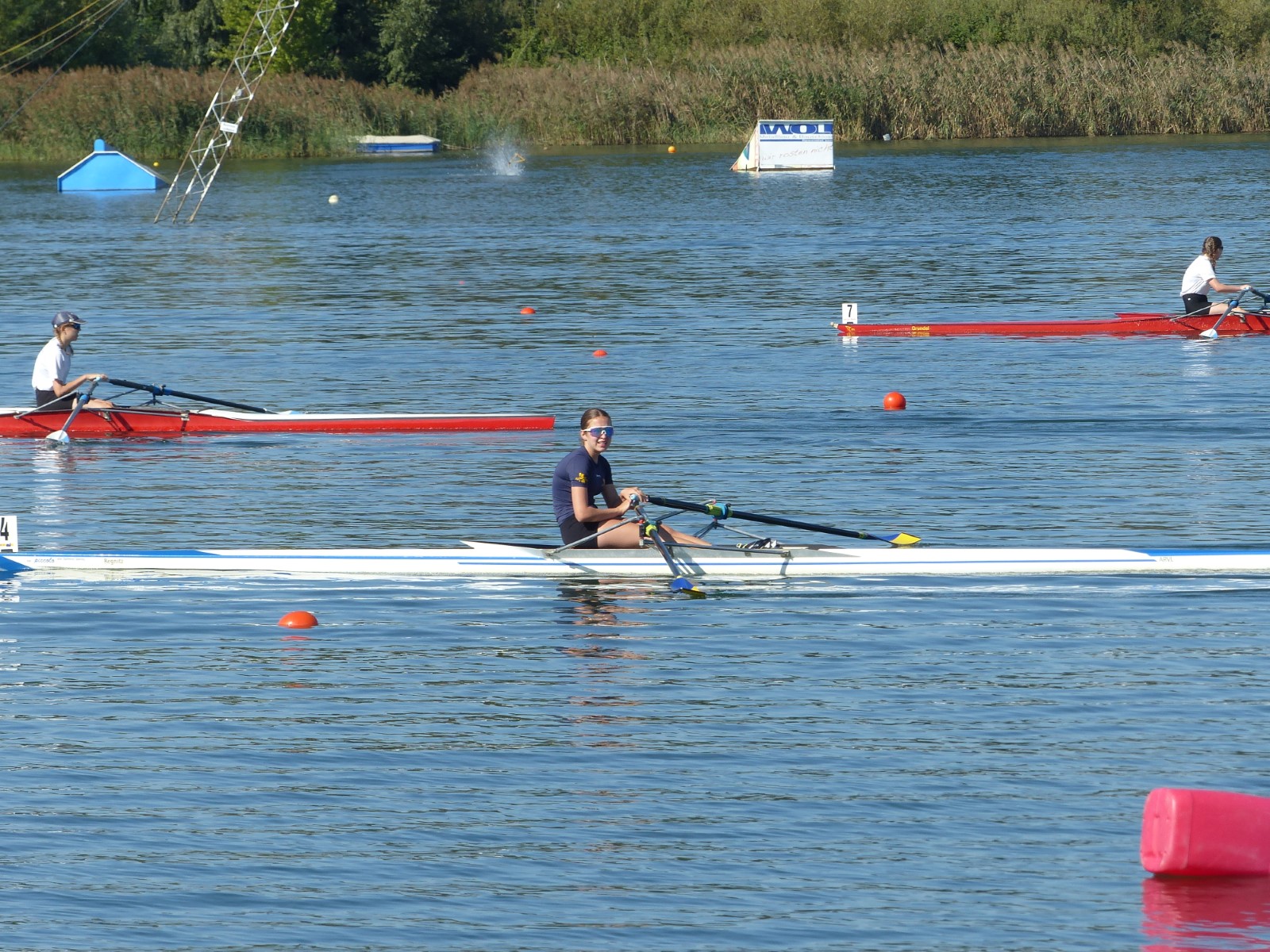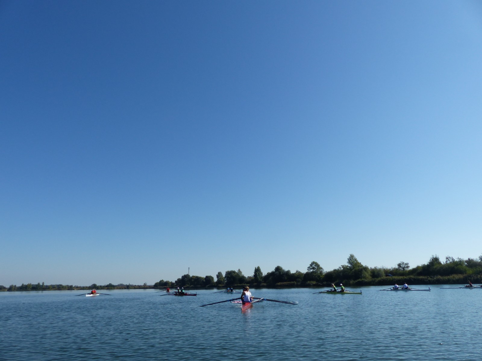 Eine Woche vorher, beim Aufbau der 6-Bahnen-Strecke, sorgte noch heftiger Seitenwind für erschwerte Bedingungen. Am Regatta-Samstag schob eine leichte Ostbrise die Boote schneller über die Distanz und sorgte vor allem im Zielbereich für einige Wellen. Mit etwas Routine waren diese problemlos zu meistern. Nur wenige Rudernde mussten von der Wasserwacht aus dem noch wohltemperierten Kiesgrubenwasser gezogen werden.