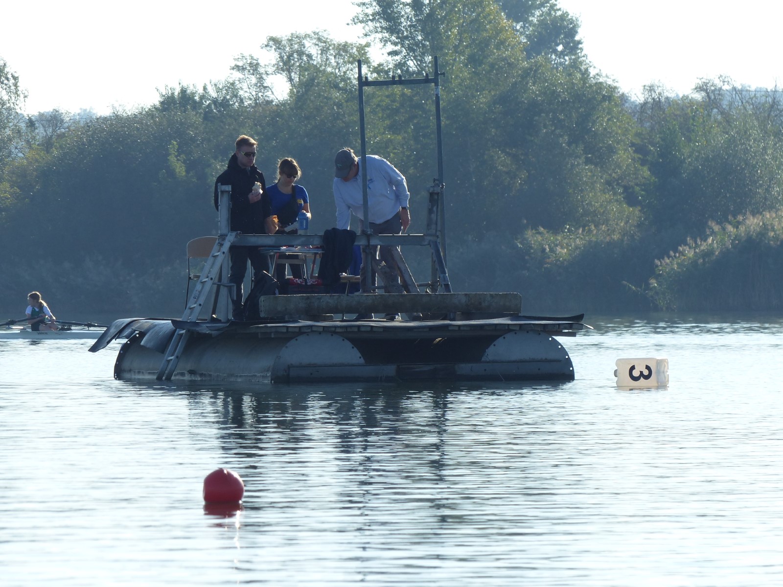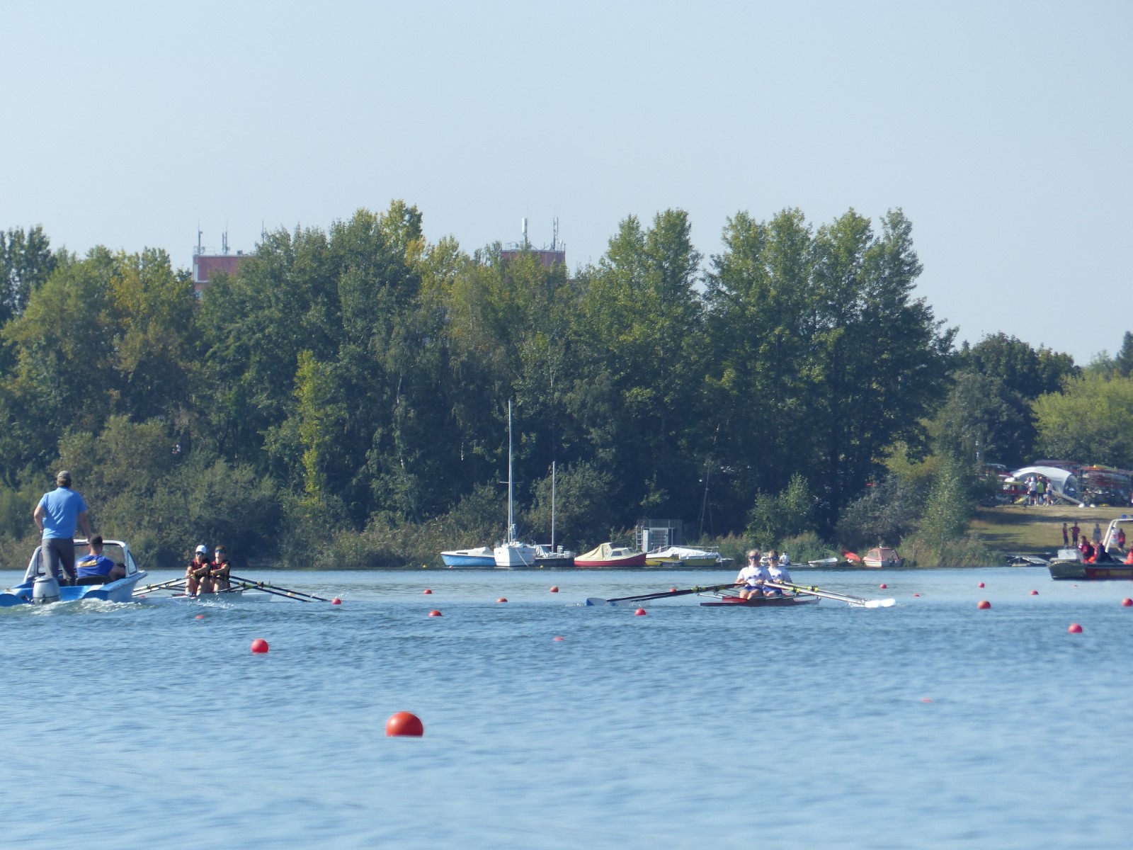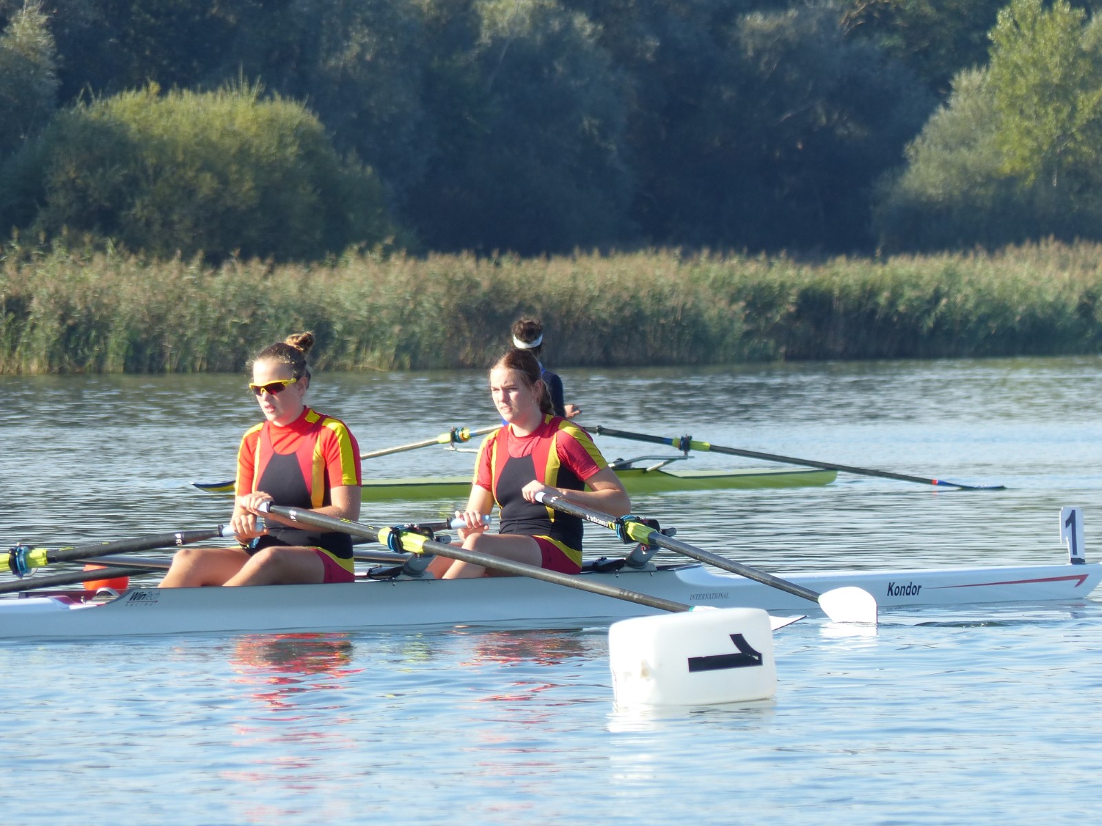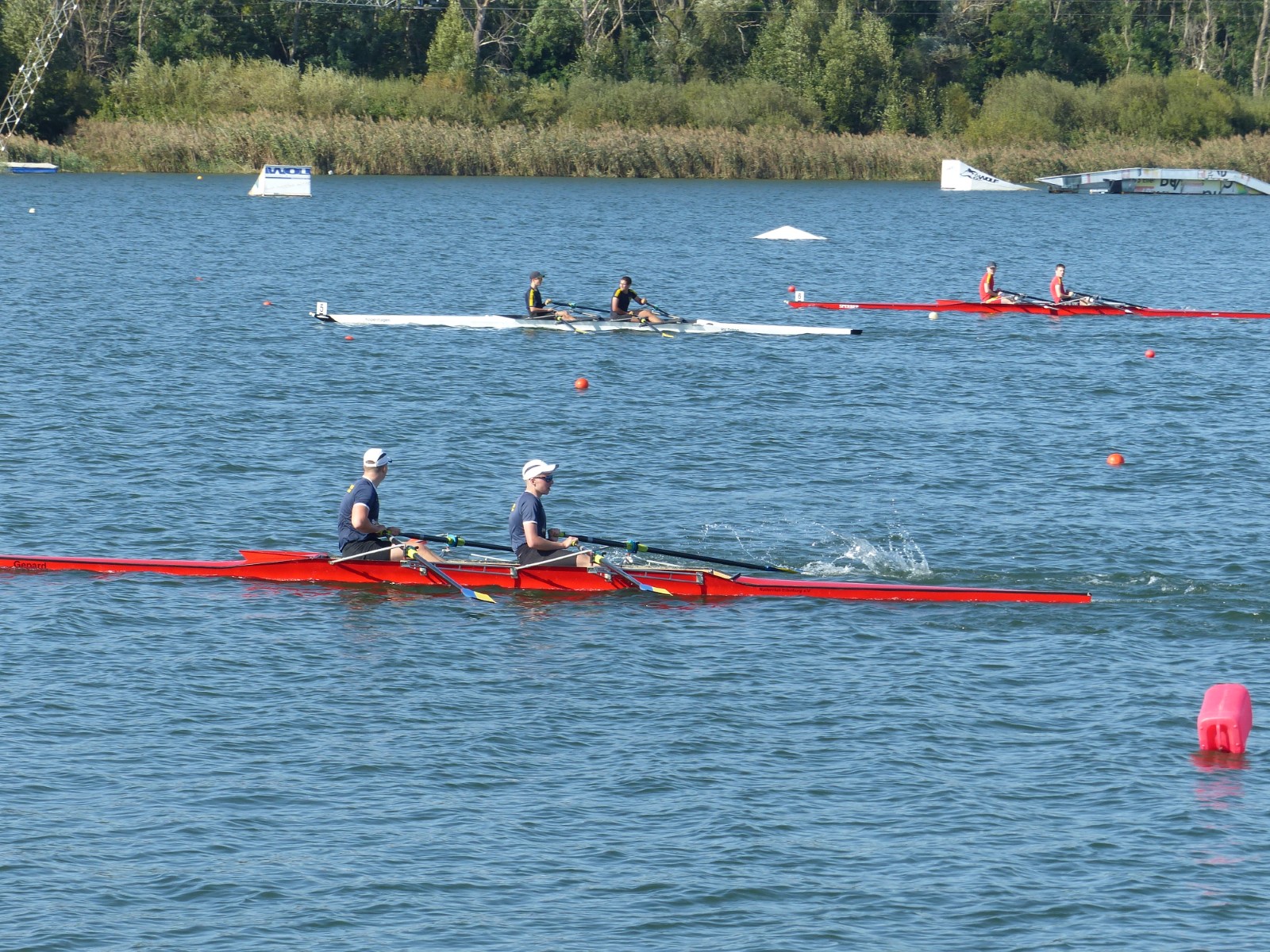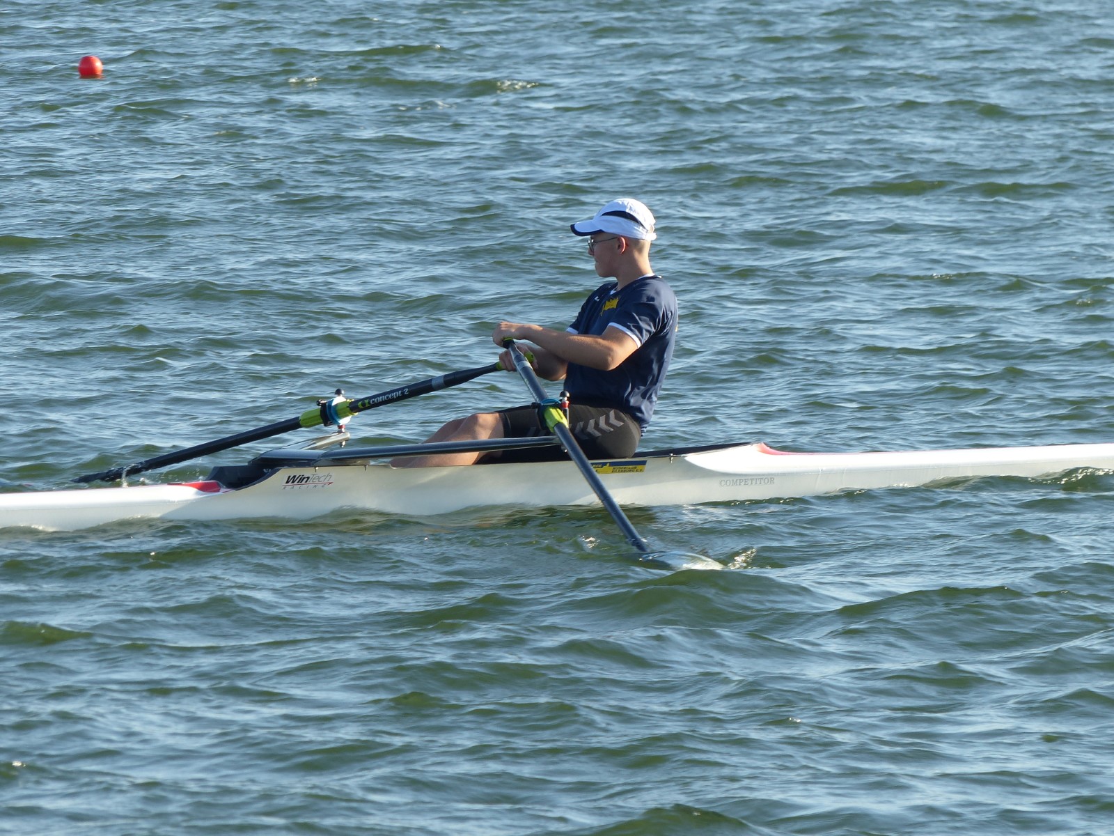 Eine Woche vorher, beim Aufbau der 6-Bahnen-Strecke, sorgte noch heftiger Seitenwind für erschwerte Bedingungen. Am Regatta-Samstag schob eine leichte Ostbrise die Boote schneller über die Distanz und sorgte vor allem im Zielbereich für einige Wellen. Mit etwas Routine waren diese problemlos zu meistern. Nur wenige Rudernde mussten von der Wasserwacht aus dem noch wohltemperierten Kiesgrubenwasser gezogen werden.