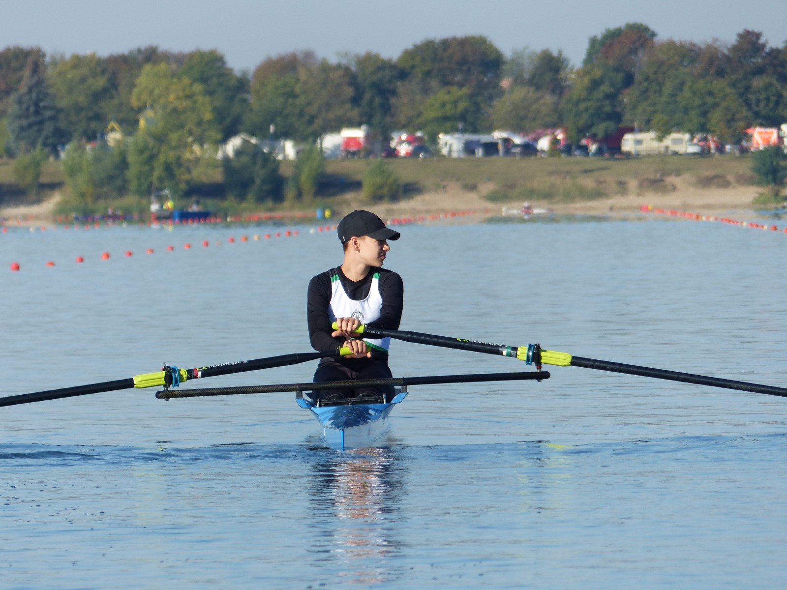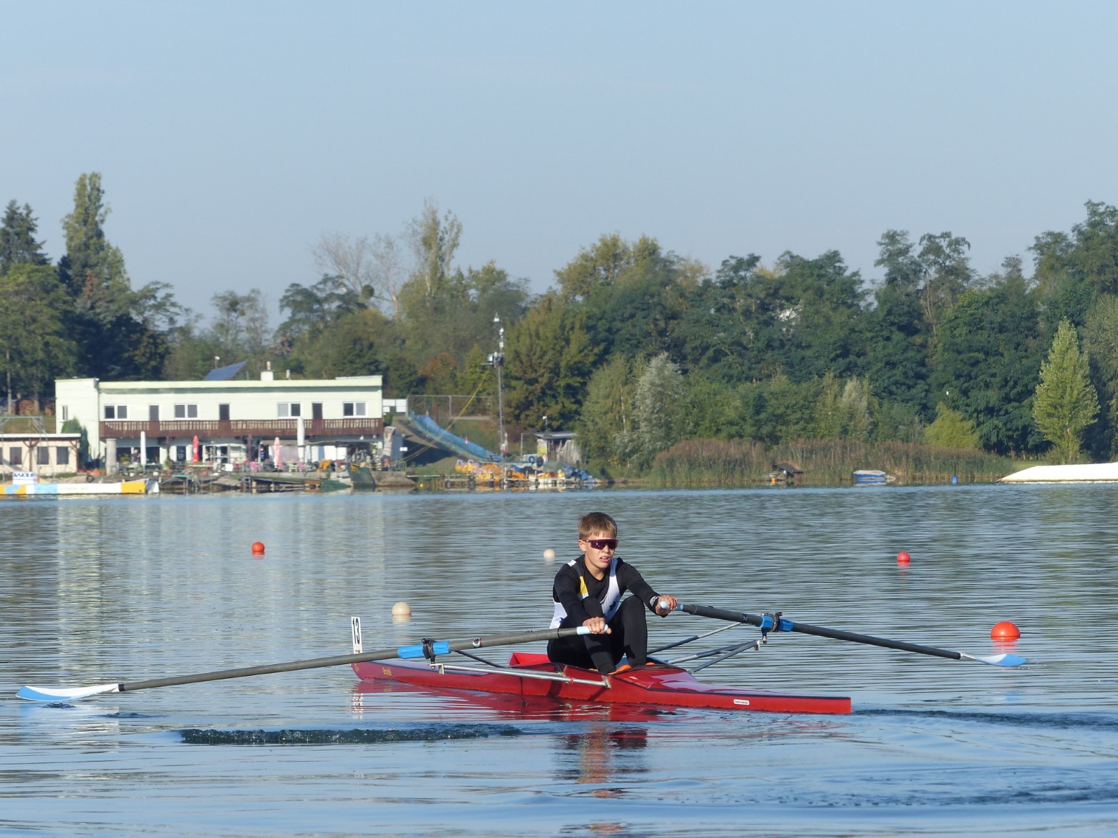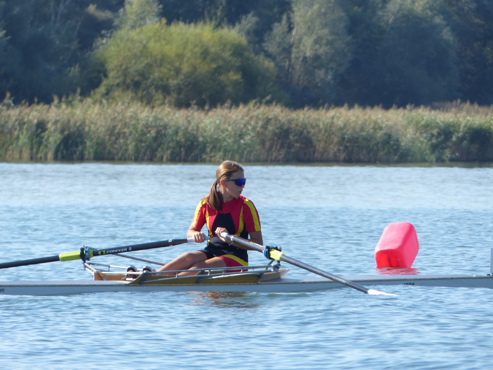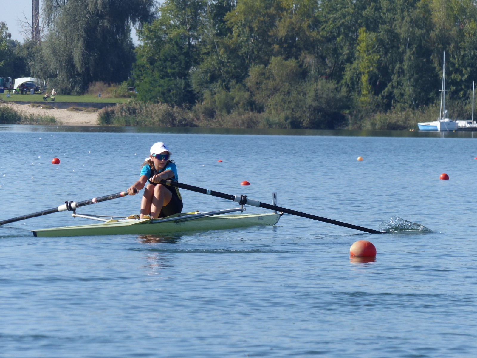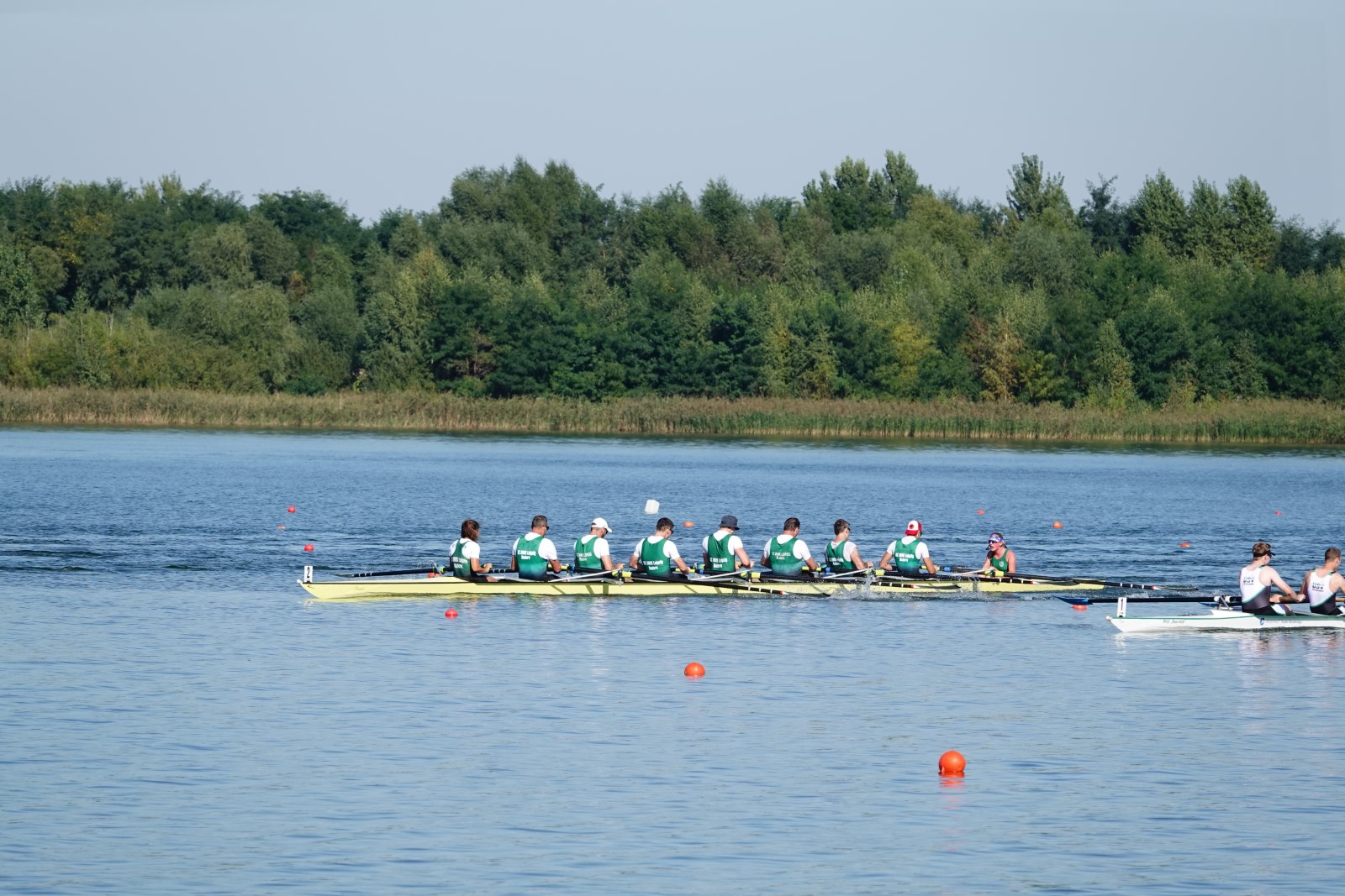 Eine Woche vorher, beim Aufbau der 6-Bahnen-Strecke, sorgte noch heftiger Seitenwind für erschwerte Bedingungen. Am Regatta-Samstag schob eine leichte Ostbrise die Boote schneller über die Distanz und sorgte vor allem im Zielbereich für einige Wellen. Mit etwas Routine waren diese problemlos zu meistern. Nur wenige Rudernde mussten von der Wasserwacht aus dem noch wohltemperierten Kiesgrubenwasser gezogen werden.