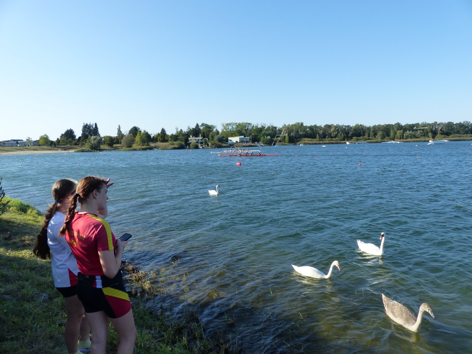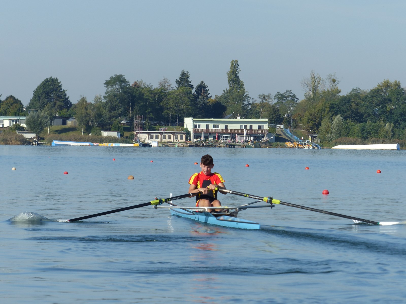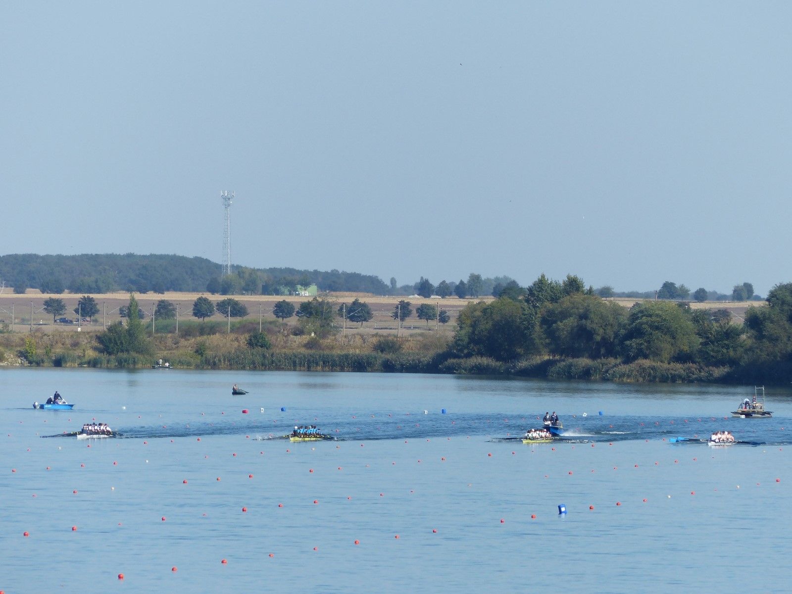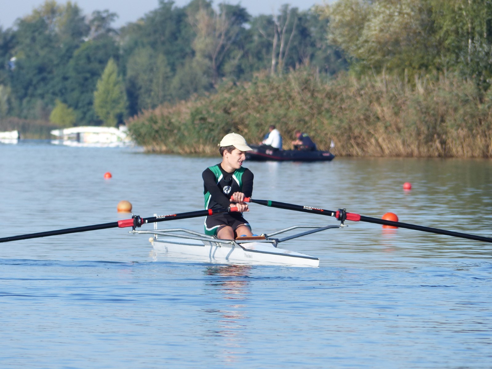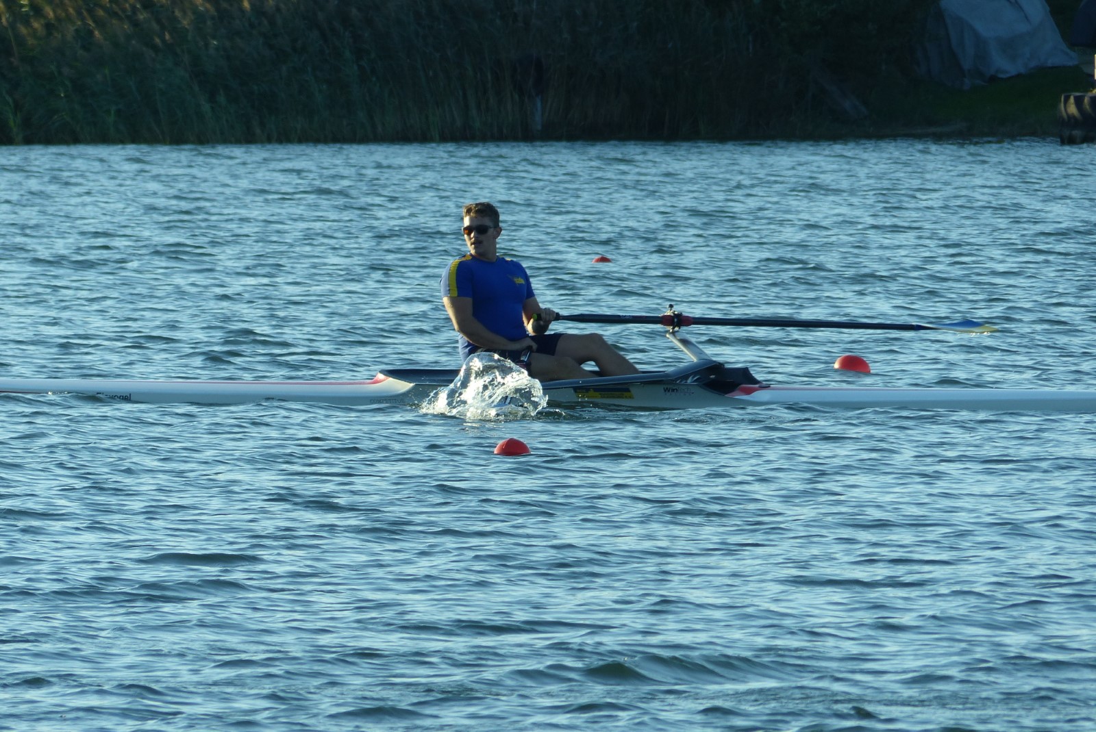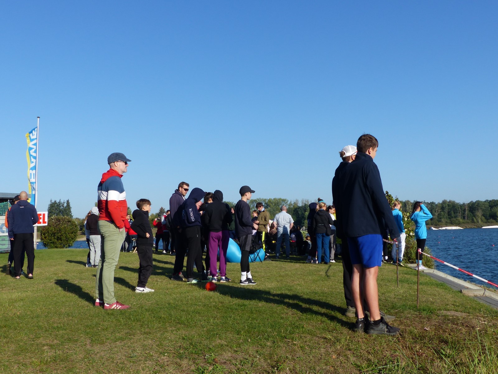Eine Woche vorher, beim Aufbau der 6-Bahnen-Strecke, sorgte noch heftiger Seitenwind für erschwerte Bedingungen. Am Regatta-Samstag schob eine leichte Ostbrise die Boote schneller über die Distanz und sorgte vor allem im Zielbereich für einige Wellen. Mit etwas Routine waren diese problemlos zu meistern. Nur wenige Rudernde mussten von der Wasserwacht aus dem noch wohltemperierten Kiesgrubenwasser gezogen werden.