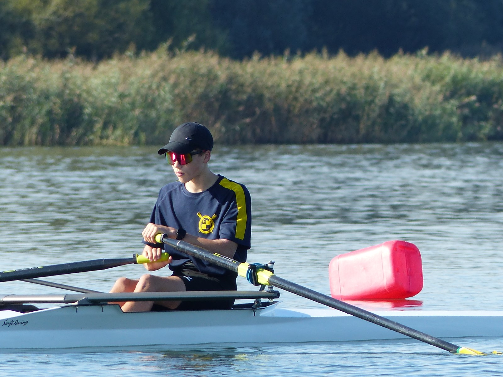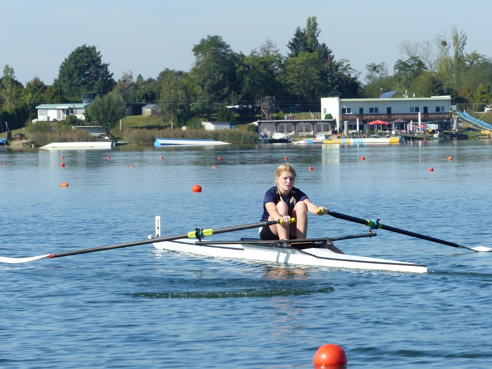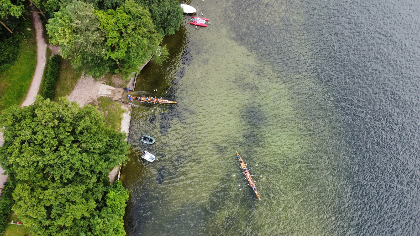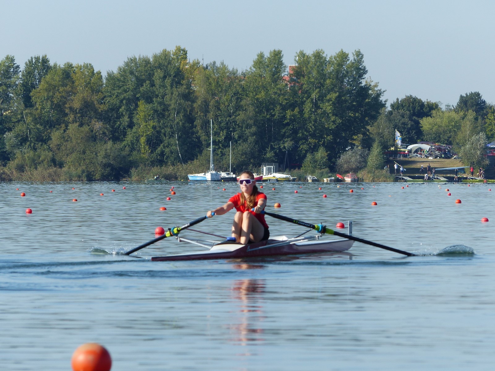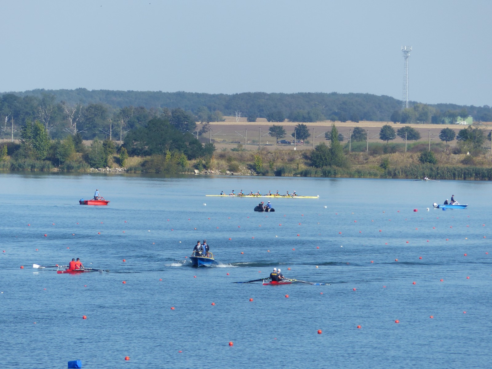 Eine Woche vorher, beim Aufbau der 6-Bahnen-Strecke, sorgte noch heftiger Seitenwind für erschwerte Bedingungen. Am Regatta-Samstag schob eine leichte Ostbrise die Boote schneller über die Distanz und sorgte vor allem im Zielbereich für einige Wellen. Mit etwas Routine waren diese problemlos zu meistern. Nur wenige Rudernde mussten von der Wasserwacht aus dem noch wohltemperierten Kiesgrubenwasser gezogen werden.