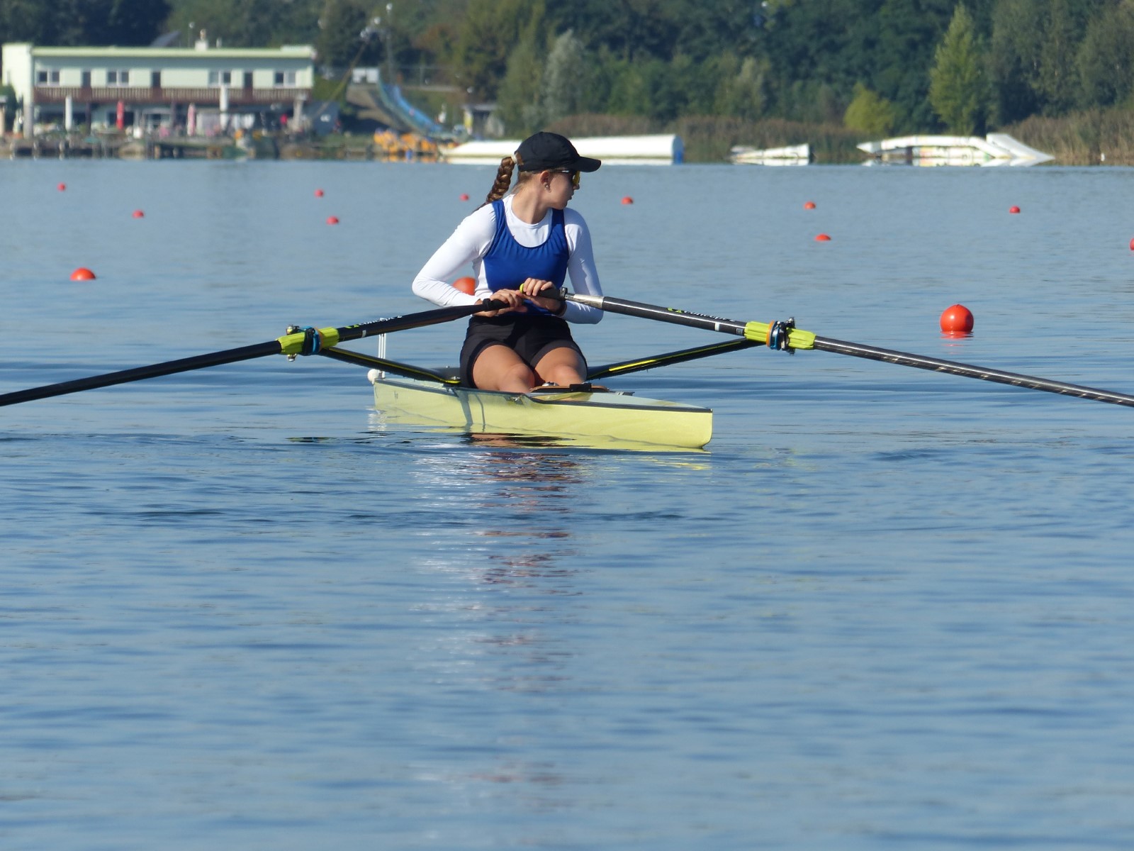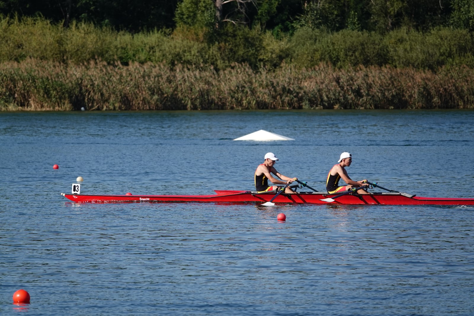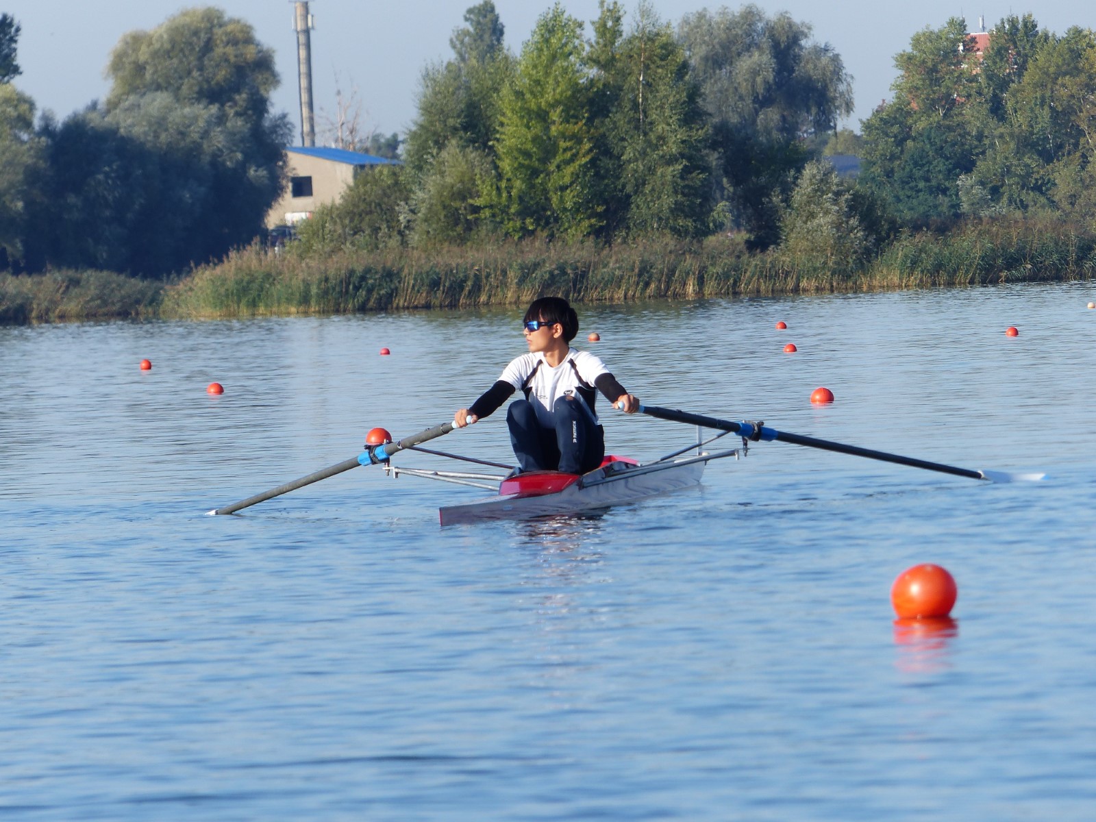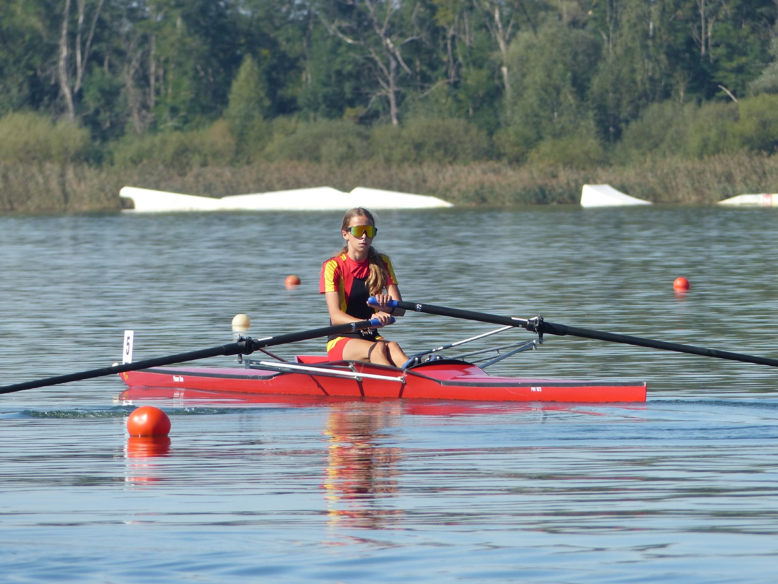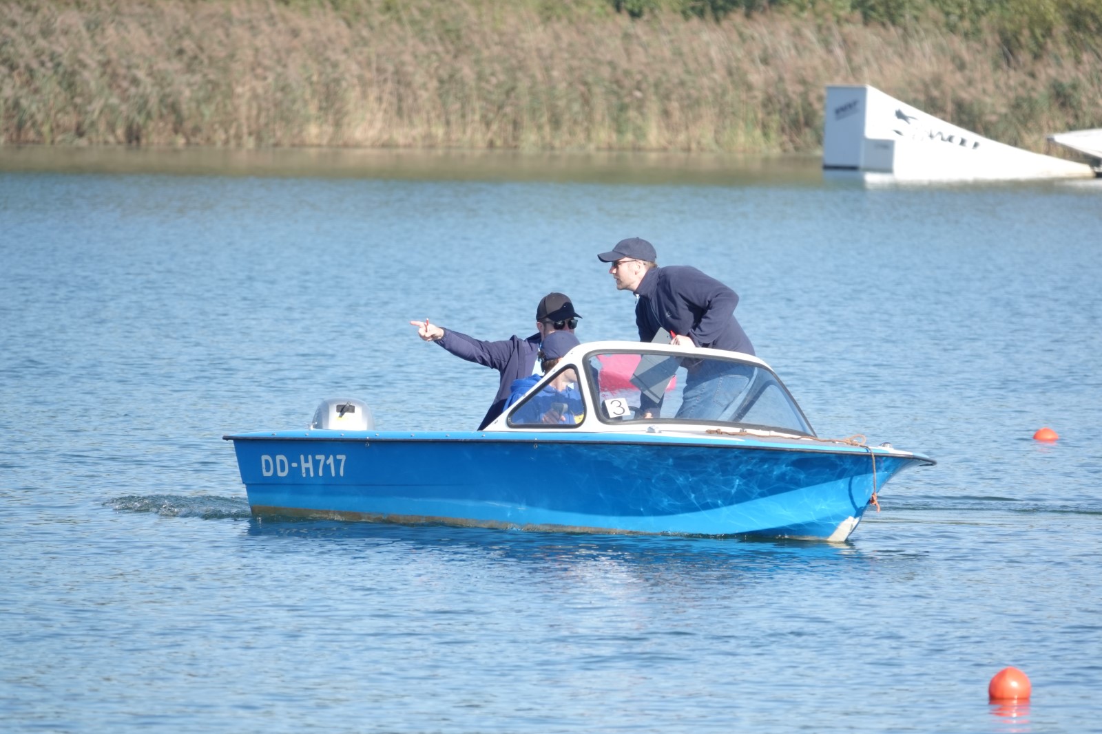 Eine Woche vorher, beim Aufbau der 6-Bahnen-Strecke, sorgte noch heftiger Seitenwind für erschwerte Bedingungen. Am Regatta-Samstag schob eine leichte Ostbrise die Boote schneller über die Distanz und sorgte vor allem im Zielbereich für einige Wellen. Mit etwas Routine waren diese problemlos zu meistern. Nur wenige Rudernde mussten von der Wasserwacht aus dem noch wohltemperierten Kiesgrubenwasser gezogen werden.