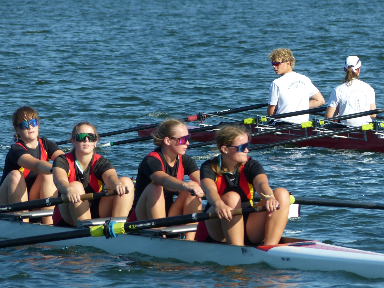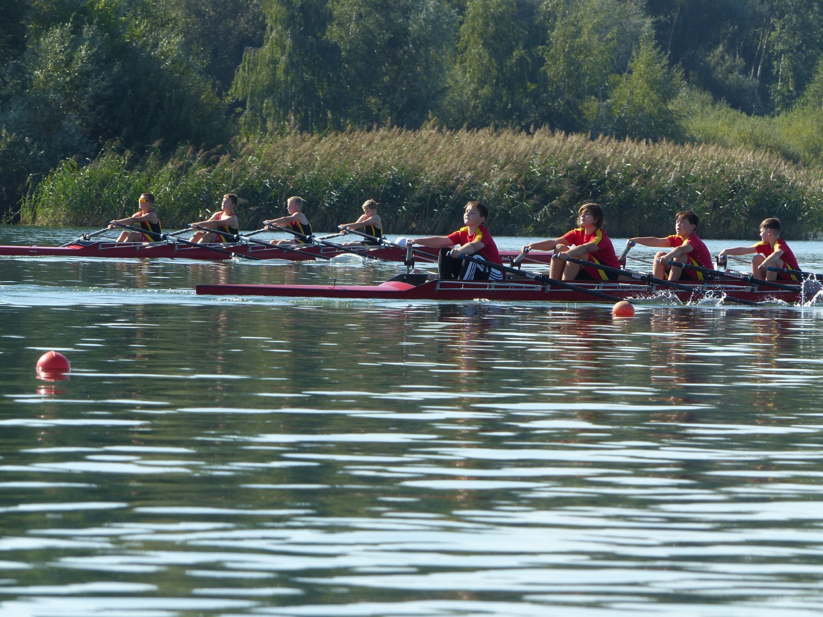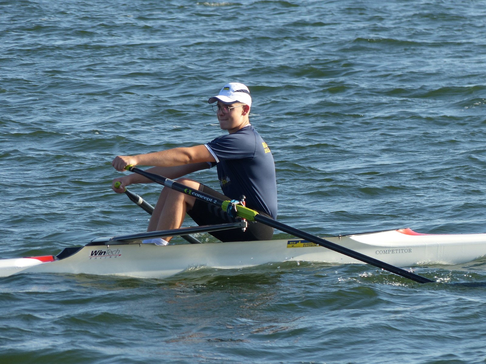 Insgesamt hatte der hiesige Ruderclub zehn Einer, sechs Doppelzweier und den besagten Vierer am Start. Da war viel Gutes dabei: Tilmann Domin (15J.) und Clemens Beier (16J.) qualifizierten für die Finalläufe. Ebenso Ewan Spieß im Einer und im Doppelzweier mit Friedrich Weist (beide 14J.), jedoch ohne weiteres Edelmetall für den RCE.