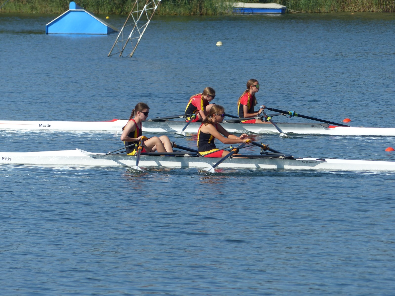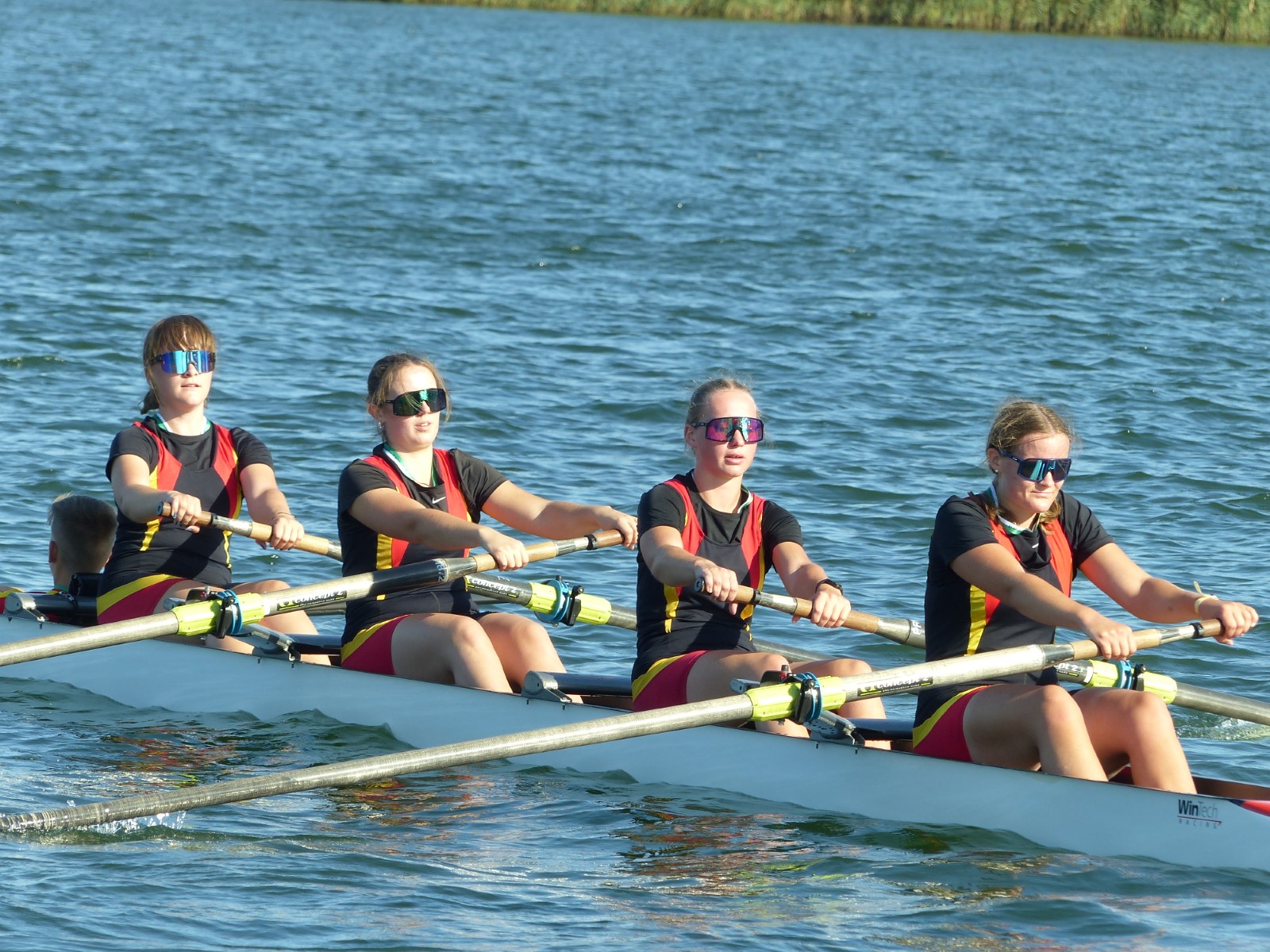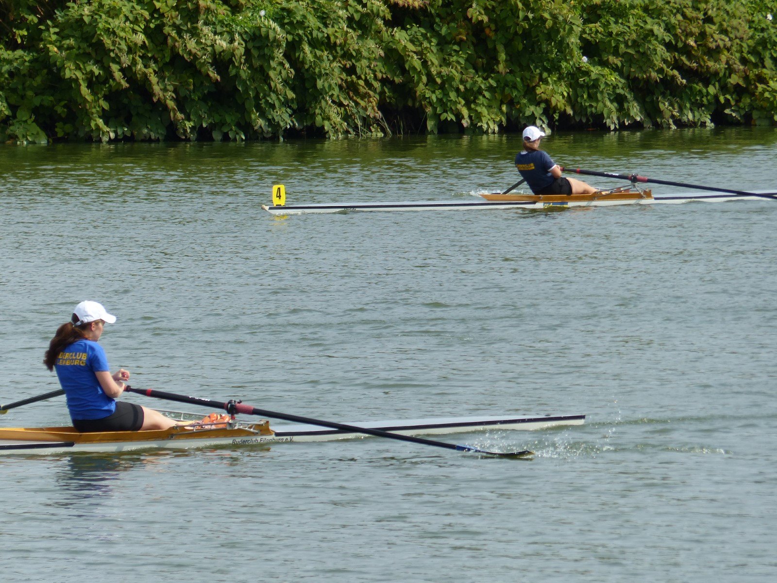 Insgesamt hatte der hiesige Ruderclub zehn Einer, sechs Doppelzweier und den besagten Vierer am Start. Da war viel Gutes dabei: Tilmann Domin (15J.) und Clemens Beier (16J.) qualifizierten für die Finalläufe. Ebenso Ewan Spieß im Einer und im Doppelzweier mit Friedrich Weist (beide 14J.), jedoch ohne weiteres Edelmetall für den RCE.