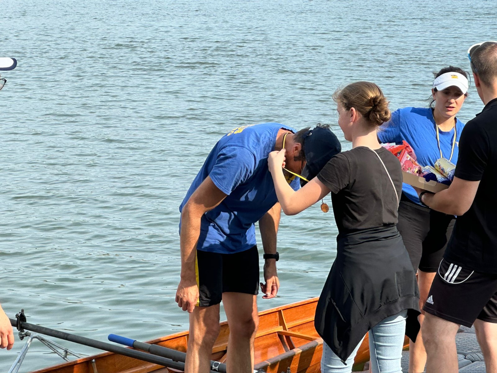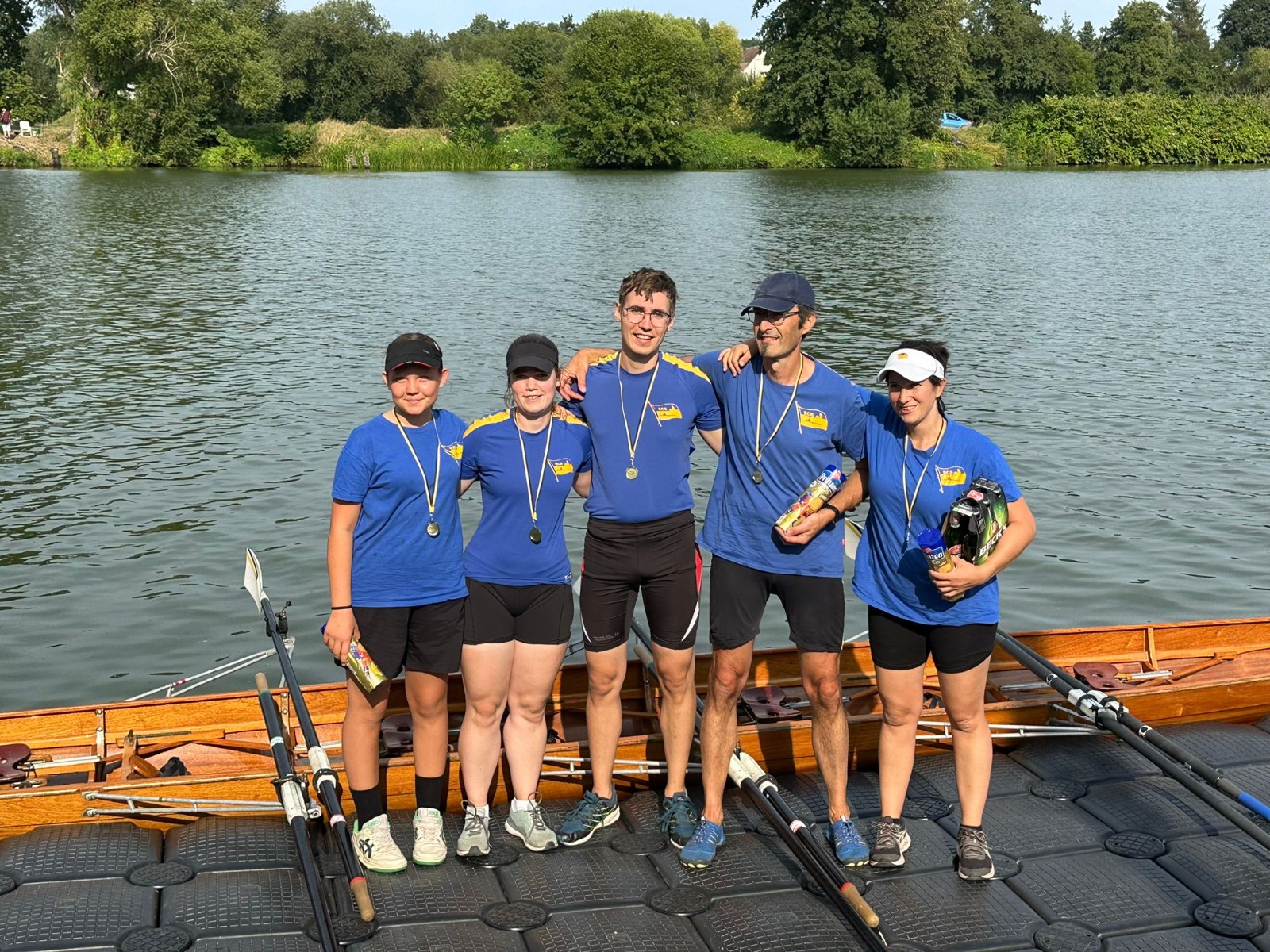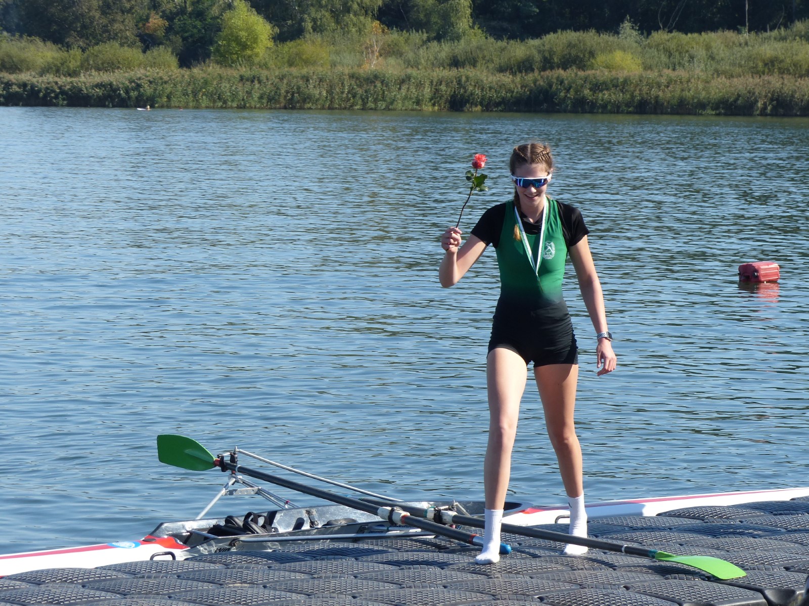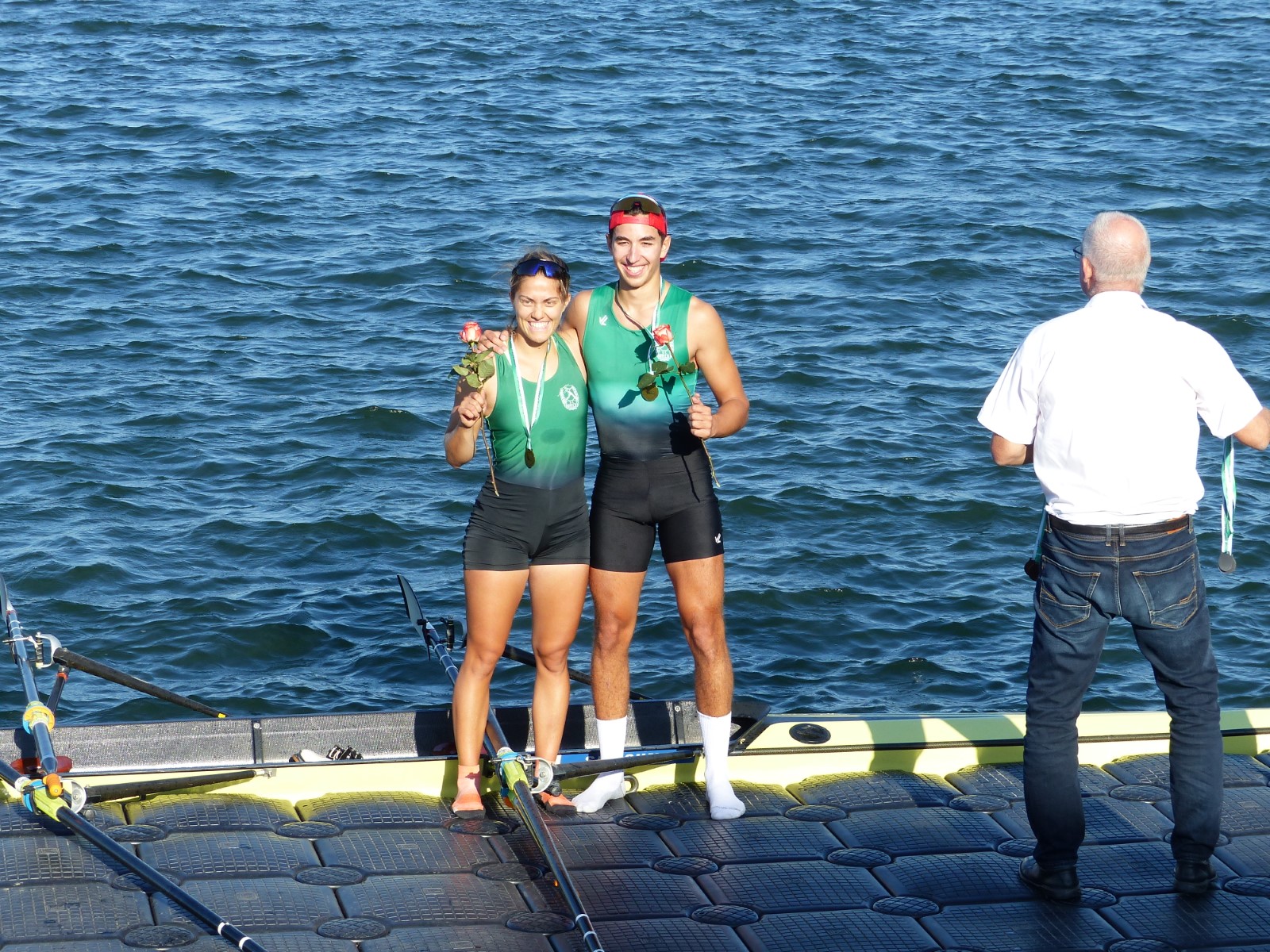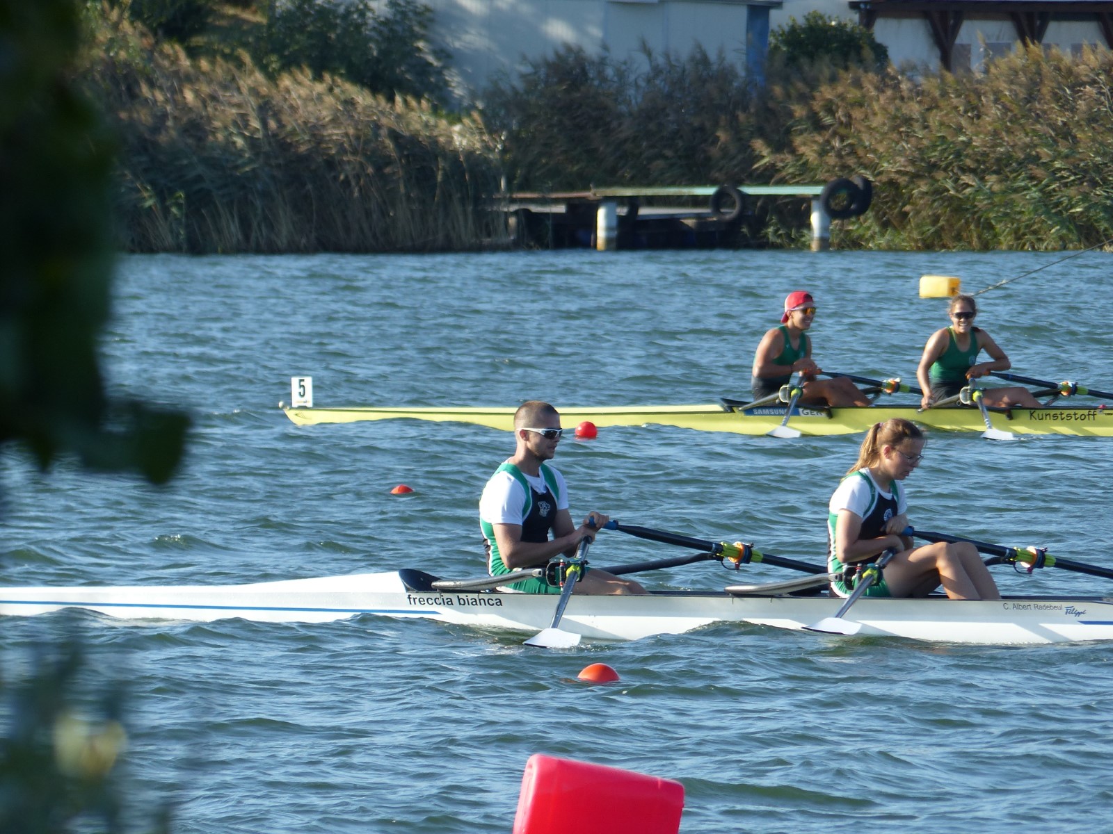 Ebenfalls auf der 1000-Meter-Strecke war der Junioren-Doppelvierer mit Clemens Beier Joris Pospischil, Timo Petraschke, Tilmann Domin und Steuermann Ole Völker (15/16J.) unterwegs. Nur etwas mehr als vier Sekunden fehlten zum Sieg. Am Ende wartete ein Satz Bronzemedaillen am Siegersteg... und wurde dort nicht abgeholt. Entäuschung oder Verwirrung? - Es war nicht in Erfahrung zu bringen. Die Ehrung fand dann nachträglich an Land statt.