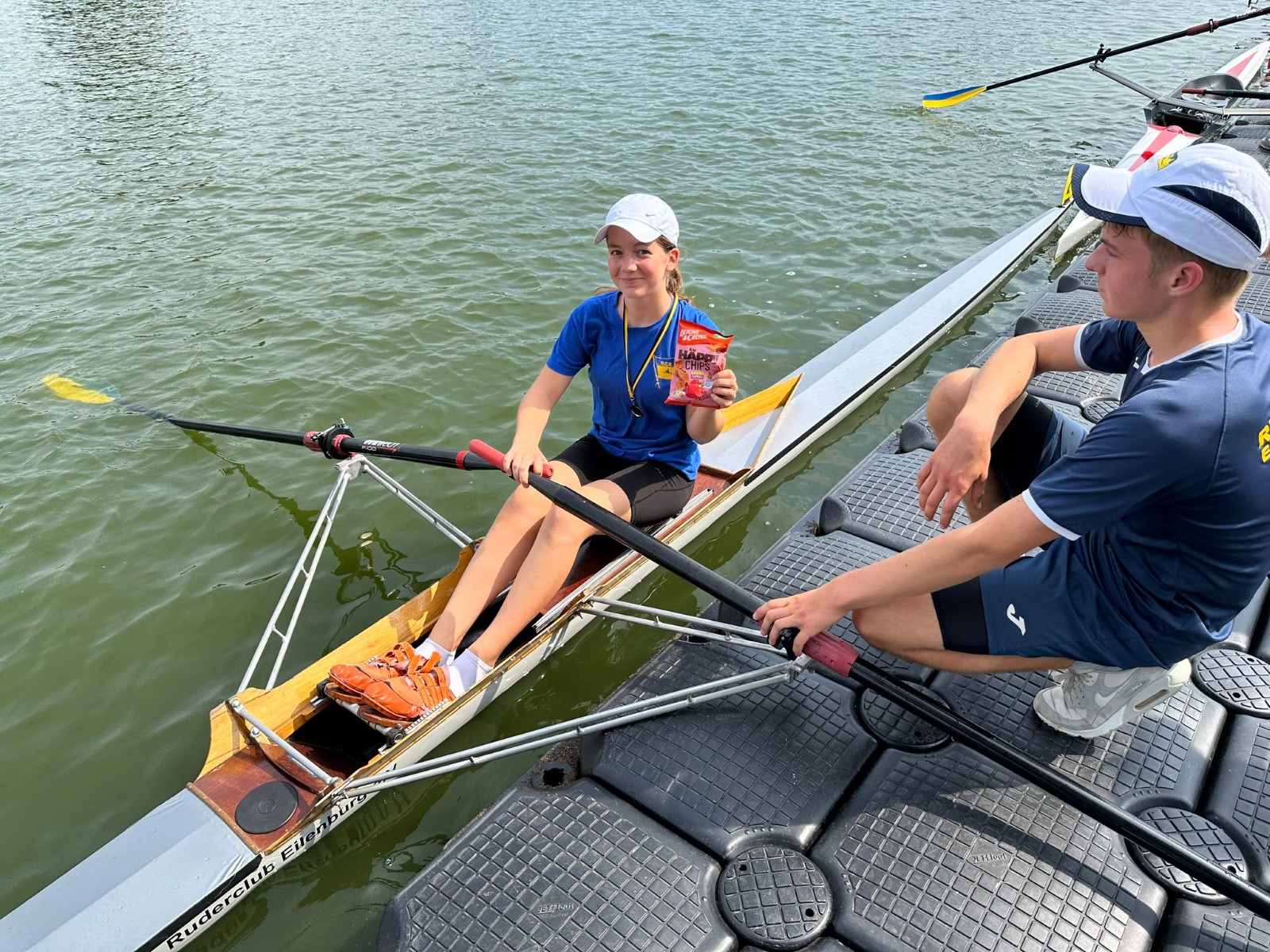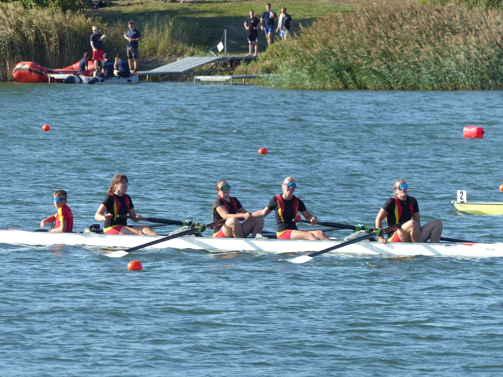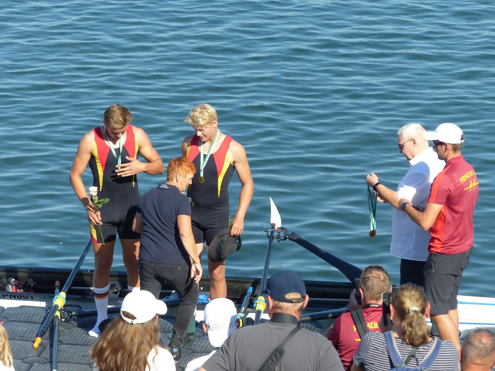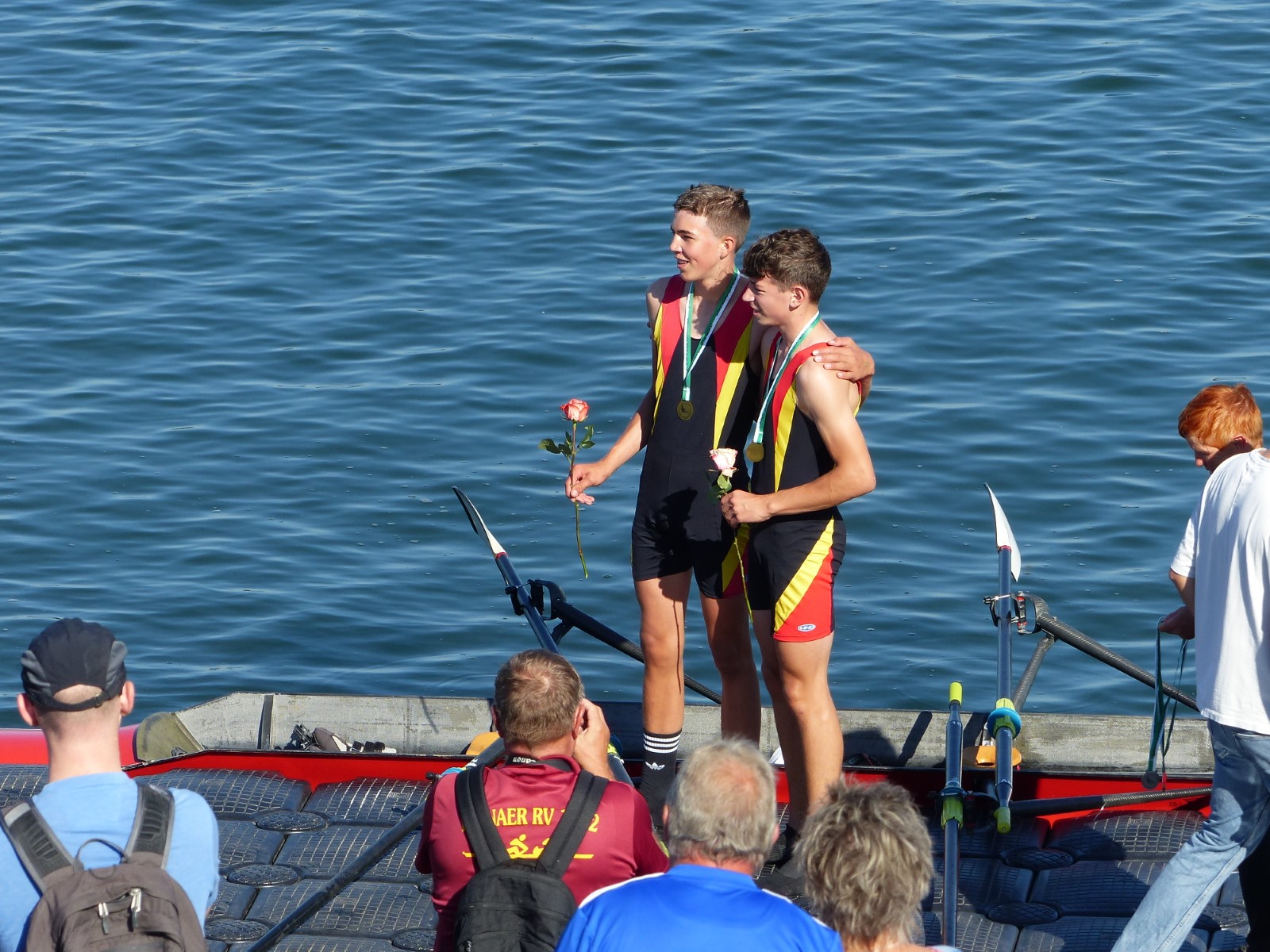 Besonders zu erwähnen sei noch das B-Finale im Junioren-Doppelzweier: Joris Pospischil und Timo Petraschke lagen etwa 100 Meter vor dem Ziel noch deutlich auf Rang drei und setzten zu einem beispiellosen Endspurt an. Dieser kam so unerwartet, dass kein Konkurrent dem Überraschungssieger noch etwas entgegen setzen konnte. Ganz groß! - Das Publikum war hin und weg.