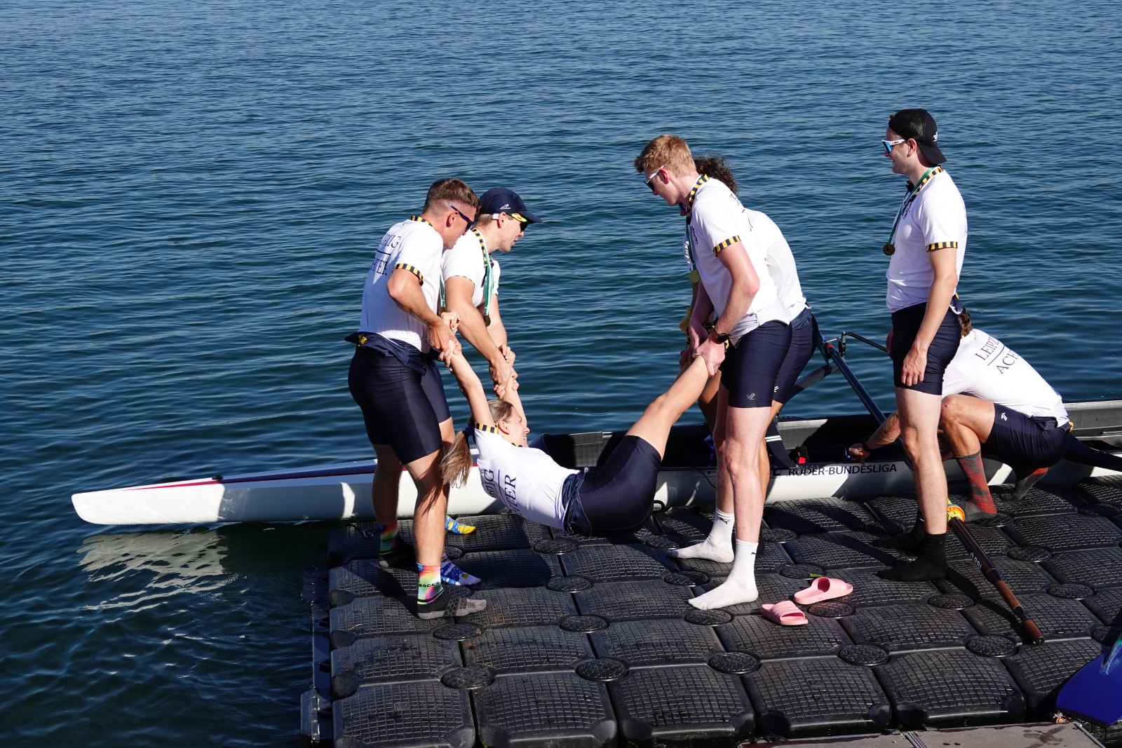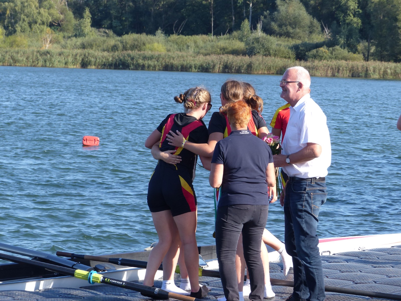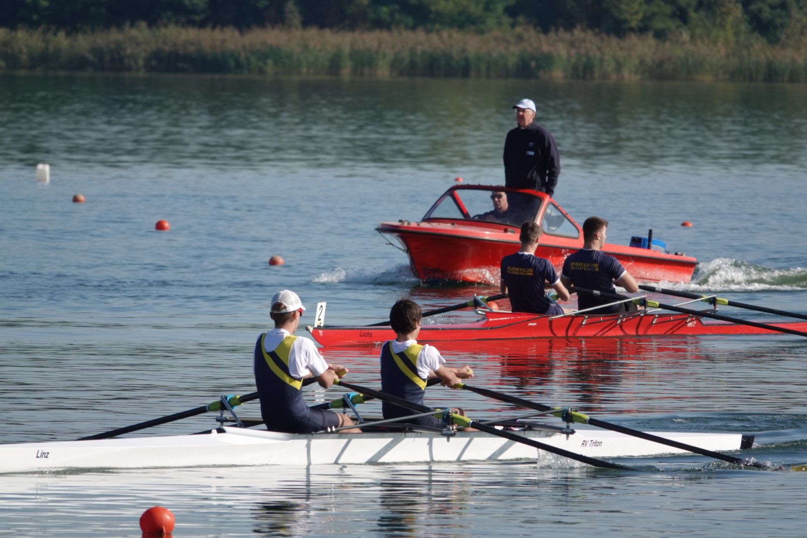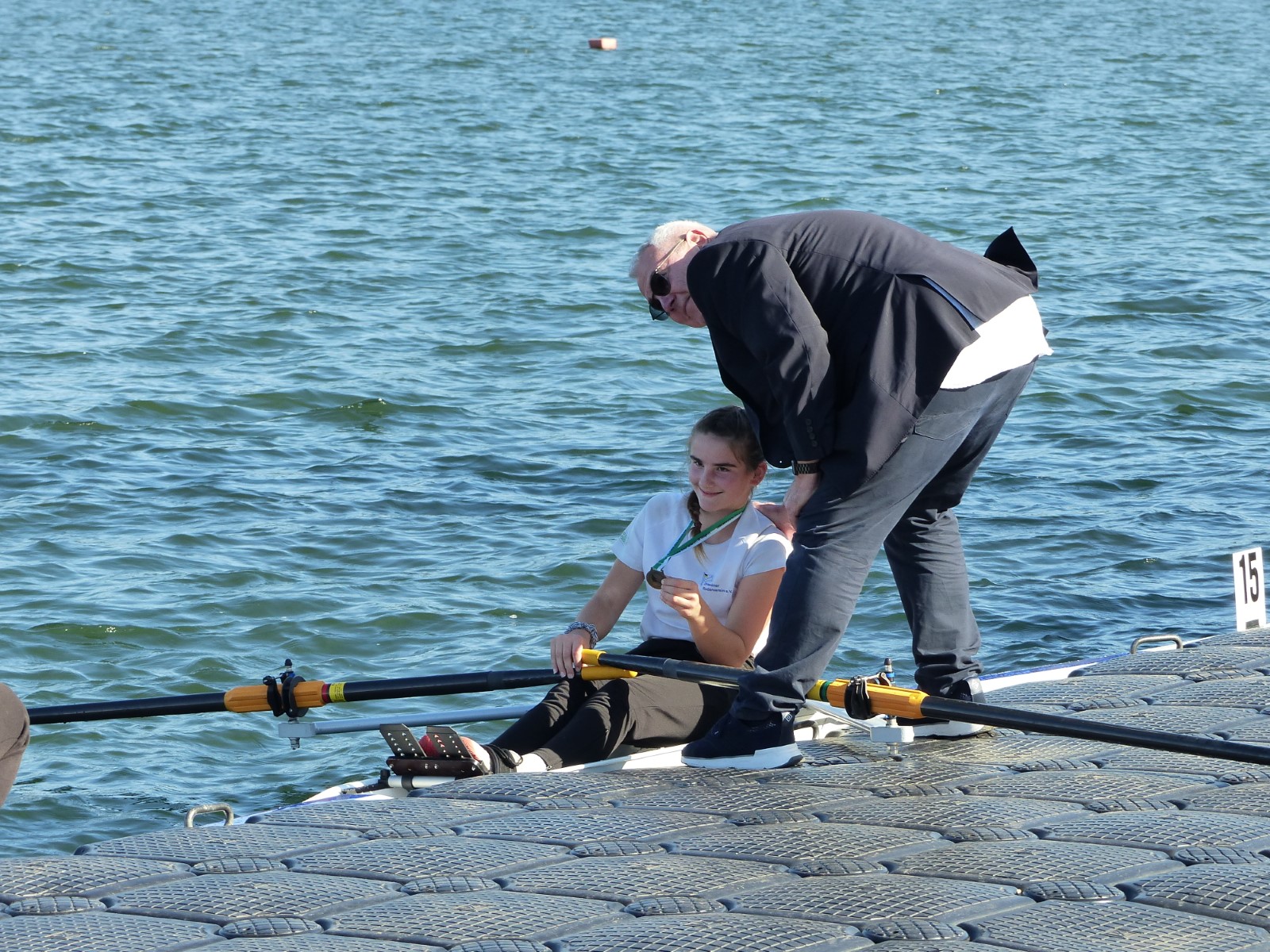 Besonders zu erwähnen sei noch das B-Finale im Junioren-Doppelzweier: Joris Pospischil und Timo Petraschke lagen etwa 100 Meter vor dem Ziel noch deutlich auf Rang drei und setzten zu einem beispiellosen Endspurt an. Dieser kam so unerwartet, dass kein Konkurrent dem Überraschungssieger noch etwas entgegen setzen konnte. Ganz groß! - Das Publikum war hin und weg.