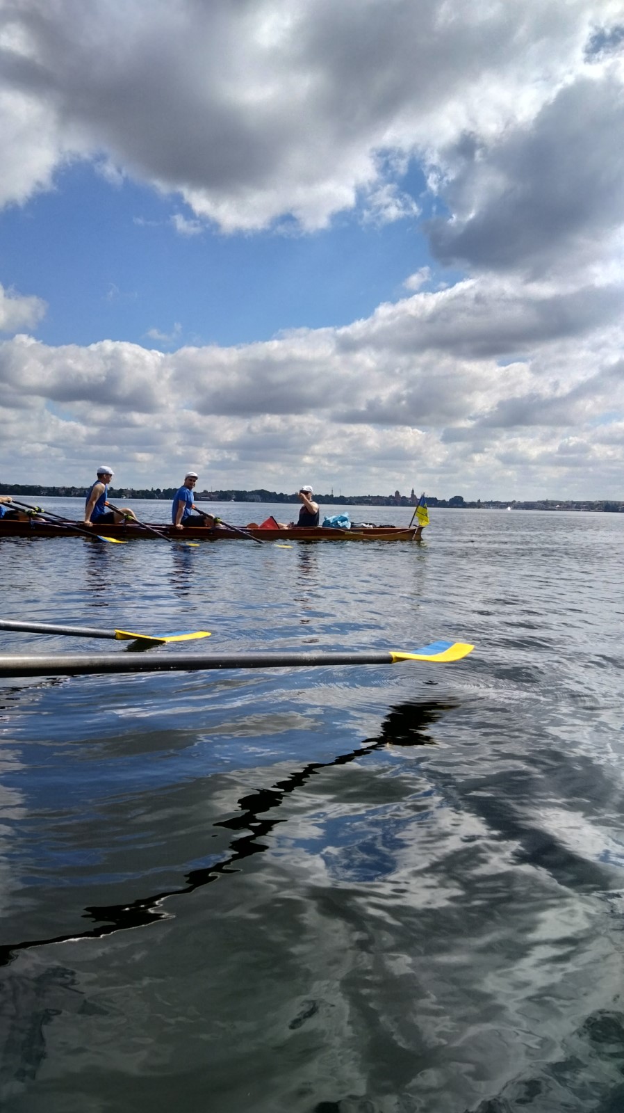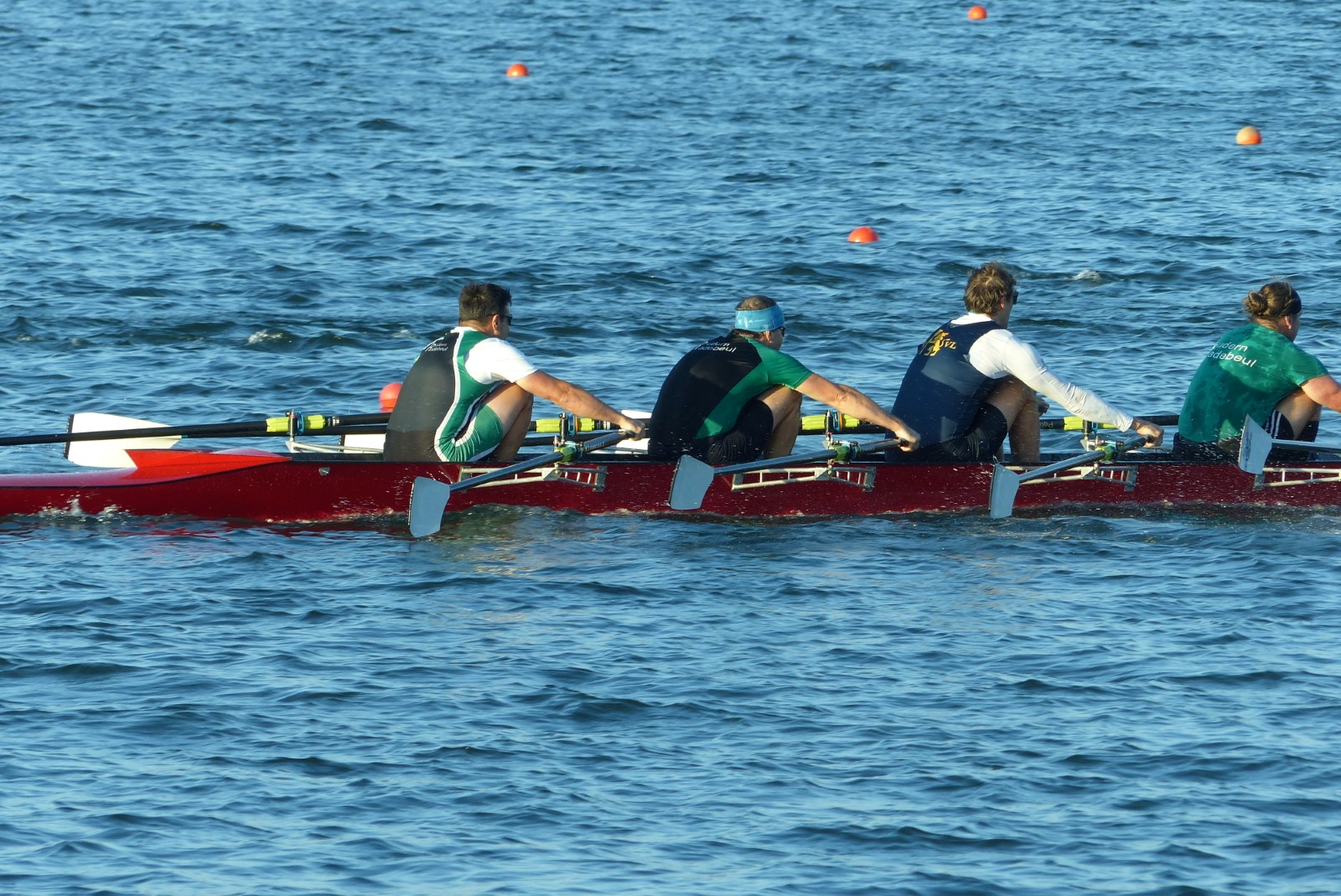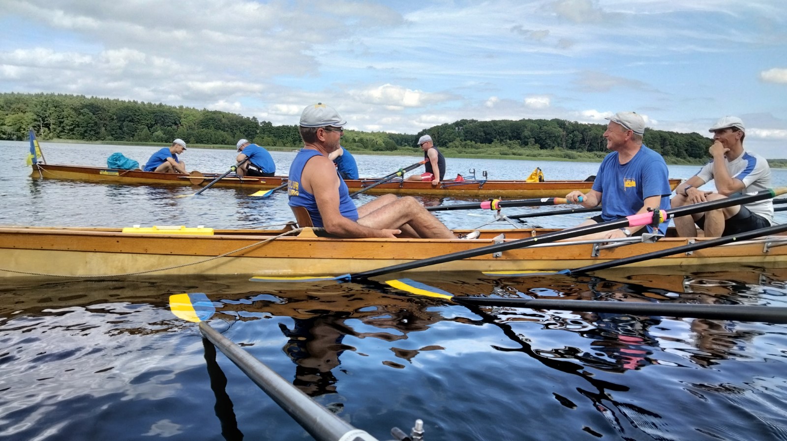Im Gig-Doppelvierer, freundlicherweise von den Wurzener Kameraden zur Verfügung gestellt, siegte die Eilenburger Trainer-Besatzung mit Josi Winter (1989), Anne Fromm (1999), Robert Fromm (1996), Rayk Bremme-Jung (1971) und Steuerfrau Hannah König (2011) überraschend deutlich vor den Lokalmatadoren aus der Ringelnatz-und Keks-Stadt.