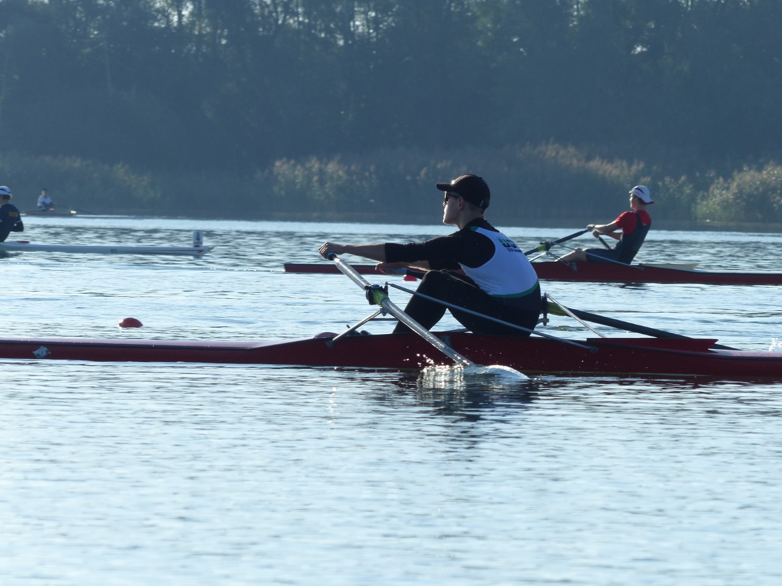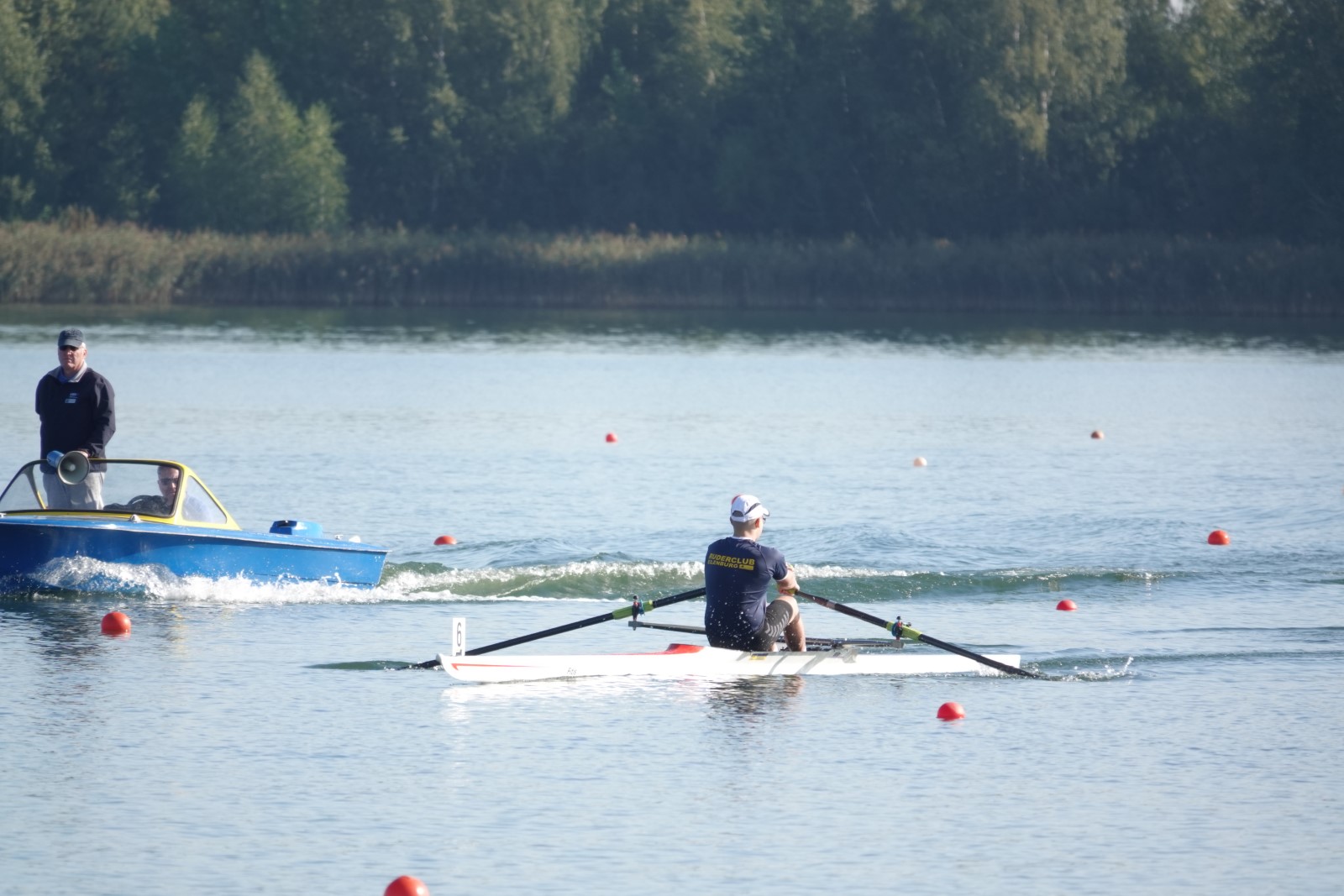 Im Rennen1, dem Masters-Einer, sahnte Rayk Bremme-Jung (53J.) die erste Silber-Medaille des Wettkampfs ab. Nach der Aufgabe des favorisierten Radebeulers auf halber Strecke machte die zusätzlich anzurechnende Zeitdifferenz auf einen jüngeren Skuller aus Pirna den Titel des Vize-Landesmeisters perfekt. Die Goldene holte ein "Akademischer“ nach Leipzig.