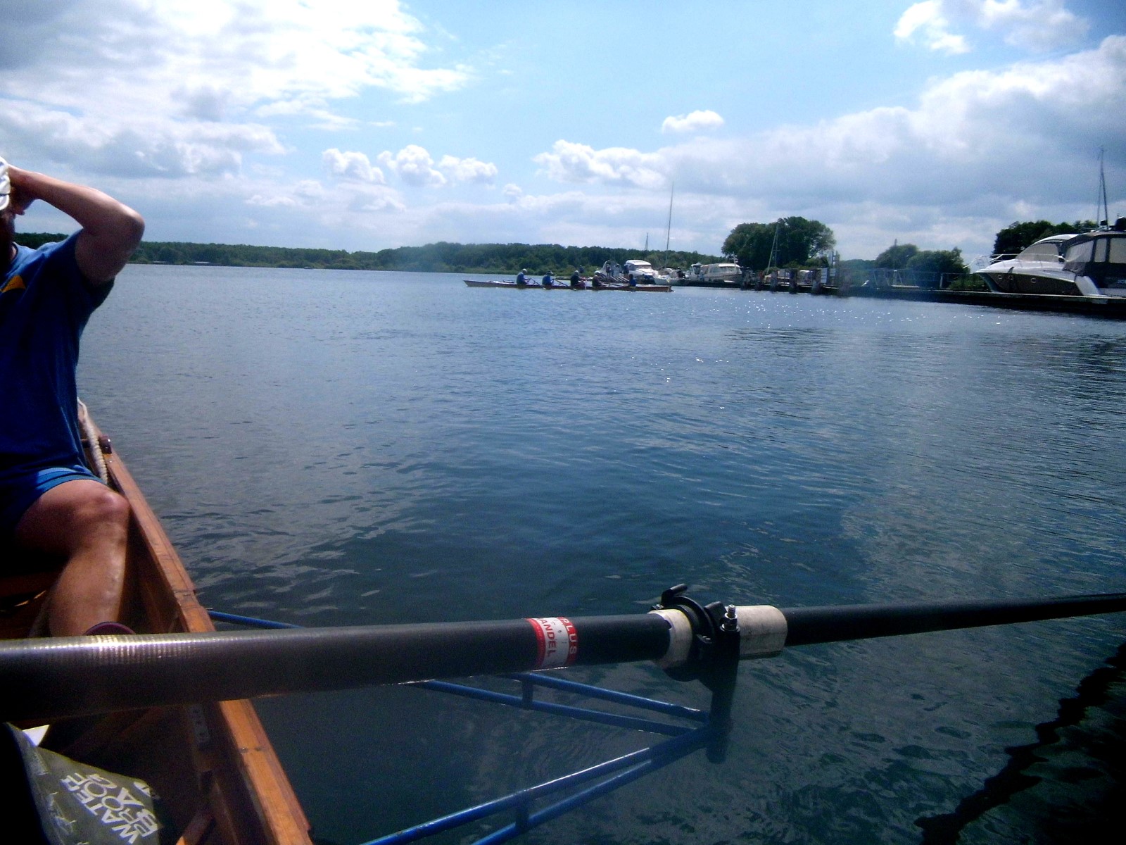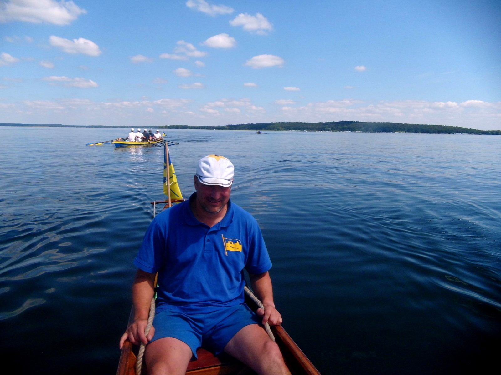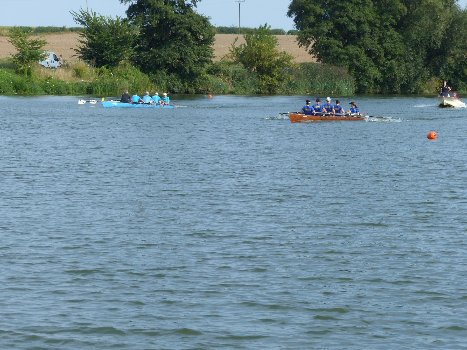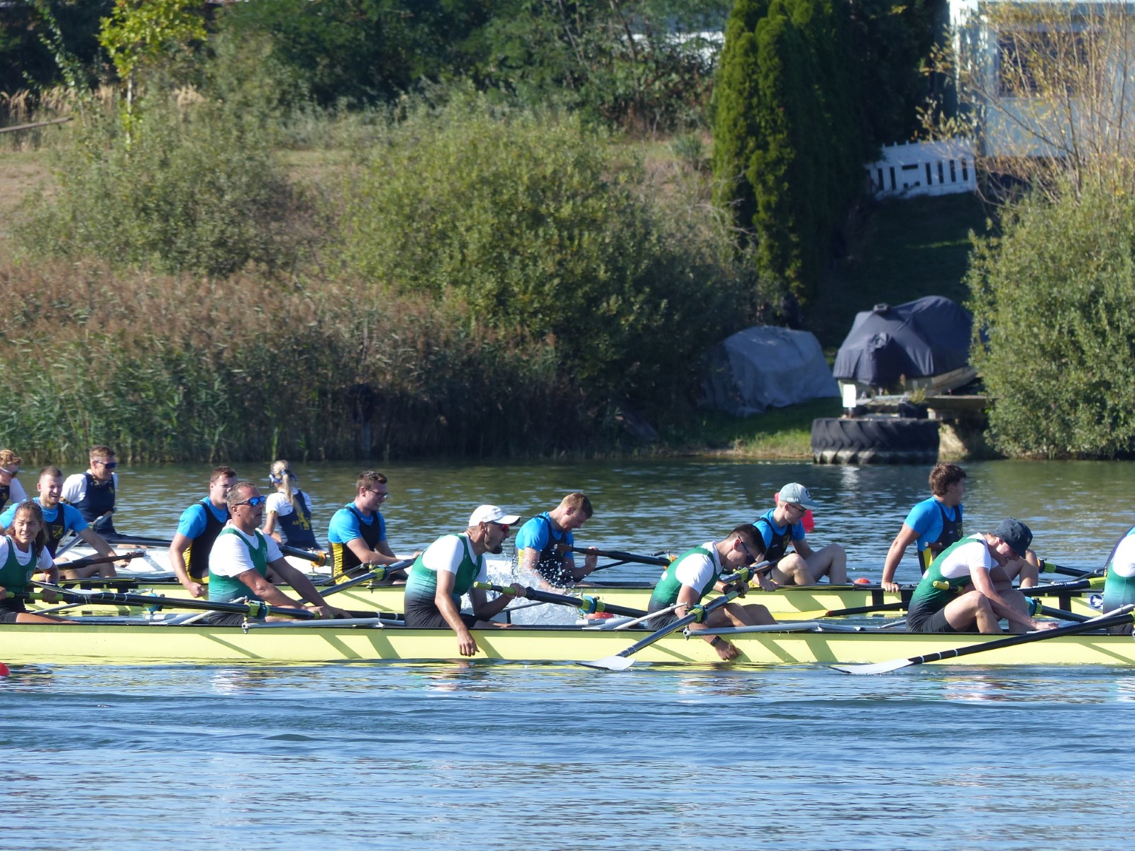 Auf dem Programm stand nun der Gig-Vierervergleich. Acht Teilnehmer wurden auf zwei Mannschaften ausgelost, zum Steuern verpflichtete man Florian Bellrich. Punkt 13 Uhr ging ging Team1 hochmotiviert an den Start. Das Signal "Sofort Start... Los!“ wurde professionell mit Funk an die Ziellinie am Steg übertragen. Beide Mannschaften gaben nacheinander ihr Bestes. Das Ergebnis wurde aber noch nicht verraten.