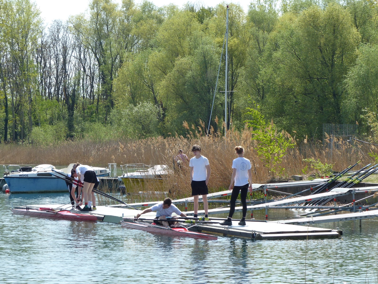 Endlich mal wieder ein pünktliches Anrudern. Nachdem man in den letzten beiden Jahren pandemiebedingt quasi erst kurz vor Sommer starten konnte, durfte es nun ganz traditionell der letzte Märzsamstag sein. Unter heiterem Himmel hatte sich etliches Rudervolk vor der offenen Bootshalle versammelt. Ganz vollständig war man jedoch nicht. Nach Ansprache und Belehrung musste der Vorsitzende Felix unsere neuen Mitglieder in Eigenregie begrüßen. Die Auszeichnung der Ergometermeister übernahm die Veranstaltungswärtin Anne. Stellvertretreterin und Sportwart waren nicht die einzigen, die sich für heute entschuldigen mussten. Allen ganz liebe Genesungswünsche an dieser Stelle. Nichtsdestotrotz gingen wie üblich die "Riemen" zur Hand und Boote zu Wasser. Nebenbei fanden Kaffee und Kuchen begeisterten Zuspruch. Auf der Mühlgrabenwiese ging es mit 4G zünftig weiter: Getränke, Gespräche, Gebrutzeltes und Gesang. Es dauerte bis weit in den Abend hinein, dass sich alle wohlbehalten wieder einfanden. Der gemütliche Ausklang im Saal rundete diesen schönen Tag ab. Vielen Dank denen, die dazu beigetragen haben. Nun kann die Wassersaison kommen. RBJ