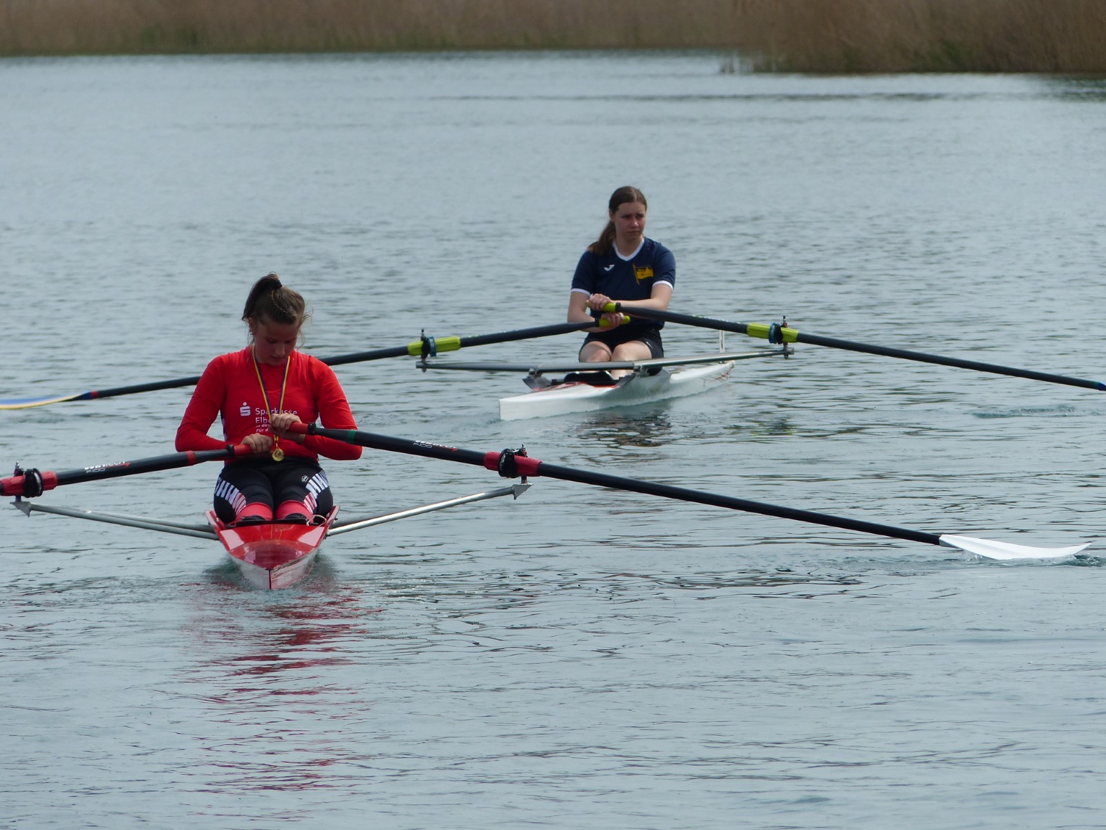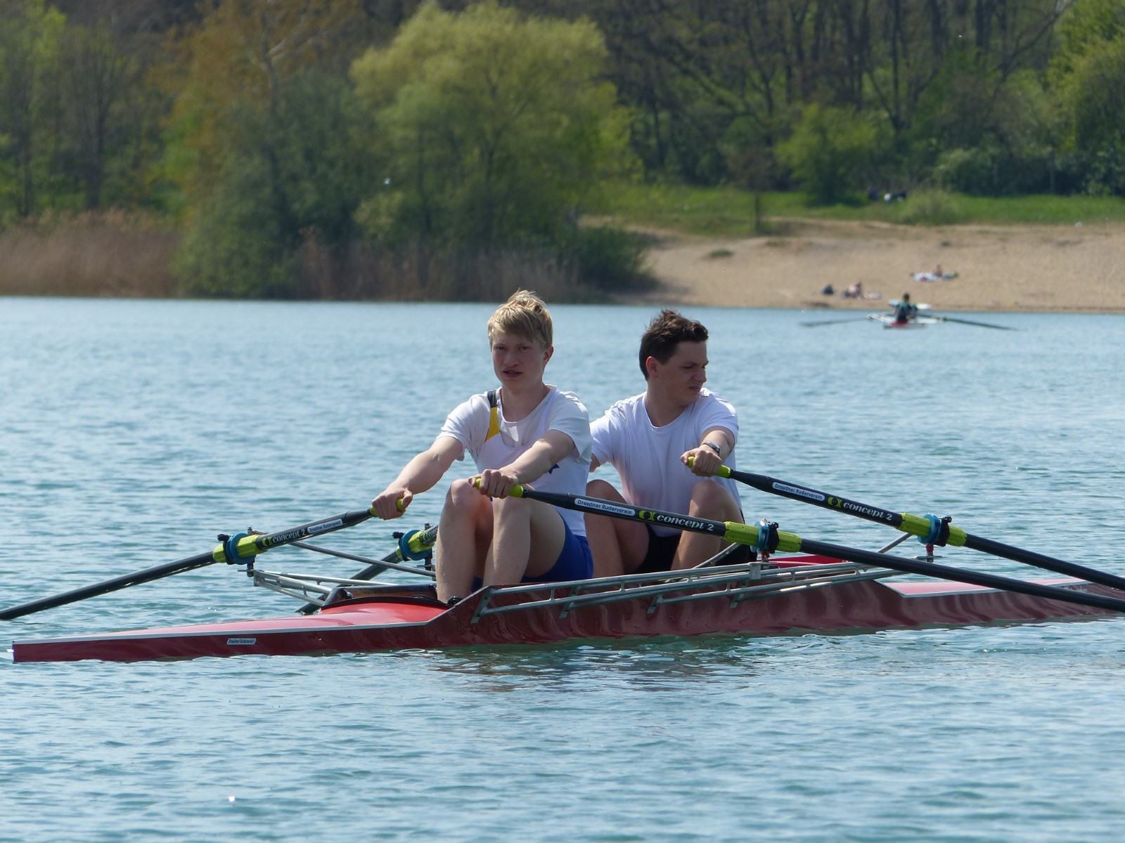 Den gleichen Erfolg hatte Colin Zemke (14 Jahre), der sich in einem Feld von 6 Ruderern behauptete. Auch der Doppelzweier der Jungen (12 u.13 Jahre) war in dieser Disziplin angetreten. Tilmann Domin und Ben Neubert platzierten sich erfolgreich zwischen zwei Booten von der starken Pirnaer Konkurrenz auf dem zweiten Rang.