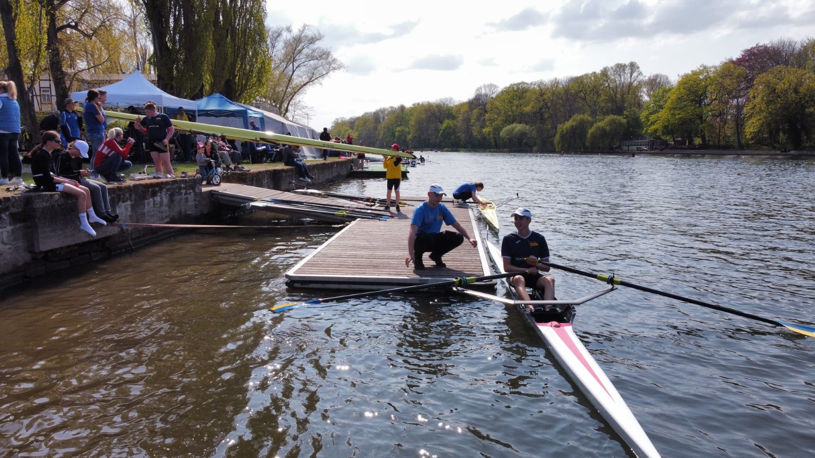 Nach 2 Jahren coronabedingter Pause war die Vorfreude groß. Endlich wieder eine Frühjahrsregatta in Eilenburg. Dennoch kamen nicht so viele Ruderinnen und Ruderer am 7. und 8. Mai an den Start wie erwartet. Einige waren noch nicht fit genug und haben von vornherein auf eine Anreise verzichtet. Auch diverse kurzfristige Abmeldungen gab es zu verzeichnen. Das Weltgeschehen bescherte allerdings auch eine Teilnehmerin aus dem U23-Nationalkader der Ukraine, die souverän für einen Dresdner Club siegte. Die Bedingungen auf der Strecke hätten besser nicht sein können: Heiter bis wolkig und ein mildes Lüftchen.